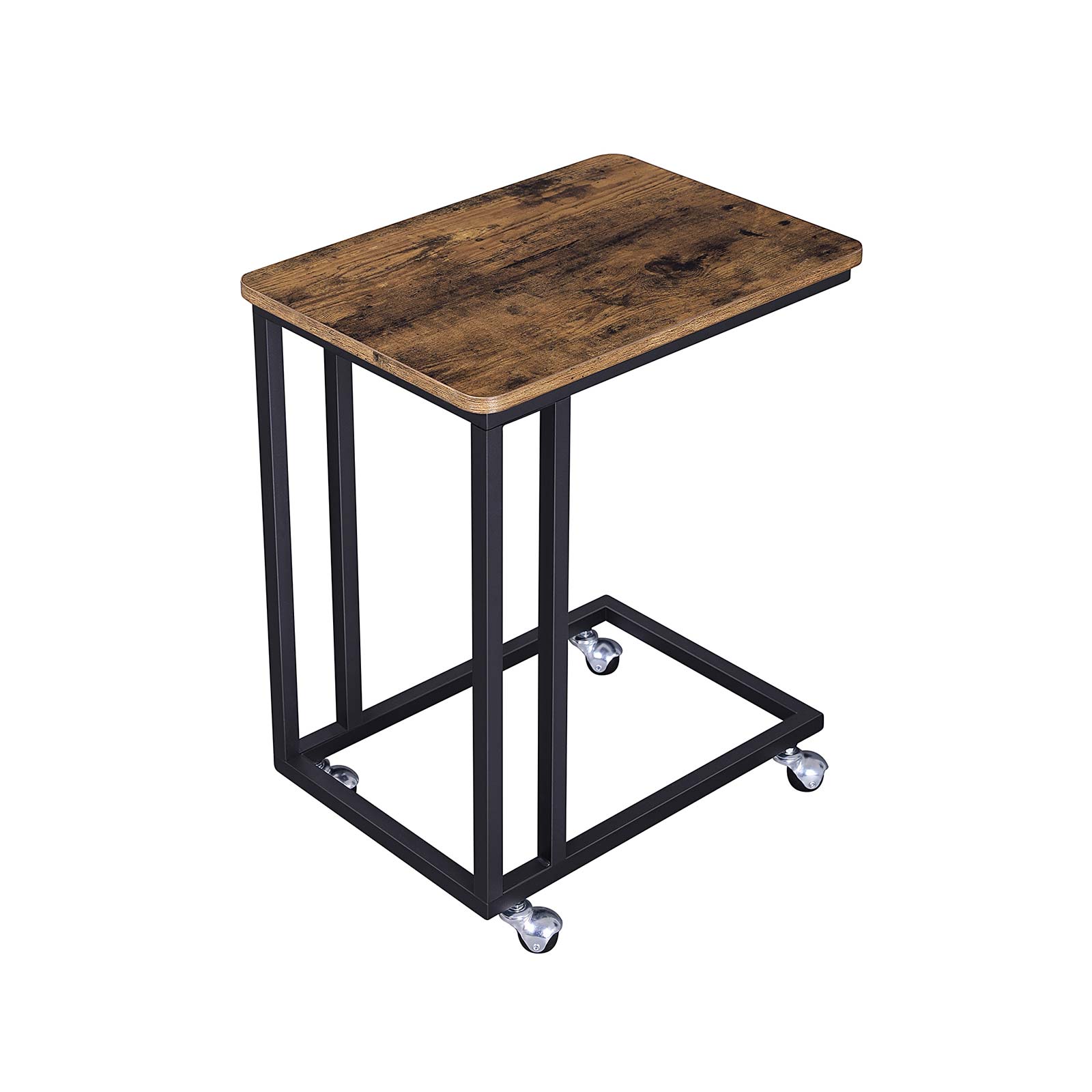 VASAGLE – se on mielikuvituksellinen yhdistelmä toiminnallisuutta, kestävyyttä ja tyylikkäitä vintage-malleja. Jos haluat antaa huoneillesi yksilöllisen ilmeen ja antiikkisen sävyn, tällä huonekalusarjalla voit saavuttaa vaikuttavia tuloksia. Vintage-sivupöytä teräksisillä yksityiskohdilla Tämä rullilla varustettu sohvapöytä on todellinen lisäarvo paitsi romanttisen vintage-tyylin ystäville. Myös trendikkään teollisen muotoilun ystävät voivat kaunistaa kotiaan tällä huonekalulla, sillä sen runko on mattamustaa terästä. Katso kulissien taakse Huonekalun kauneus ei kuitenkaan riitä, jos se ei ole käytännöllinen. Siksi pöytälevy on valmistettu lastulevystä, joka kestää jopa 25 kg:n painon. Lisäksi sivupöydässämme on neljä kevyesti liikkuvaa pyörää, joiden avulla voit työntää huonekalun sohvan tai sängyn alle. Näin kahvi, sanomalehti tai kaukosäädin ovat aina käden ulottuvilla. Tai hemmottele rakkaasi kerrankin herkullisella aamiaisella sängyssä. Täydennä sisustustasi VASAGLE:n vintage-huonekaluilla! Tuotetiedot: – Väri: vintage-ruskea-musta – Materiaali: lastulevy, teräsrunko, metallipyörät – Tuotteen mitat: 50 x 55 x 35 cm (L x K x S) – Paino: 5,5 kg – Kantavuus: 25 kg Toimitus sisältää: – 1 x sivupöytä – 1 x ohjeet (DE, EN, FR, ES, IT) – 1 x VASAGLE-lisävarustesarja Huomautukset: – Rungon ja lattian välinen etäisyys on 7 cm. Sohvan alaosan on siis oltava yli 7 cm korkea, jotta sivupöytä mahtuu sen alle. – Suojaa pöytä suoralta auringonvalolta, kosteudelta ja vedeltä. Vältä yleensä kosketusta terävien esineiden kanssa.