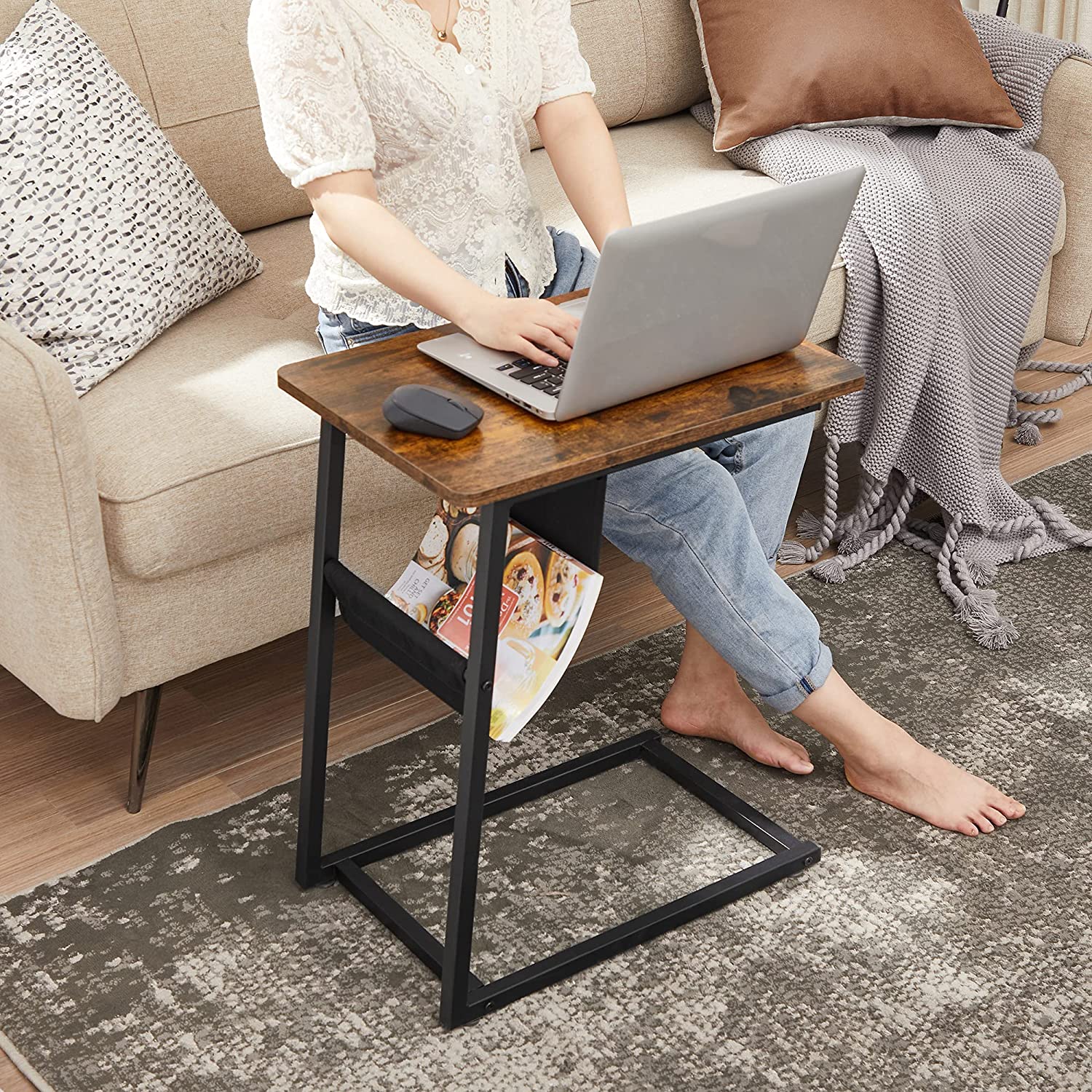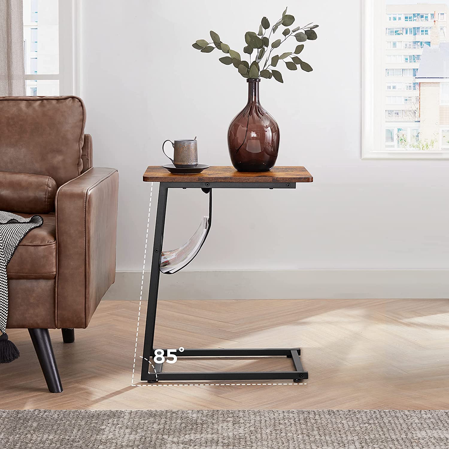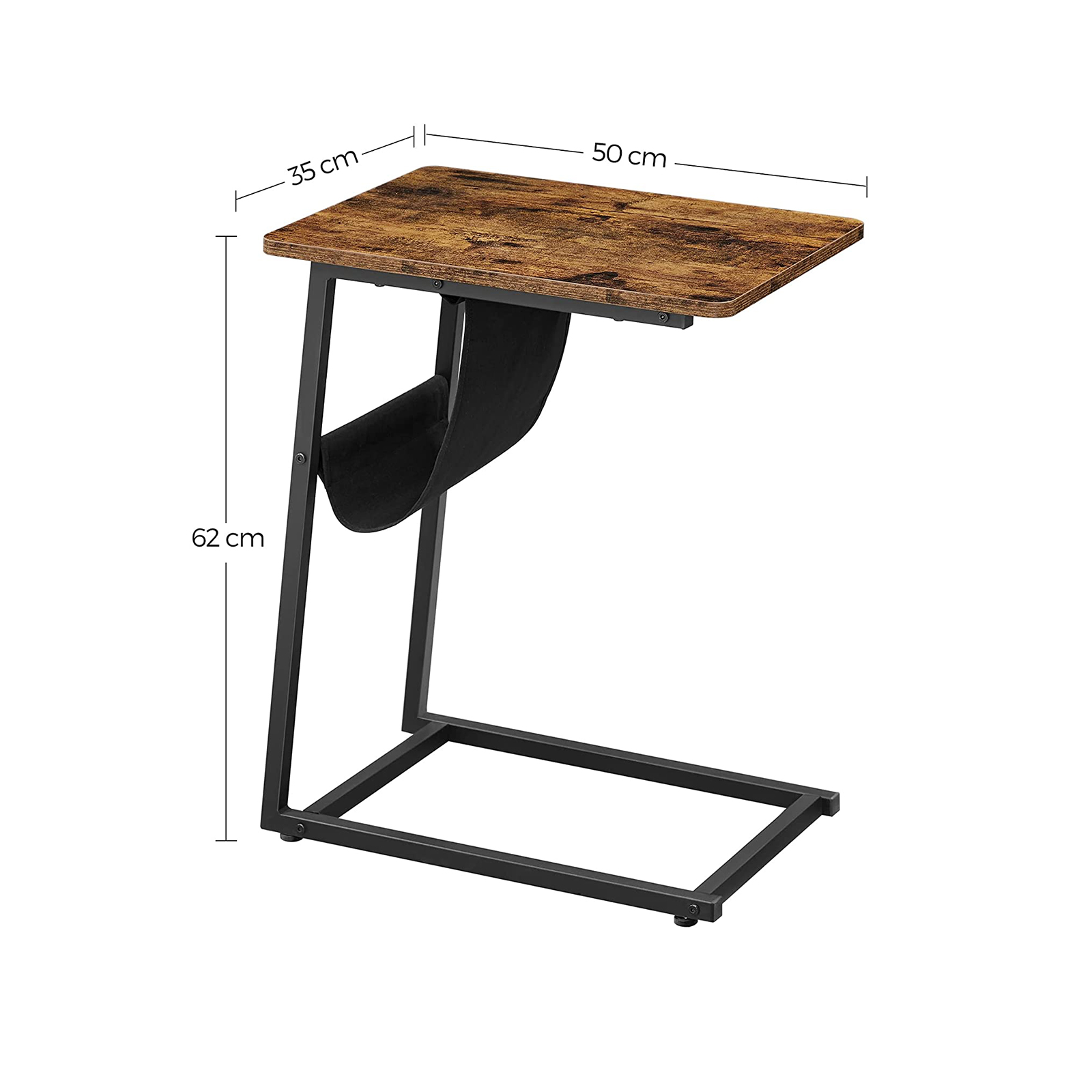 Tuotetiedot: – Väri: vintage-ruskea-musta – Materiaali: lastulevy, teräs – Koko: 50 x 35 x 62 cm (P x L x K) – Paino: 4 kg – Pöytälevyn maks. staattinen kantavuus: 15 kg Toimitus sisältää: – 1 x sivupöytä – 1 x lisävarustepaketti – 1 x ohjeet VASAGLE Huomautukset: – Turvallisuussyistä lapset eivät saa kiivetä tuotteelle tai leikkiä sillä.