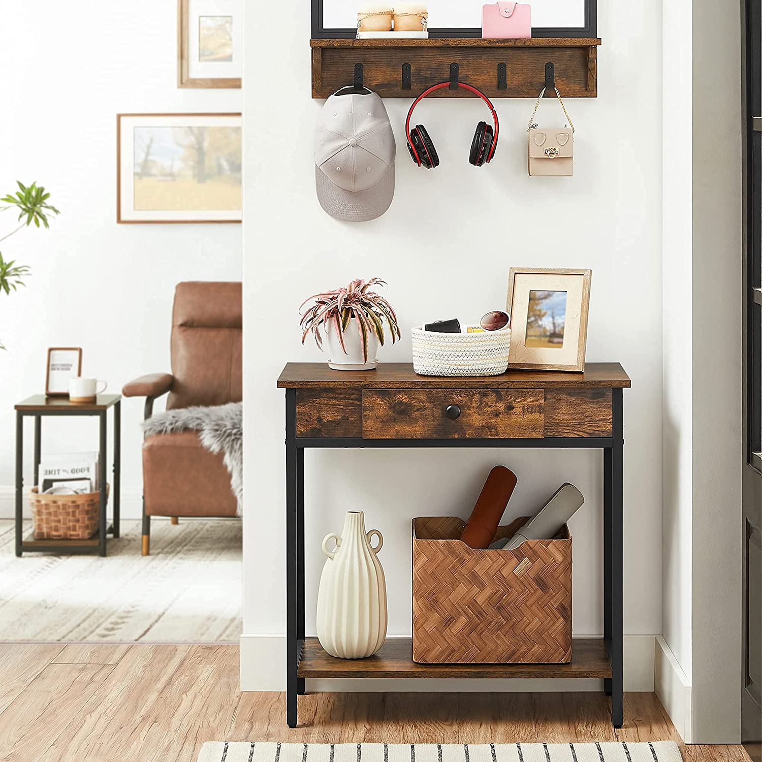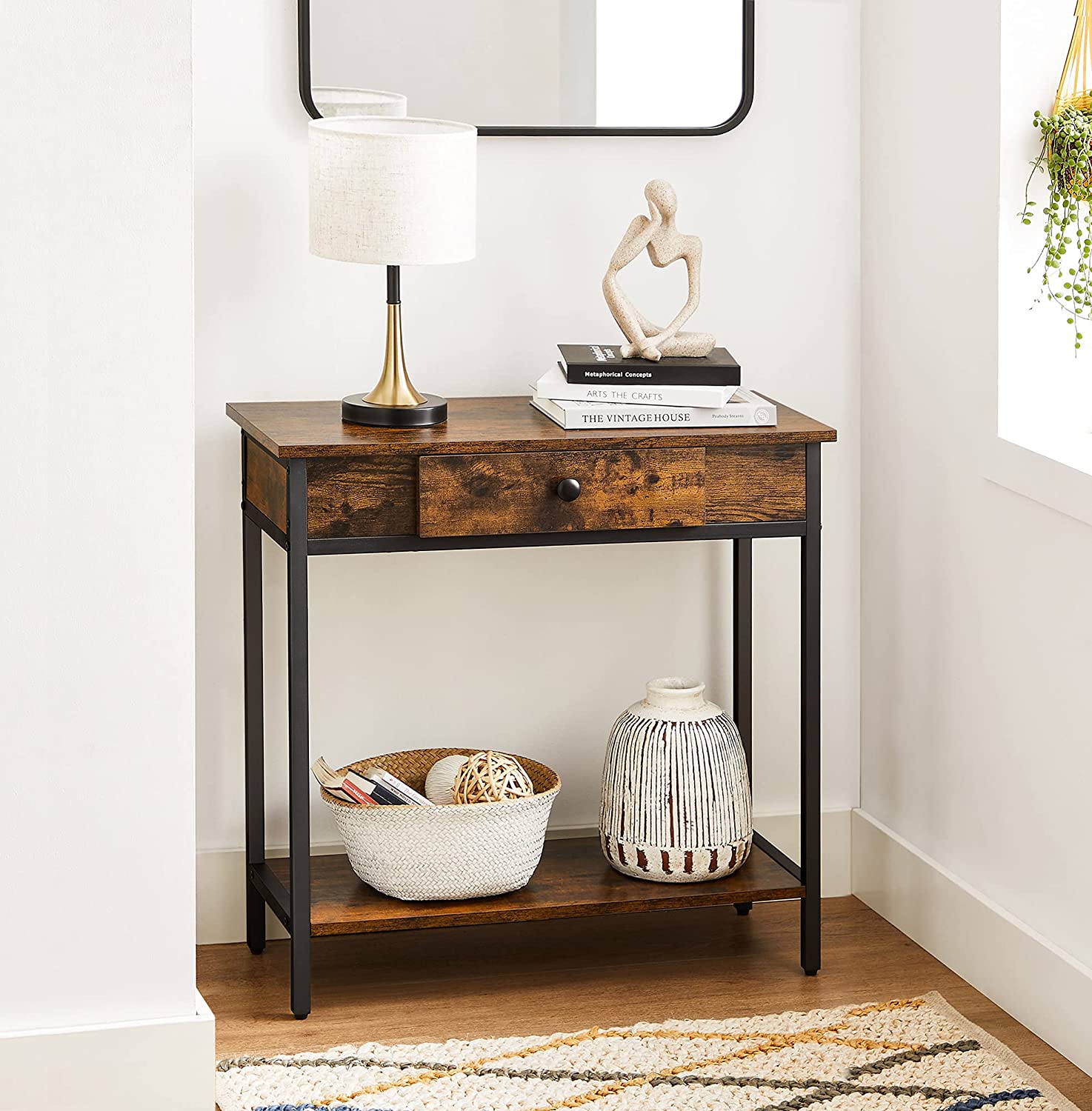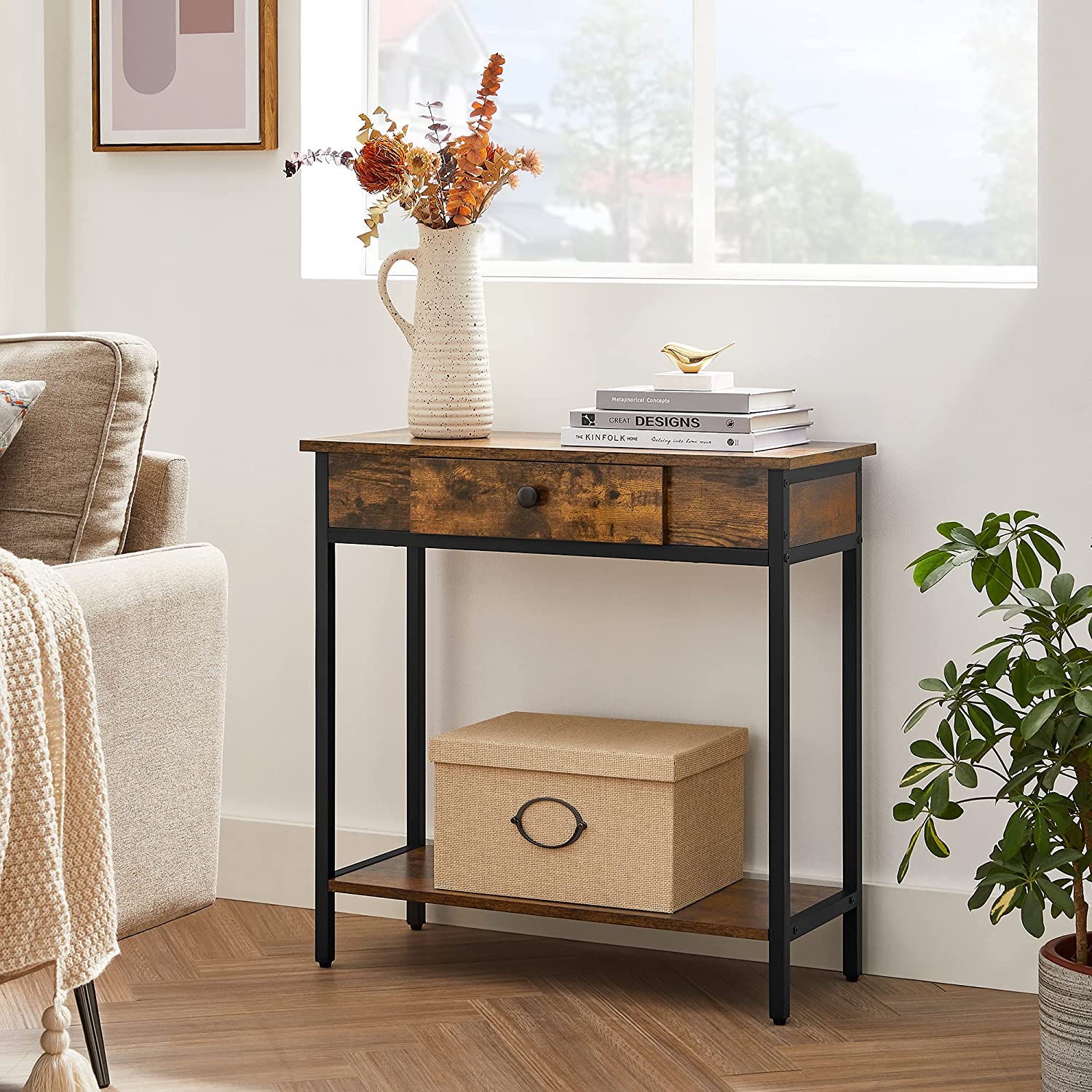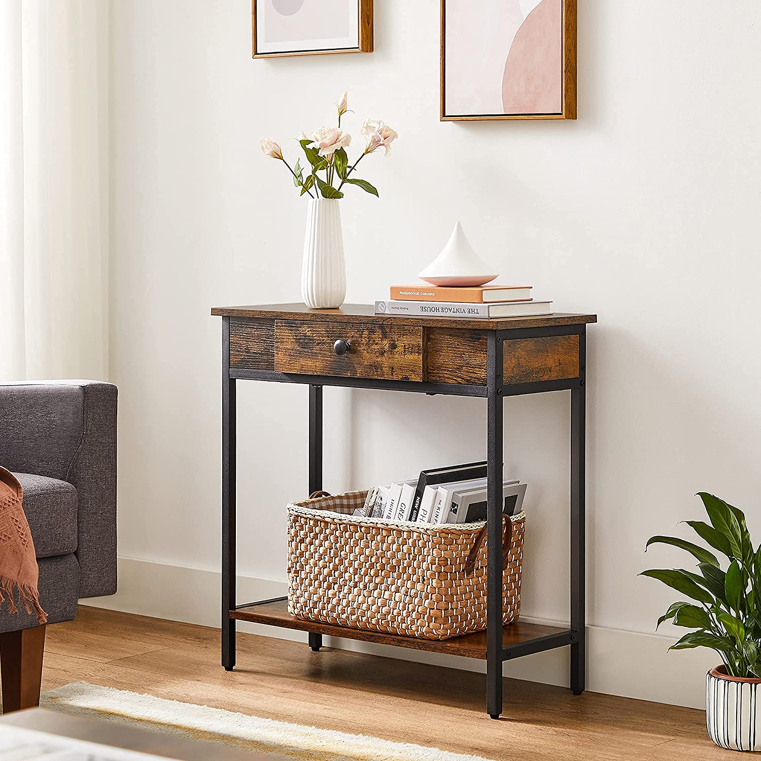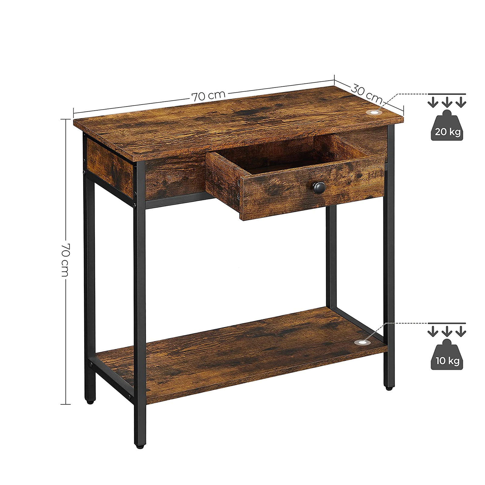 Tuotetiedot: – Väri: vintage-ruskea-musta – Materiaali: lastulevy, teräs – Koko: 70 x 30 x 70 cm (P x L x K) – Paino: 8,5 kg – Pinnan suurin staattinen kantavuus: 20 kg – Alahyllyn suurin staattinen kantavuus: 10 kg Toimitus sisältää:- 1 x sivukaappi – 1 x lisävarustepaketti – 1 x kaatumissuoja – 1 x ohjeet VASAGLE Huomautukset: – Turvallisuussyistä lapset eivät saa kiivetä tuotteen päälle tai leikkiä sillä. – Kiinnitä tämä tuote seinään mukana toimitetulla kaatumissuojalla turvallisen käytön varmistamiseksi.