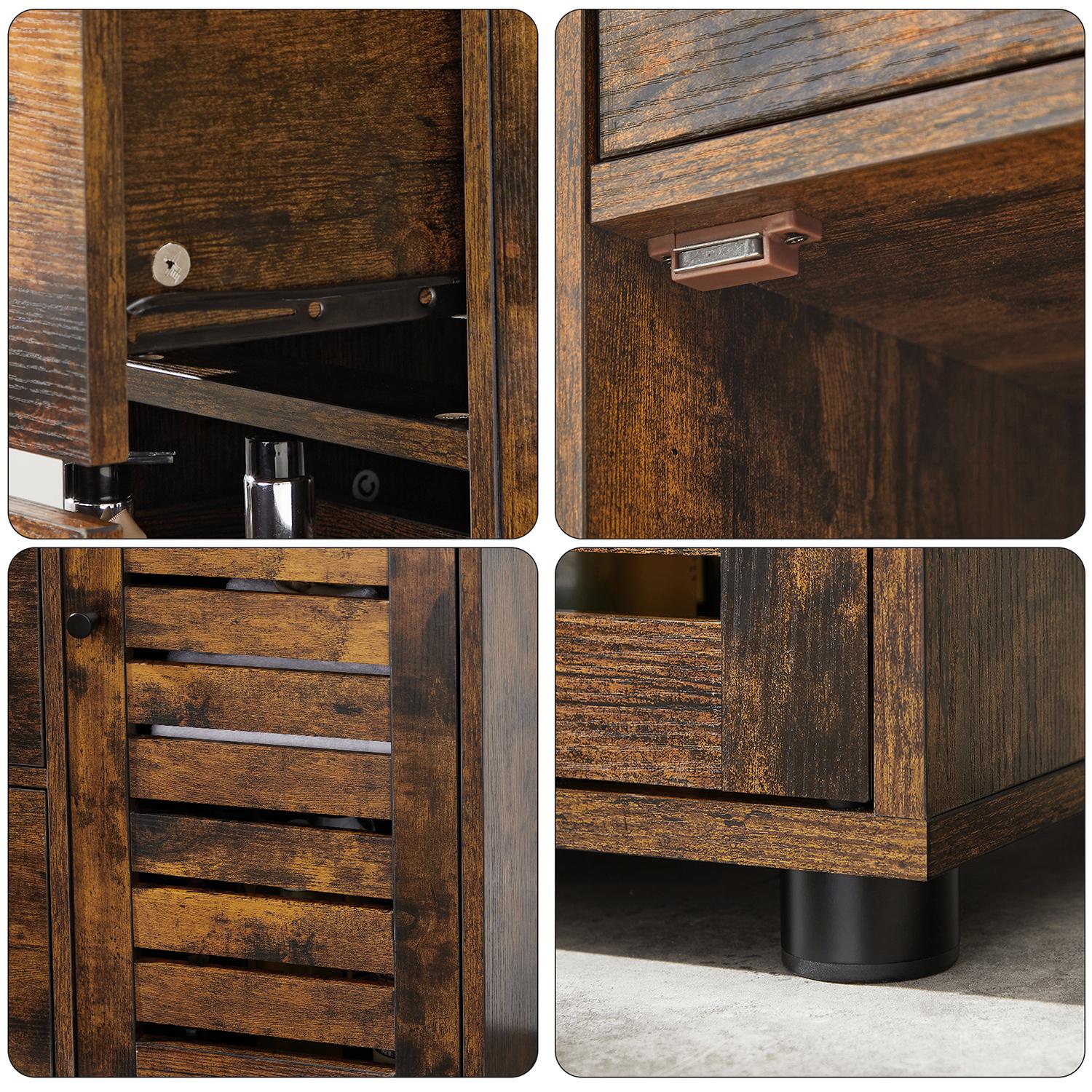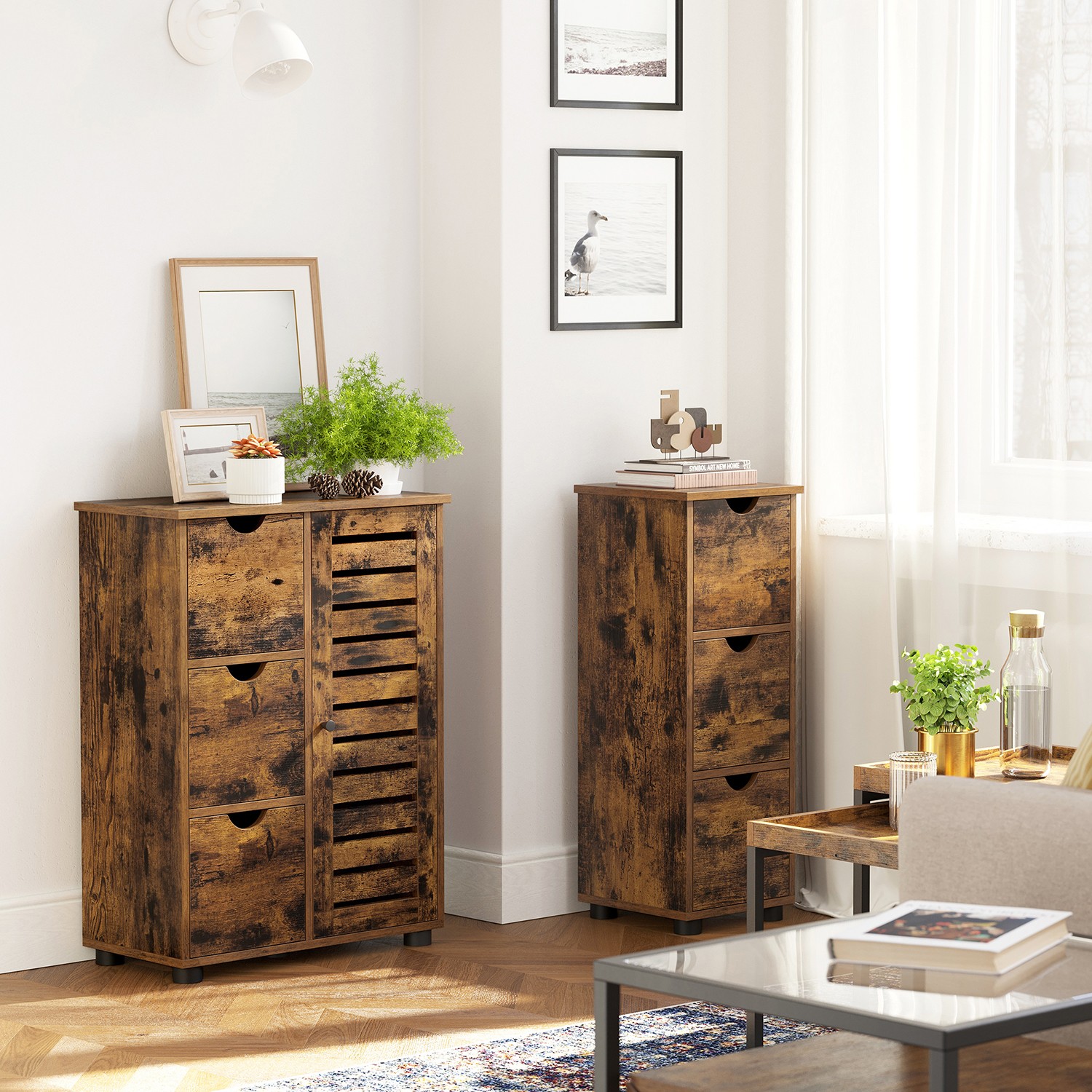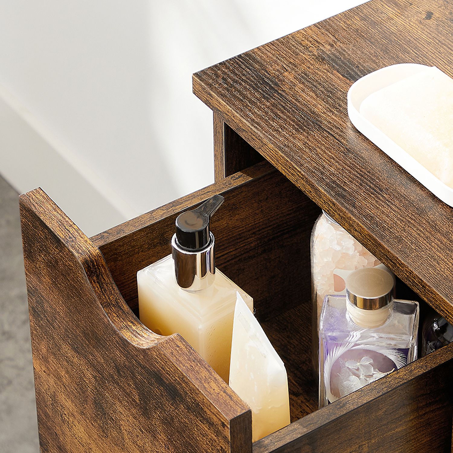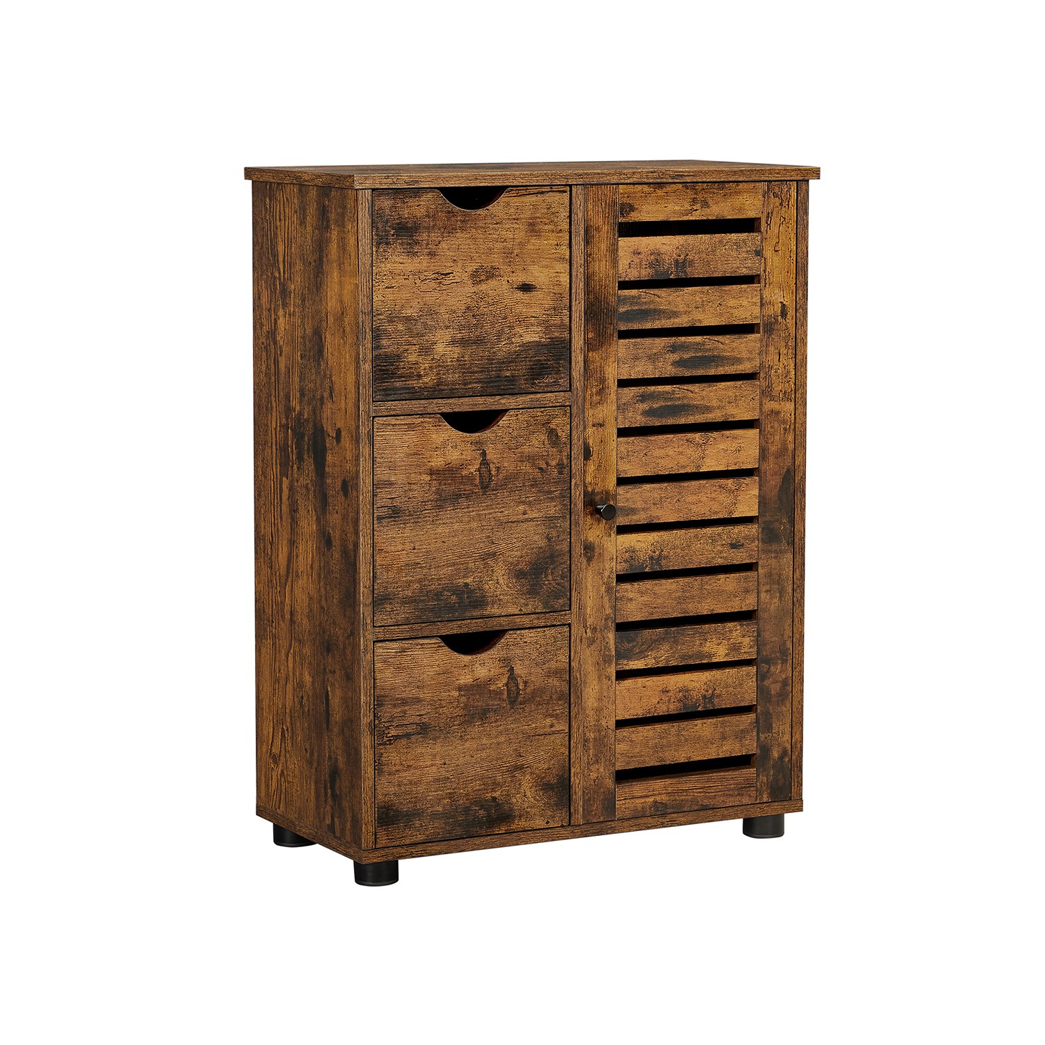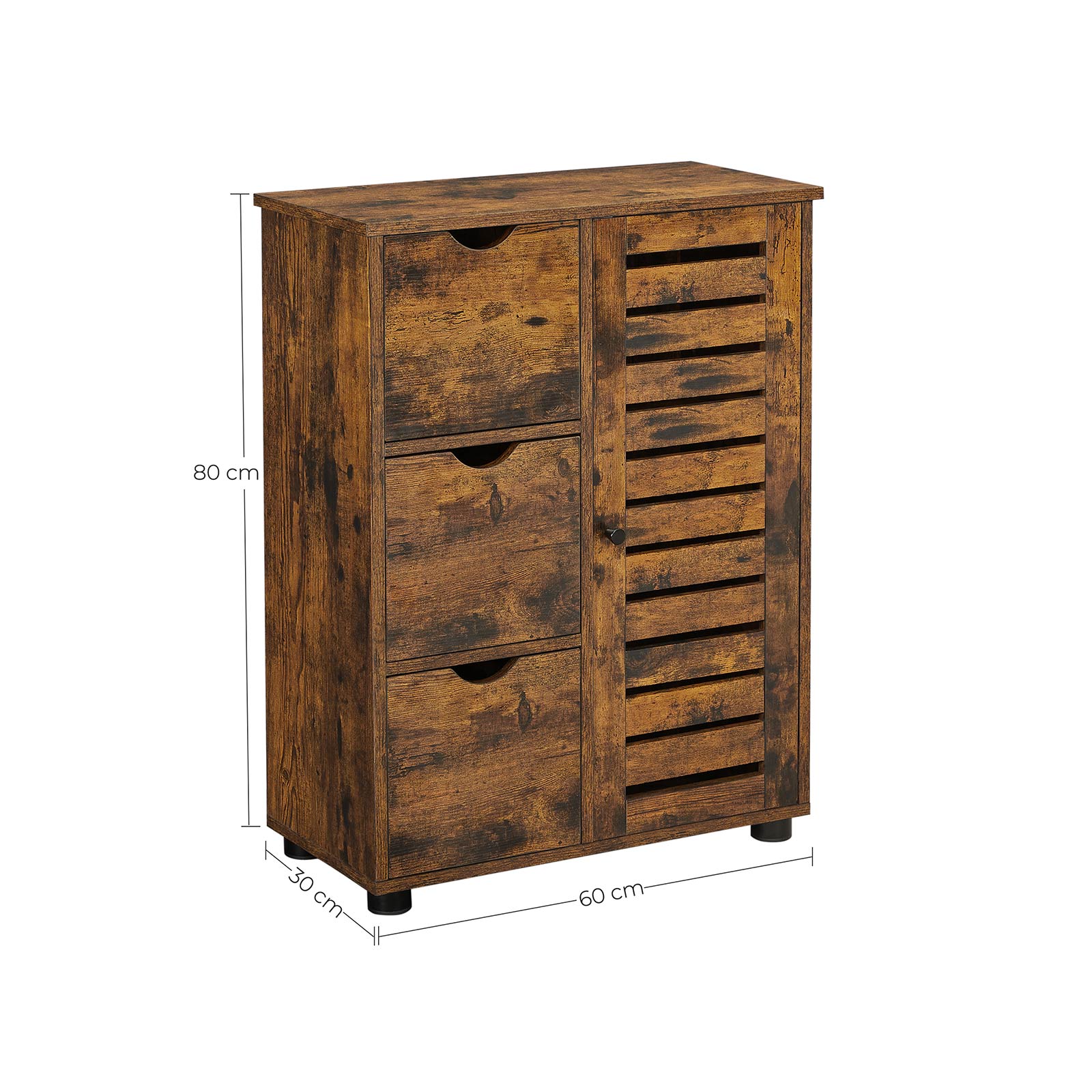 Tuotetiedot: – Väri: vintage-ruskea – Materiaali: lastulevy – Koko: 60 x 30 x 80 cm (P x L x K) – Paino: 20,3 kg – Maks. staattinen kokonaiskuormitus: 20 kg Toimitus sisältää: – 1 x kylpyhuoneen kaappi – 1 x lisävarustepaketti – 2 x kaatumissuoja – 1 x ohjeet VASAGLE Huomautukset: – Turvallisuussyistä lapset eivät saa kiivetä tuotteelle tai leikkiä sillä.- Tuotteen suurin staattinen kantavuus on 20 kg. Älä ylitä tätä enimmäispainoa. – Kiinnitä tämä tuote seinään mukana toimitetulla kaatumissuojalla turvallisen käytön varmistamiseksi. – Pyyhi nesteet pinnalta välittömästi kuivalla liinalla.