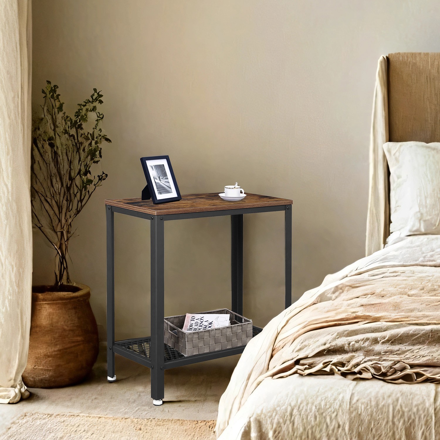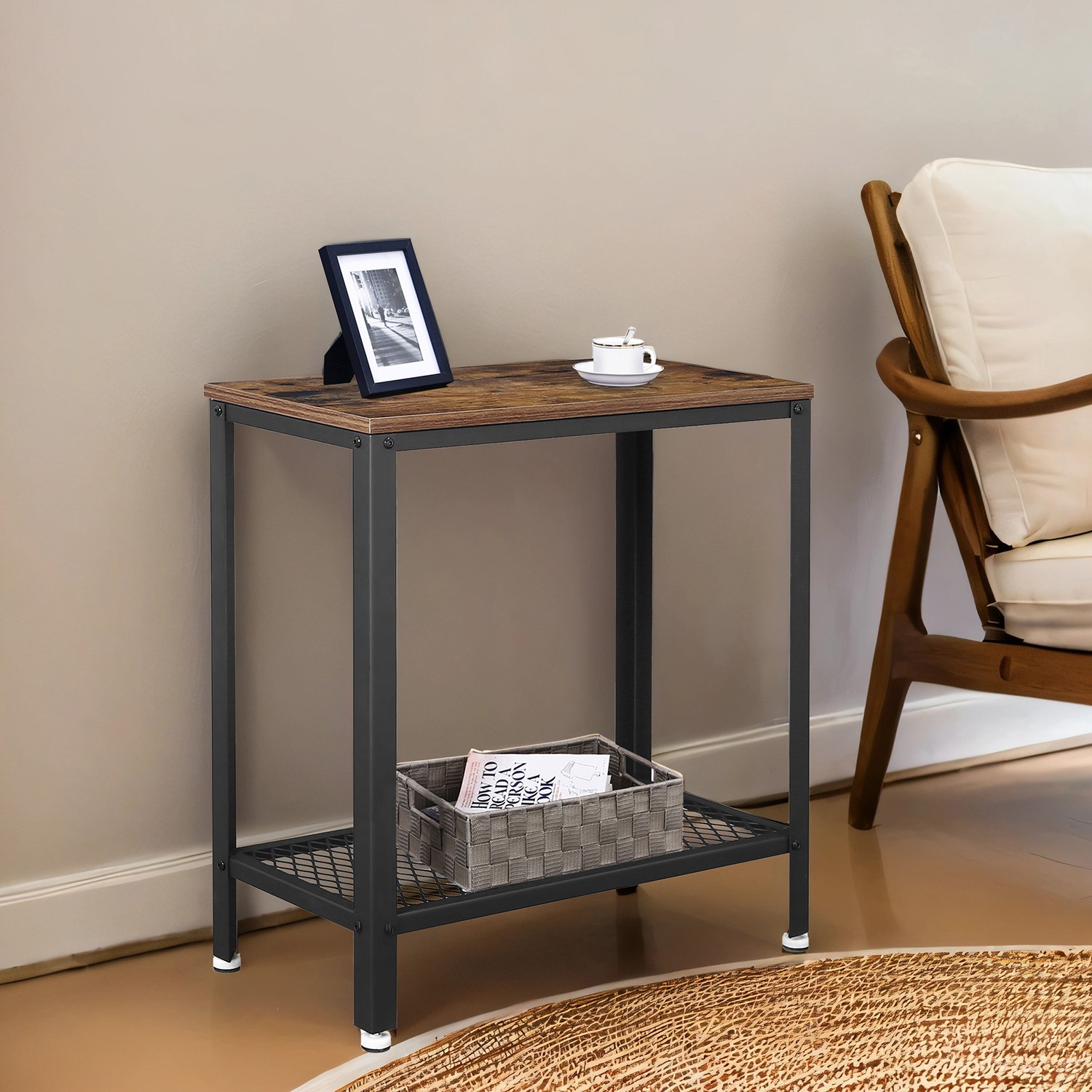 , kun ahmit suosikkijännityskirjaasi. Kapea sohvapöytä sopii muuten erinomaisesti yhteen muiden VASAGLE-teollisen muotoilun sarjan huonekalujen kanssa! Tuotetiedot: – Väri: vintage-ruskea-musta – Materiaali: lastulevy, teräs – Koko: 60 x 30 x 60 cm (P x L x K) – Paino: 6 kg – Pinnan enimmäiskuormitus: 20 kg – kuormituskyky hyllytasolla: 10 kg Toimitus sisältää: – 1 x sivupöytä – 1 x säilytyslaatikko tarvikkeilla – 1 x kuusiokoloavain – 1 x ohjeet (DE, EN, FR, ES, IT) VASAGLE Huomautukset: – Sijoita tämä tuote viileään, kuivaan paikkaan.