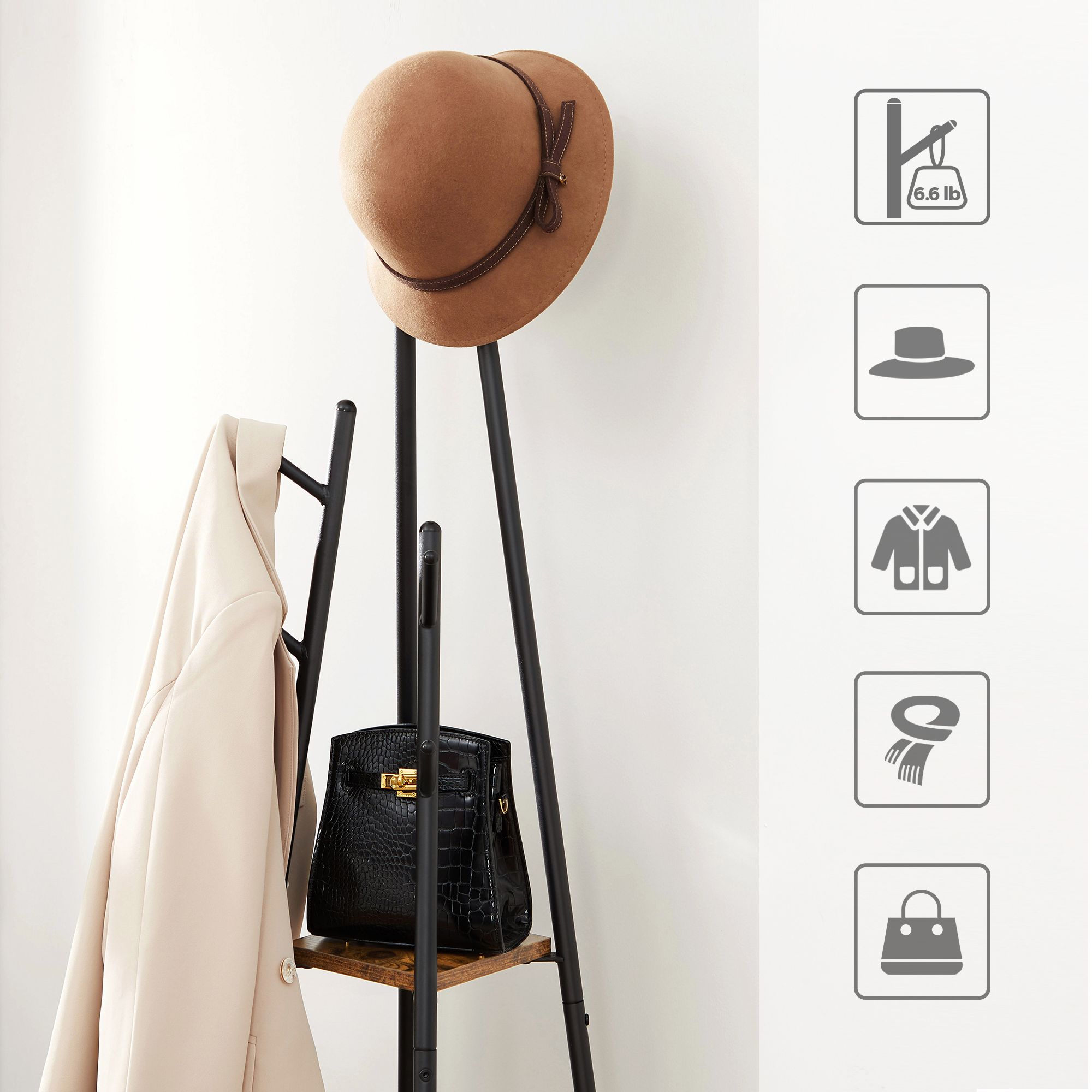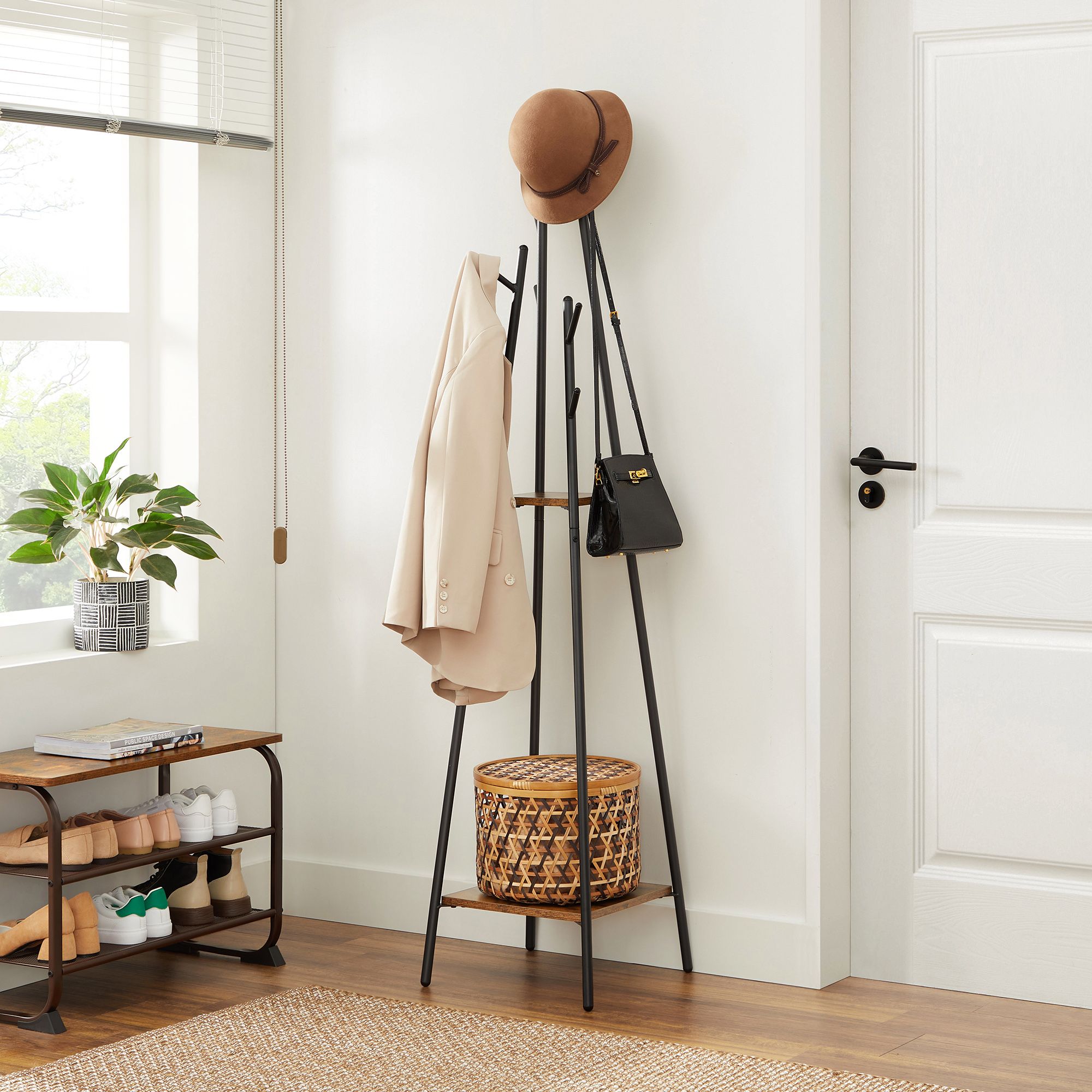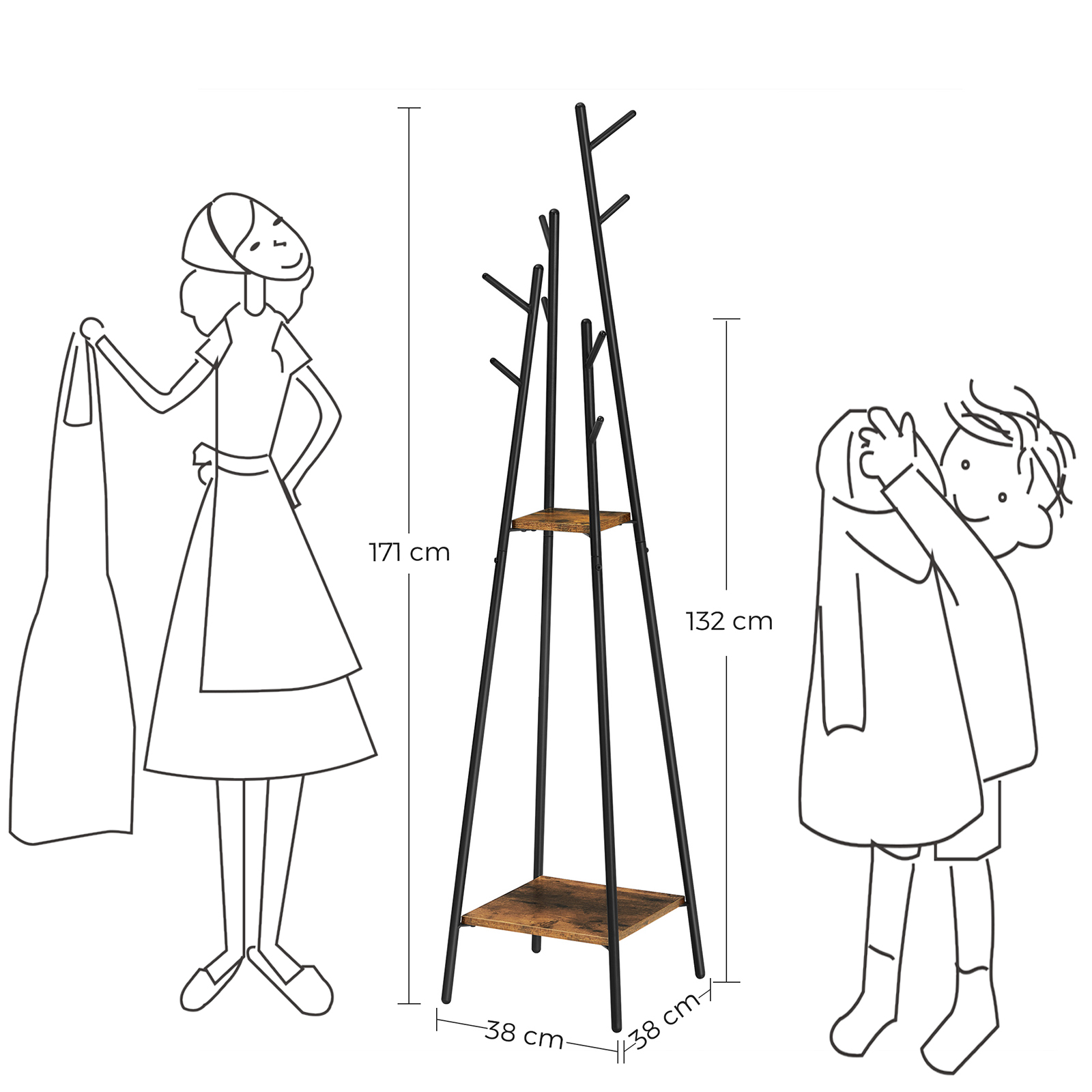 Tuotetiedot: – Väri: vintage-ruskea-musta – Materiaali: lastulevy, teräs – Koko: 38 x 38 x 171 cm (P x L x K) – Paino: 3,7 kg – Maks. staattinen kantavuus koukkua kohti: 3 kg – Maks. staattinen kantavuus hyllyllä: 5 kg Toimitus sisältää:- 1 x vaatekaappi – 1 x lisävarustepaketti – 1 x ohjeet (DE, FR, EN, ES, IT) VASAGLE Huomautukset: – Turvallisuussyistä lapset eivät saa kiivetä tuotteelle tai leikkiä sillä. – Ripusta esineet tasaisesti tähän telineeseen, jotta se ei kaadu.