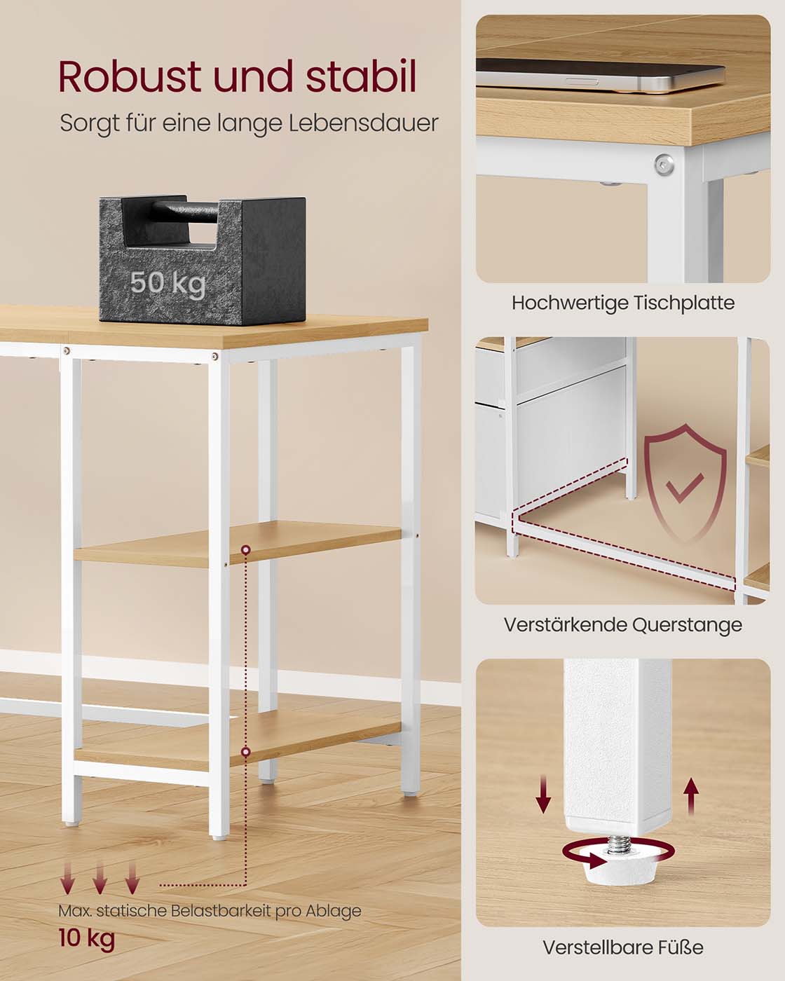 VASAGLE Kirjoituspöytä, tietokonepöytä, PC-pöytä, toimistopöytä, 2 hyllyllä oikealla tai vasemmalla puolella, toimistoon, olohuoneeseen, teräsrunko, teollinen muotoilu, musta LWD047B16
