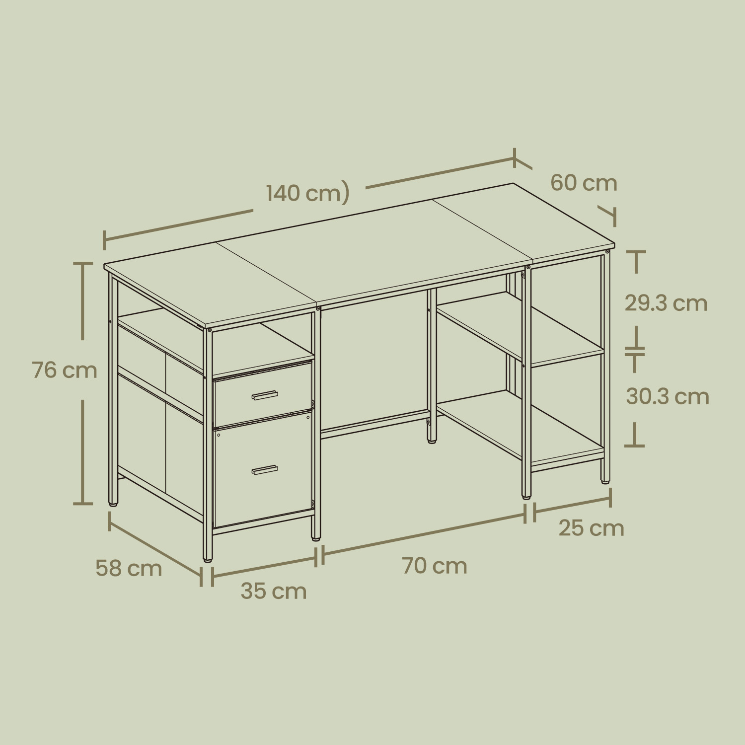 Koko: 60 x 140 x 76 cm (S x L x K)