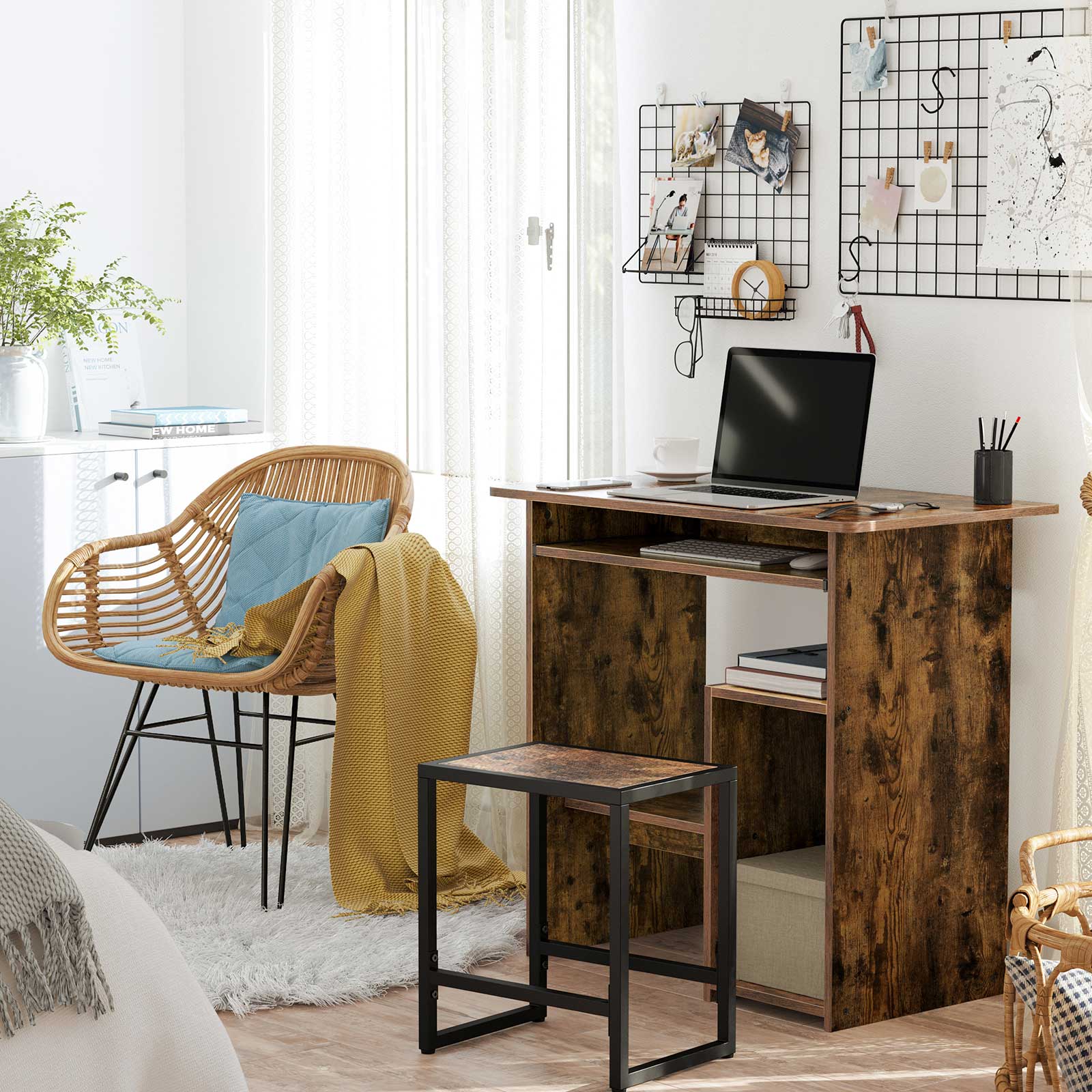 Tuotetiedot: Väri: vintage-ruskea Materiaali: puulevy Koko: 80 x 45 x 74 cm (P x L x K) Levyn paksuus: 15 mm Paino: 20 kg Toimitus sisältää: 1 x tietokonepöytä 1 x lisävarustepaketti 1 x ohjeet (DE, EN, FR, ES, IT)