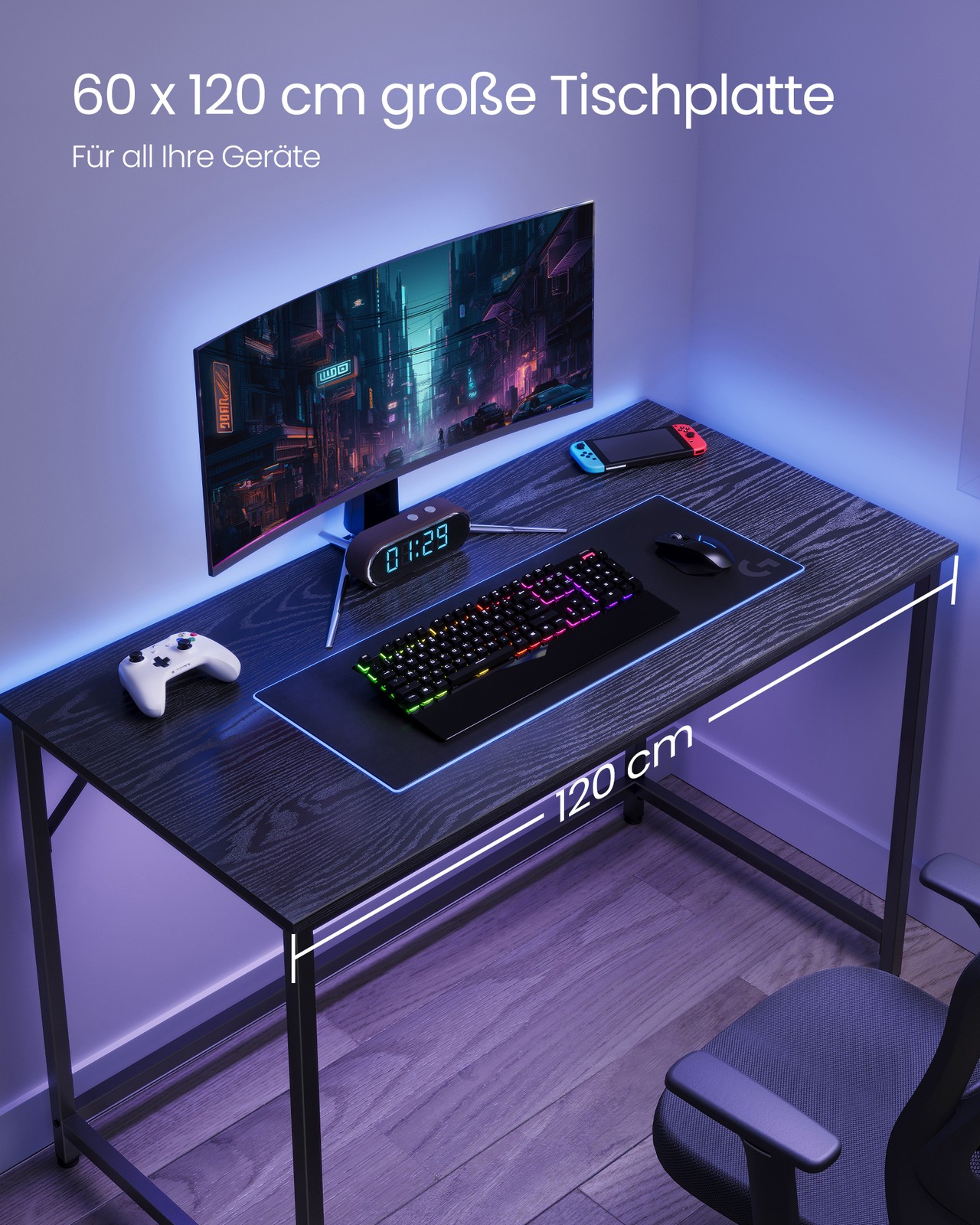 VASAGLE-kirjoituspöytä, tietokonepöytä, kapea toimistopöytä, 120 x 60 x 75 cm, työhuone, kotitoimisto, toimisto, helppo koota, teräs, teollinen muotoilu, vintage-ruskea-musta LWD039B01