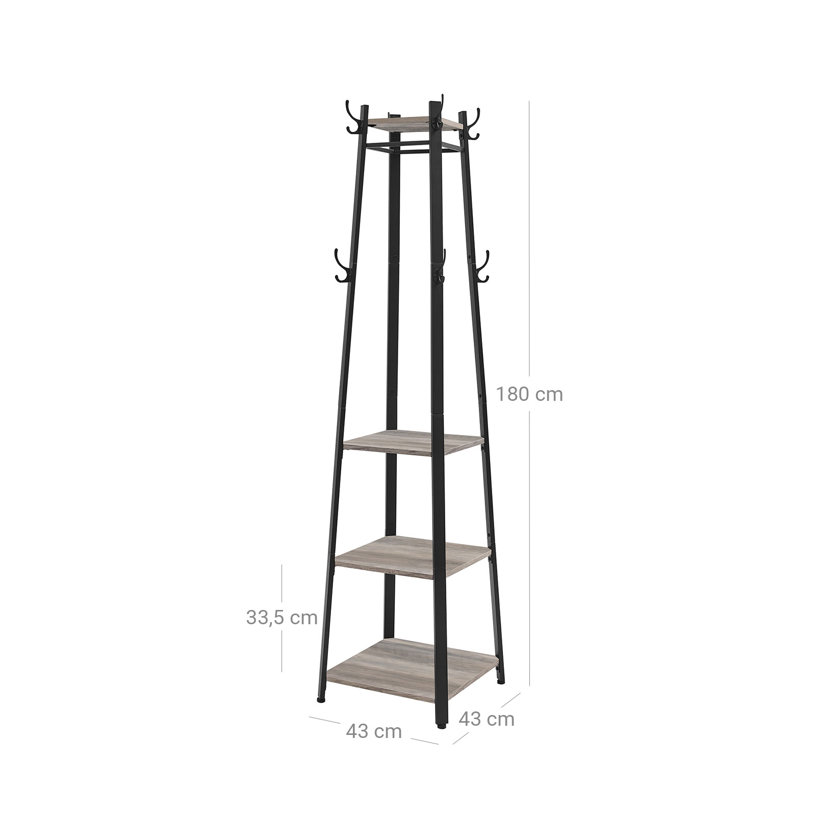 Tuotetiedot: – Väri: greige-musta – Materiaali: lastulevy, teräs – Koko: 43 x 43 x 180 cm (P x L x K) – Paino: 10,6 kg – Maks. kuormituskyky hyllyä kohti: 10 kgToimitus sisältää:- 1 x vaatekaappi- 1 x lisävarustepaketti- 1 x ohjeet (DE, EN, FR, ES, IT)VASAGLE-ohjeet:- Tuote on tarkoitettu käytettäväksi vain sisätiloissa. Aseta se kuivaan ympäristöön. – Hyllyjen enimmäiskuormitus on 10 kg. Älä aseta hyllyille painavampia esineitä. – Käytä kaatumissuojaa.