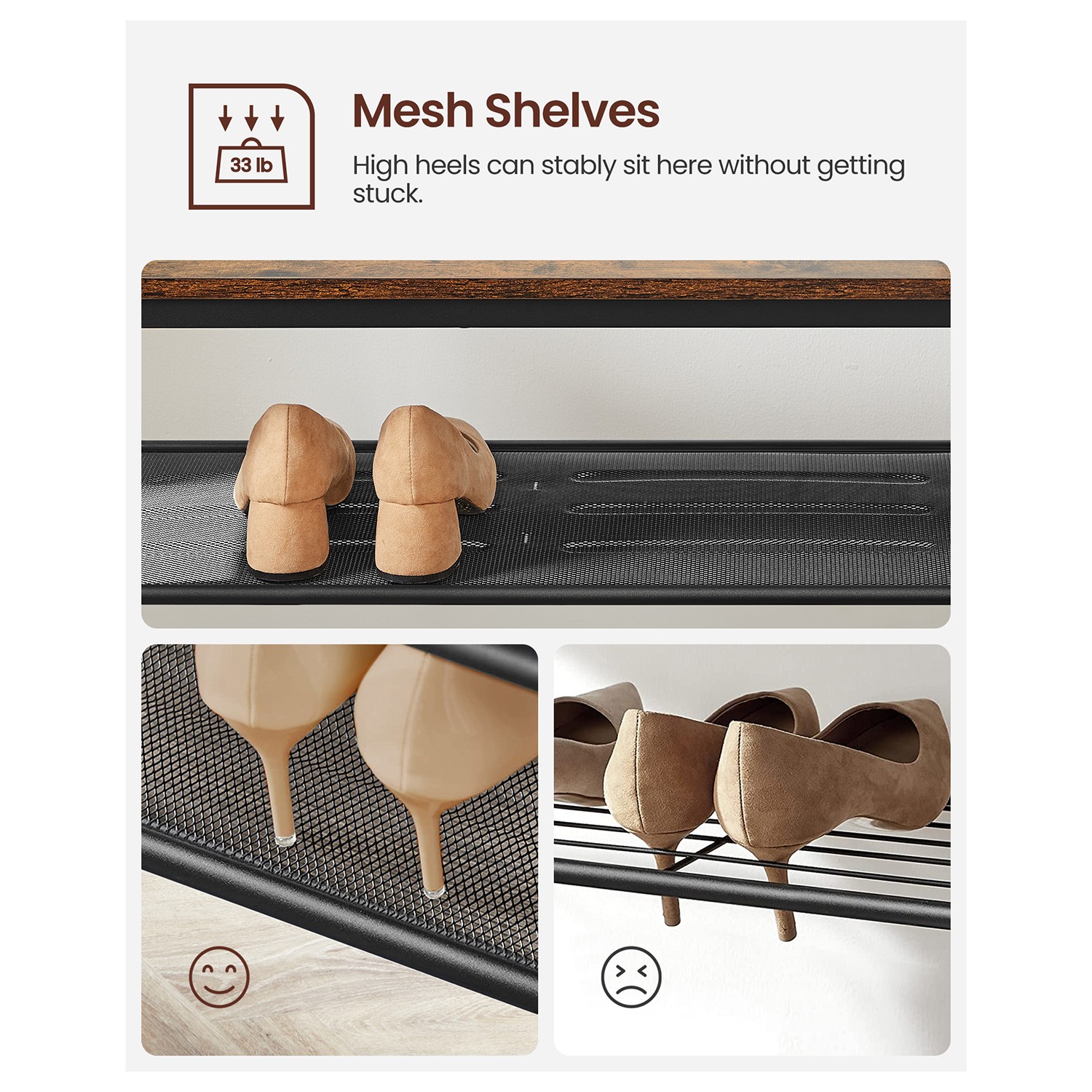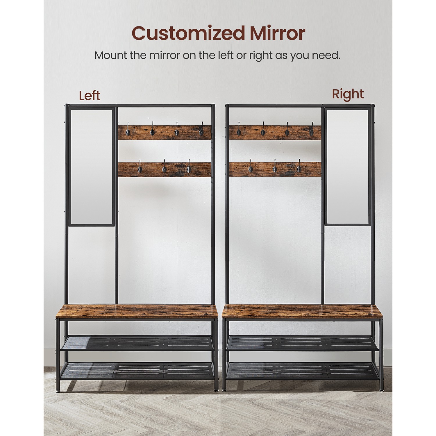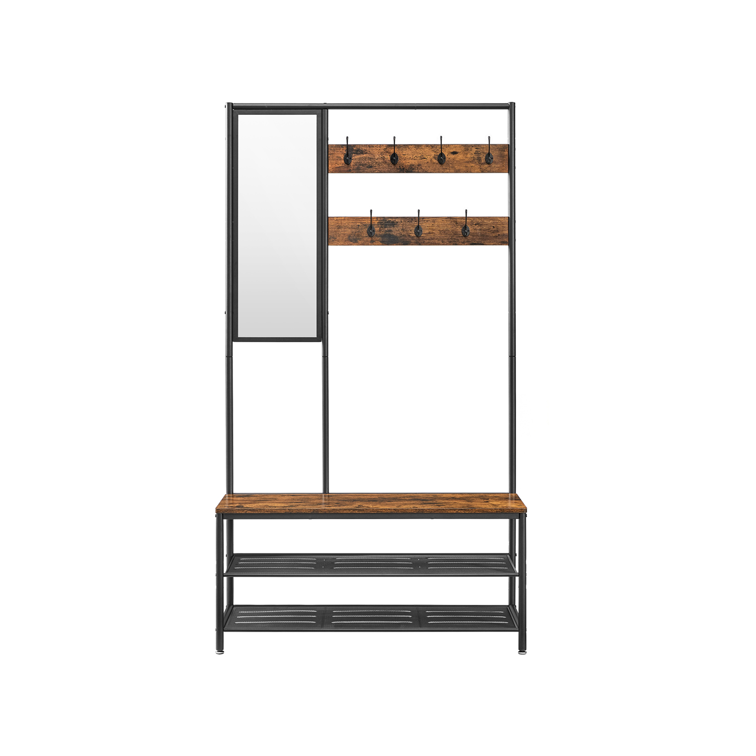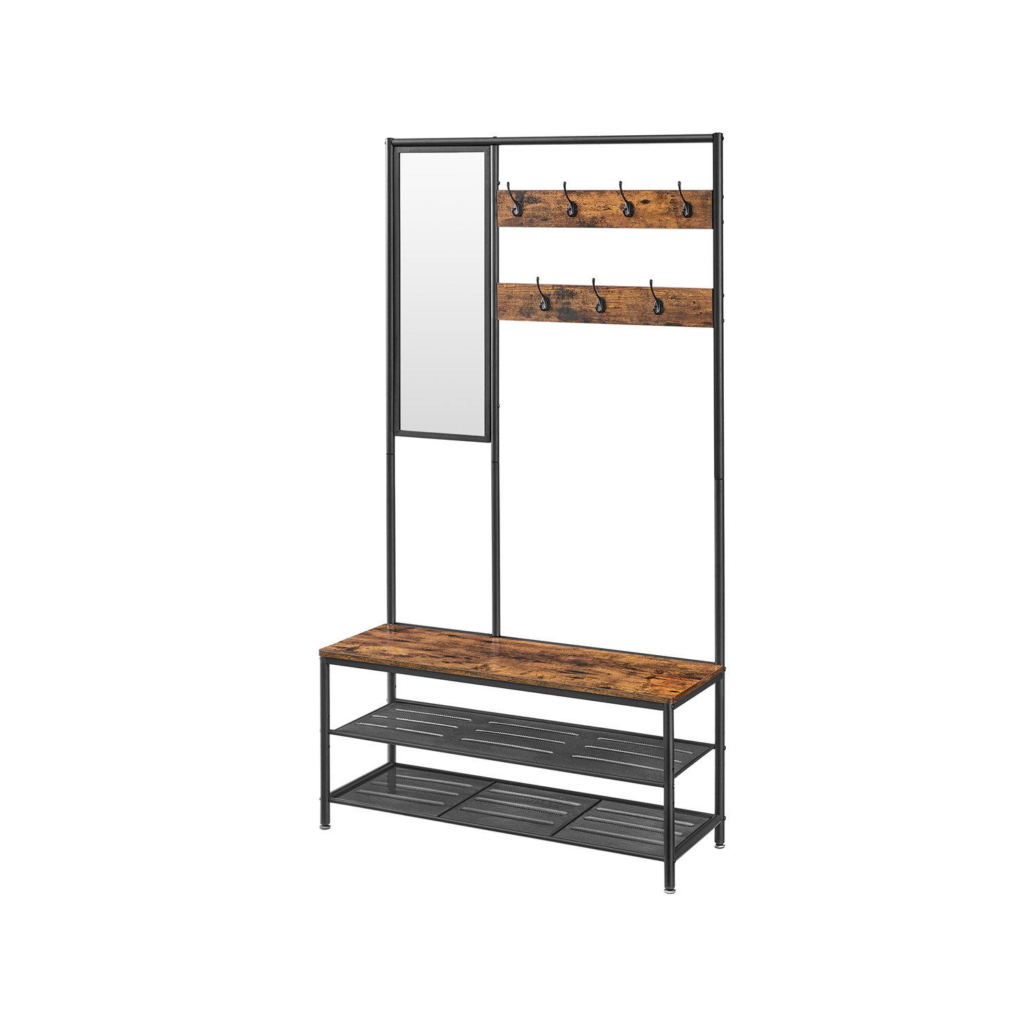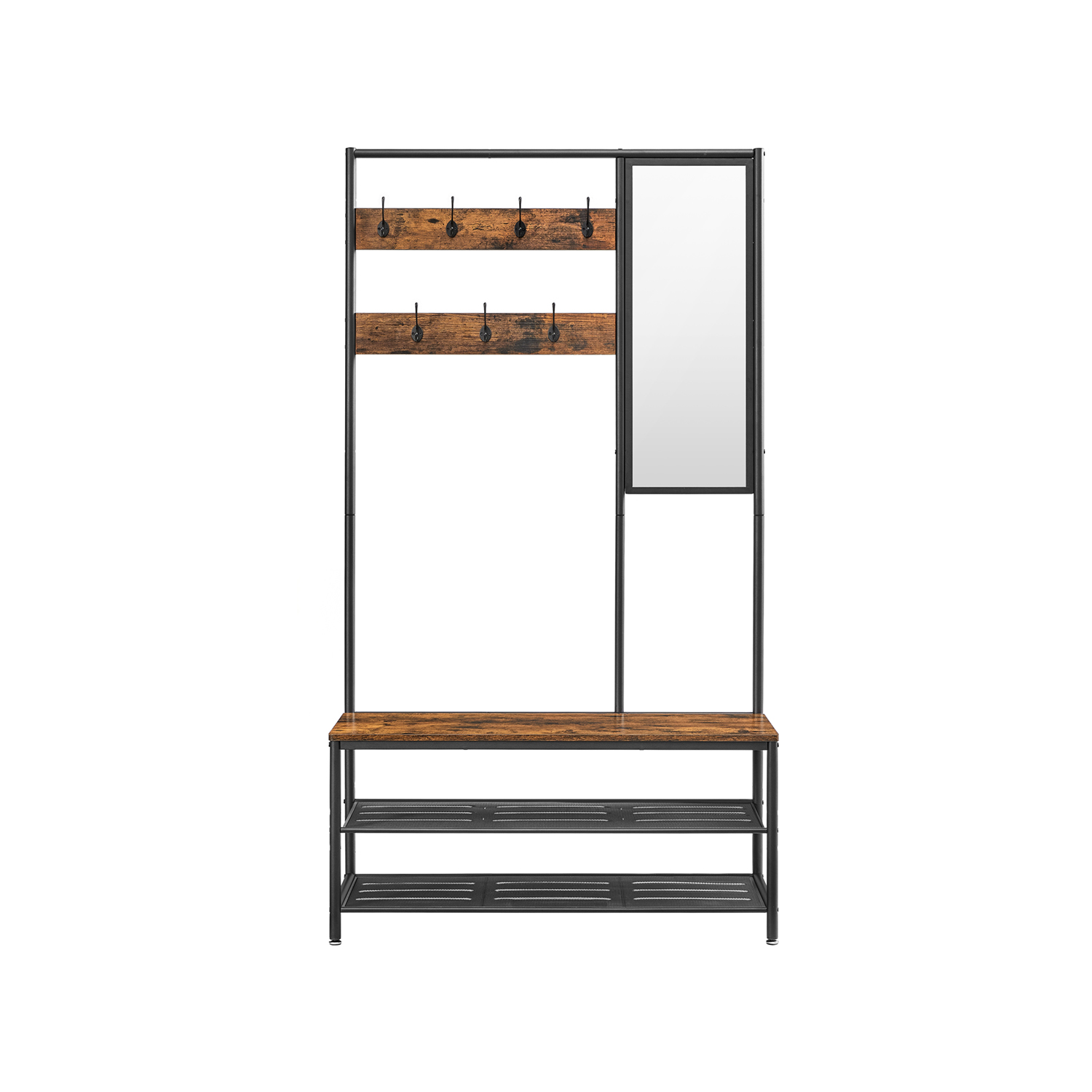 Tuotetiedot: – Väri: vintage-ruskea-musta – Materiaali: lastulevy, teräs – Mitat: 35 x 98 x 180 cm (S x L x K) – Paino: 15,9 kg – Maks. staattinen kantavuus koukkua kohti: 5 kg – Maks. staattinen kantavuus hyllyä kohti: 15 kg – Maks. staattinen kantavuus istuinta kohti: 100 kg Toimitus sisältää: – 1 x vaatekaappi – 2 x kaatumissuoja – 1 x lisävarustepaketti – 1 x ohjeet VASAGLE Huomautukset: – Turvallisuussyistä lapset eivät saa kiivetä tai leikkiä tällä tuotteella. – Kiinnitä tuote seinään mukana toimitetulla kaatumissuojalla. – Istuimen suurin staattinen kantavuus on 100 kg, älä ylitä tätä.