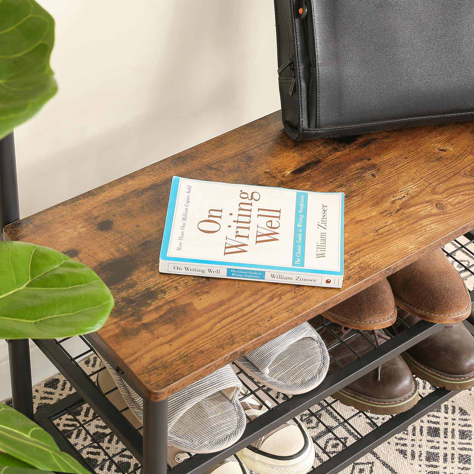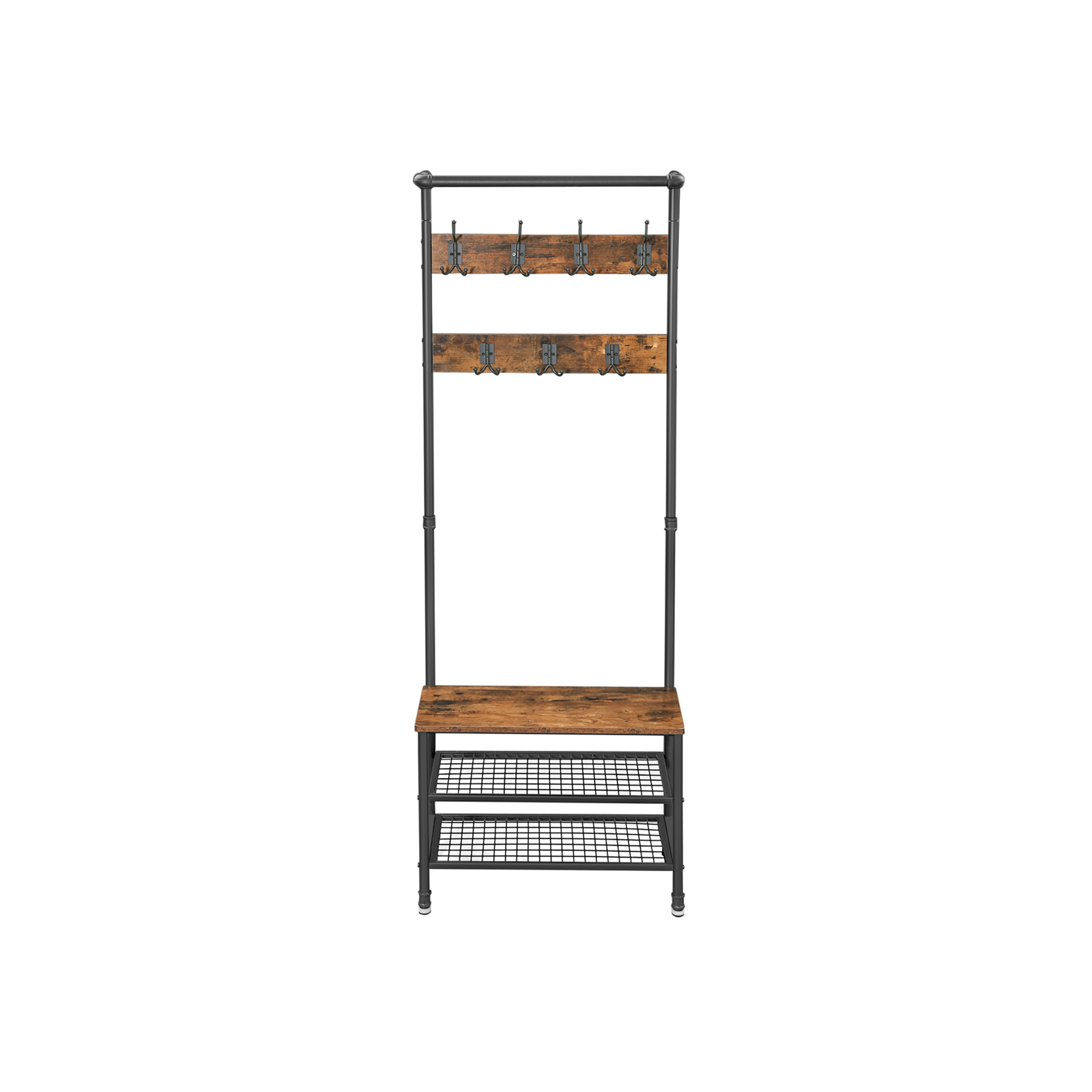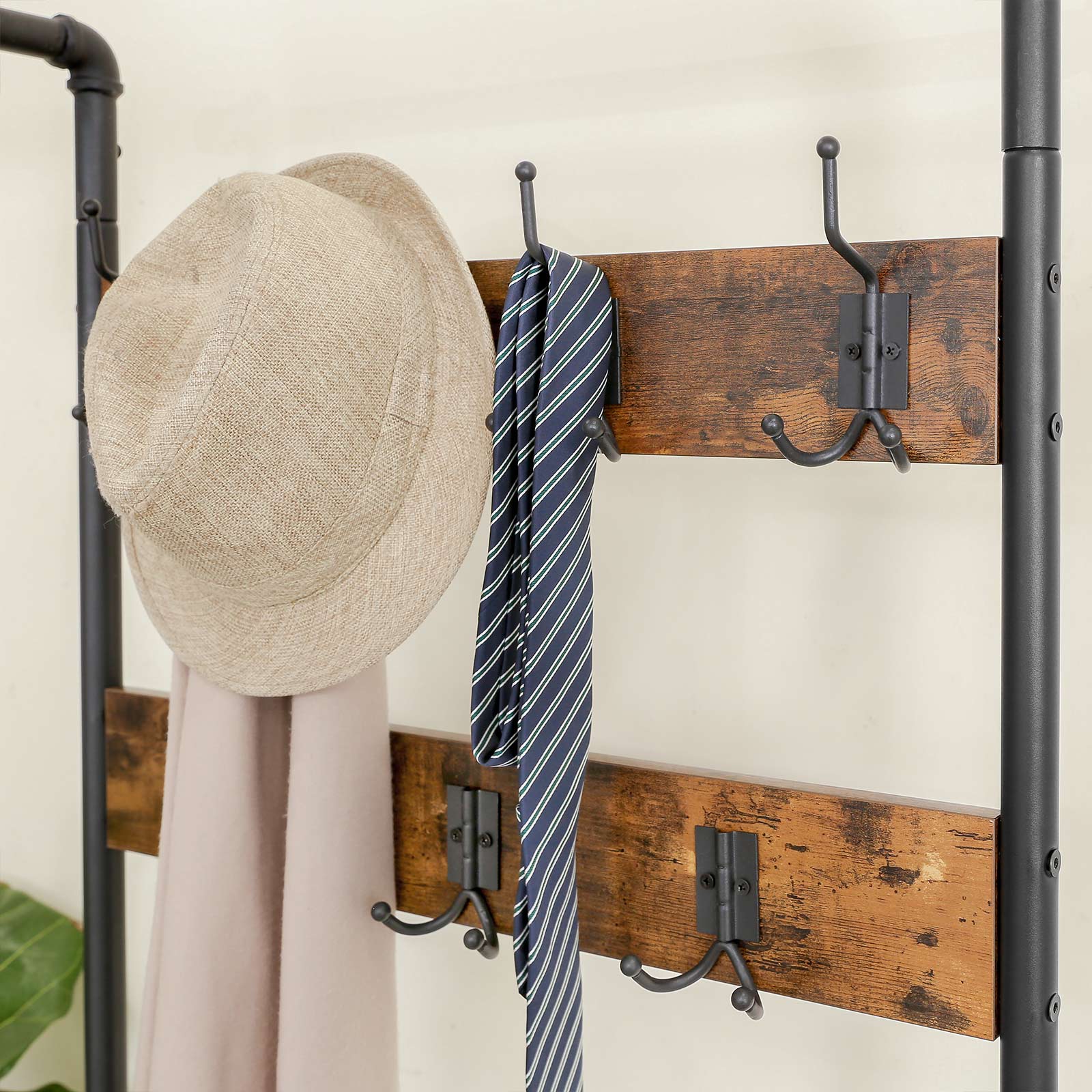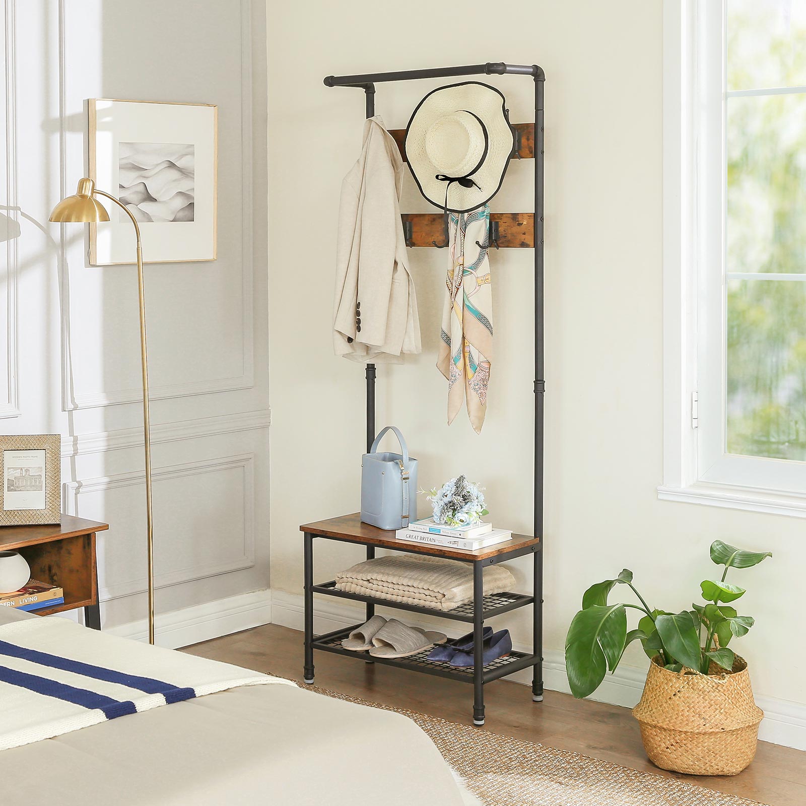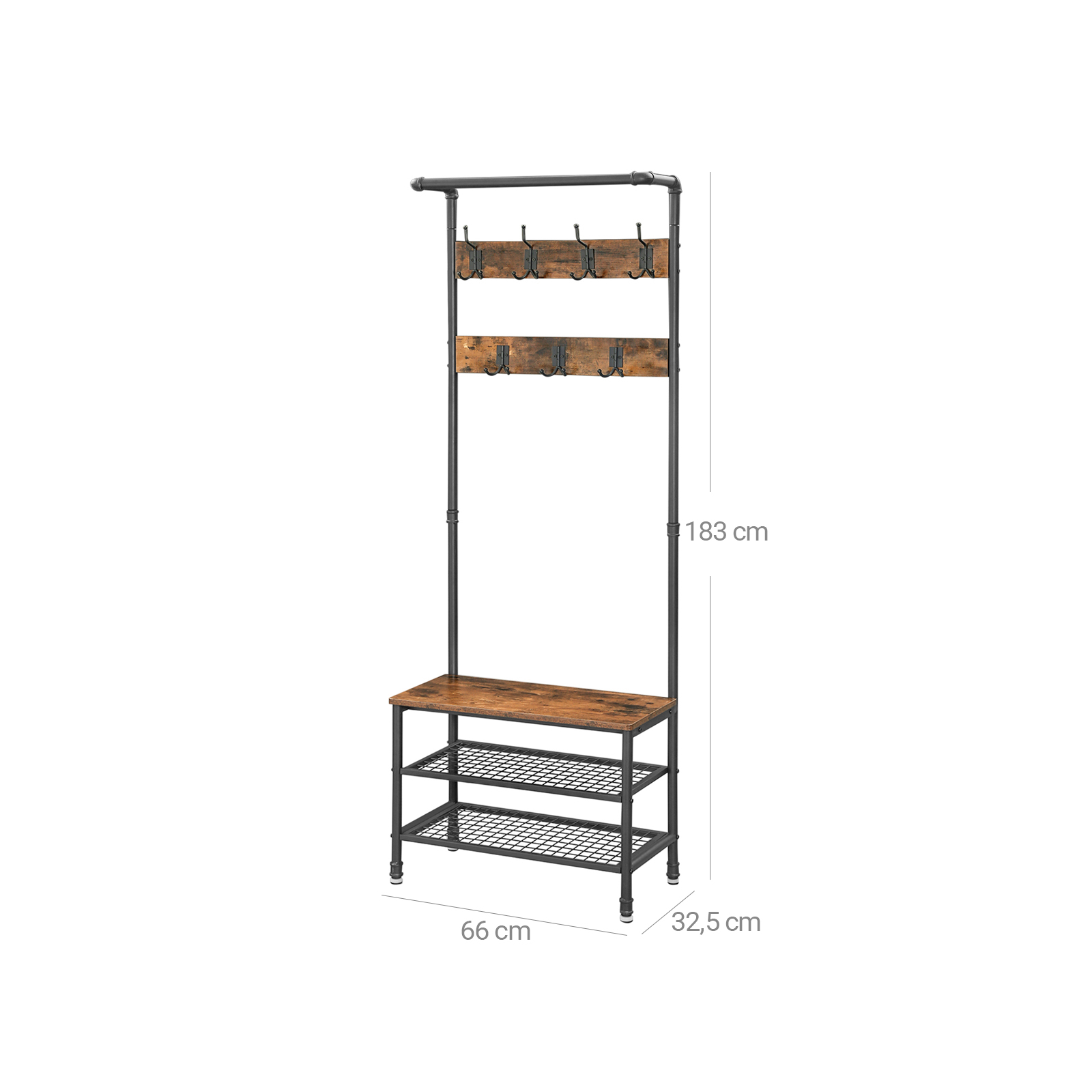 Täällä vaatteesi roikkuvat iloisesti. Täydellisesti toisiinsa liitetyt putket, erottuvat ritilähyllyt, hienostunut vintage-pinta – valtakunta vaatteillesi ja asusteillesi. Tuotetiedot:- Väri: vintage/tummanruskea – Materiaali: lastulevy, rauta – Koko: 66 x 32,5 x 183 cm (P x L x K) – Paino: 11,6 kg – Istuimen pinnan maks. staattinen kantavuus: 100 kg – Ristikon hyllyn maks. staattinen kantavuus: 10 kg Toimitus sisältää:- 1 x vaatekaappi – 1 x asennustarvikkeet – 1 x ohjeet (DE, EN, ES, FR, IT) VASAGLE-ohjeet: – Sijoita tuote siten, että se ei ole alttiina lämmönlähteille, suoralle auringonvalolle tai kosteudelle. – Noudata maksimaalista kantavuutta koskevia ohjeita ja älä aseta tuotteen päälle painavia esineitä.