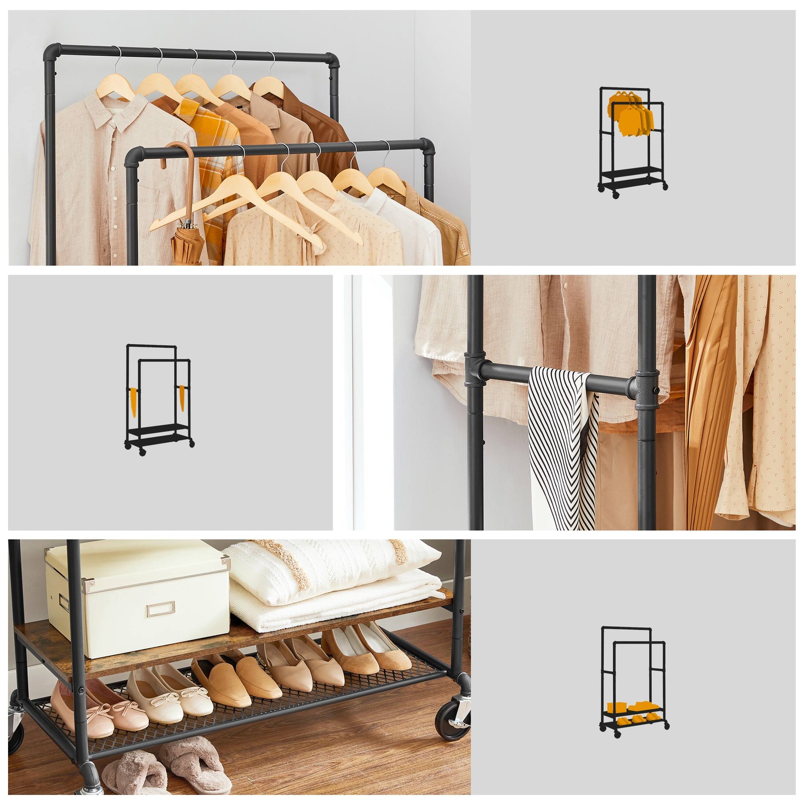 Tuotetiedot: – Väri: vintage-ruskea-musta – Materiaali: lastulevy, teräs – Koko: 100 x 51 x 150/175 cm (P x L x K) – Paino: 14 kg – Maks. staattinen kantavuus vaateripustinta kohti: 57 kg – Maks. staattinen kantavuus hyllyä kohti: 15 kg Toimitus sisältää: – 1 x vaateripustin – 1 x lisävarustepaketti – 1 x ohjeet