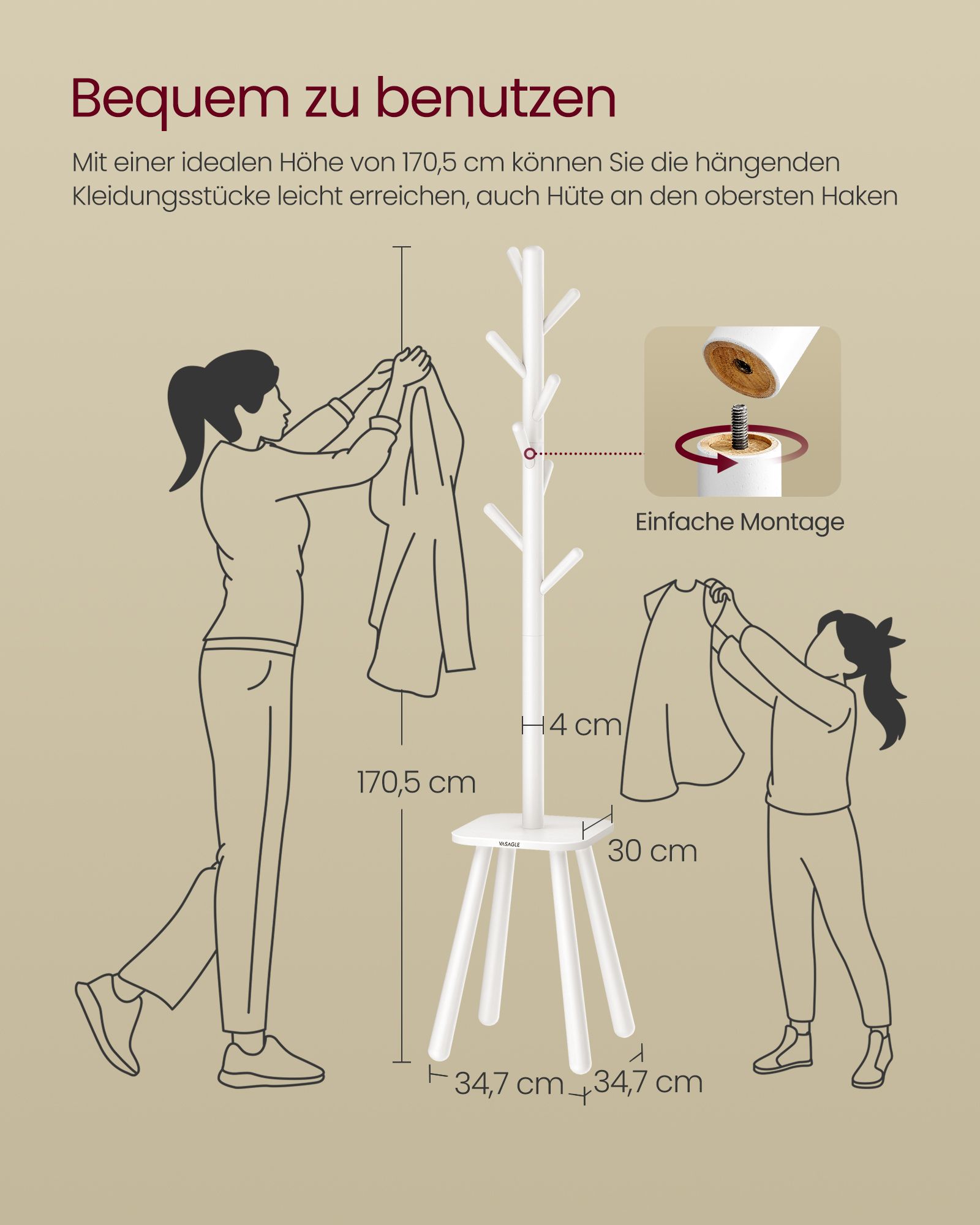 VASAGLE vaateripustin, vaateteline, 8 koukulla ja hyllyllä, korkeus 170,5 cm, takkeja, hattuja, laukkuja varten, eteinen, käytävä, makuuhuone, musta RCR033B01