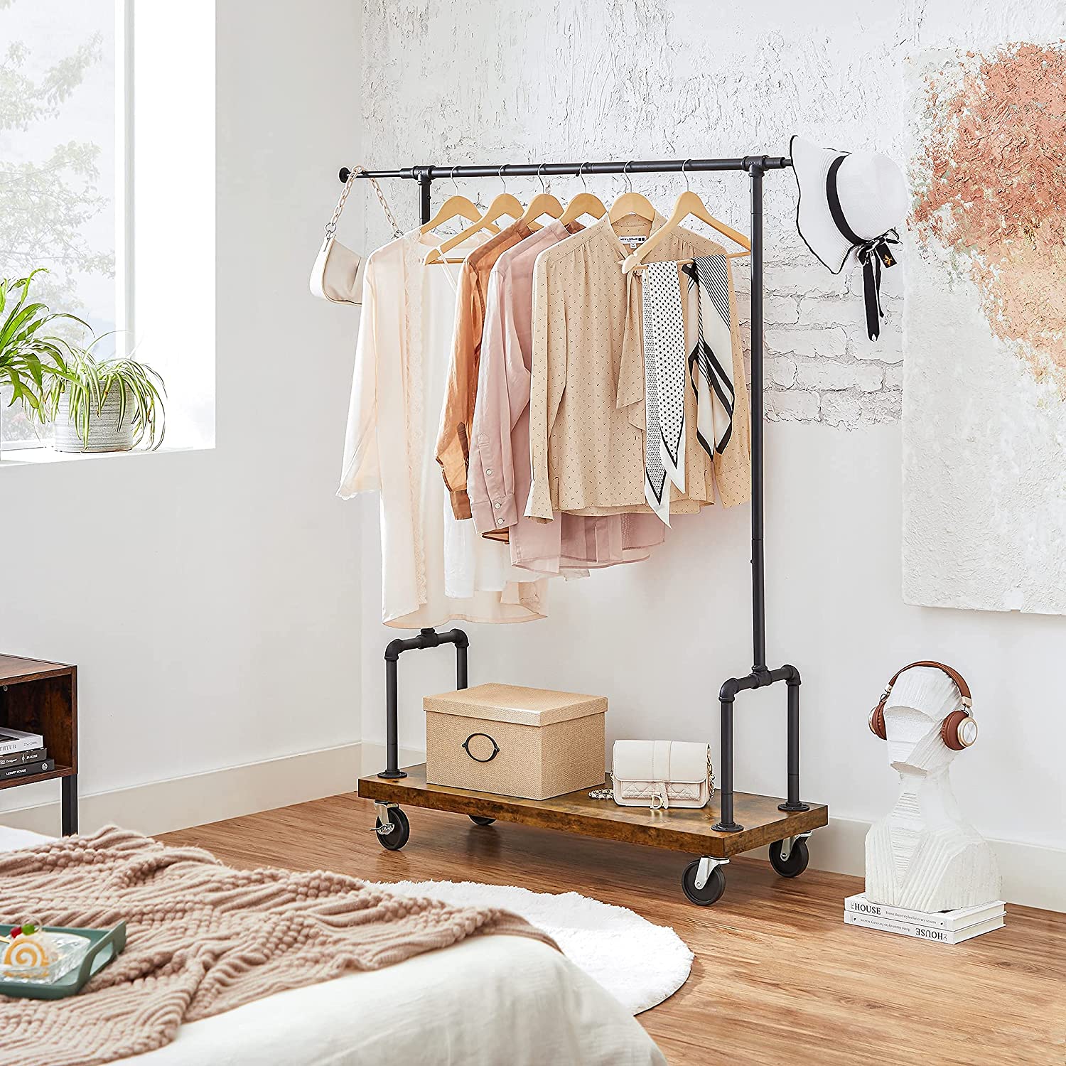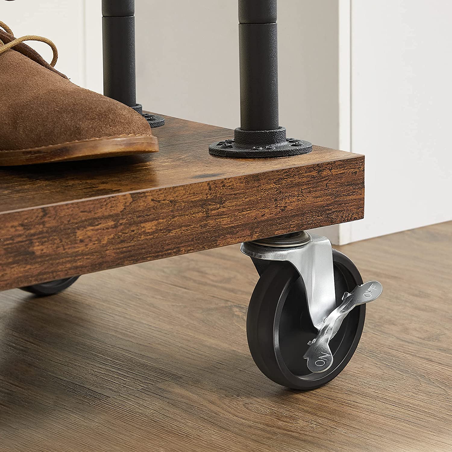Tuotetiedot: – Väri: vintage-ruskea-musta – Materiaali: lastulevy, teräs – Koko: (110-168) x 40 x 160 cm (P x L x K) – Paino: 12,4 kg – Keskimmäisen tangon maks. staattinen kantavuus: 95,5 kg – Sivuttaisella ulosvedettävällä tangolla maks. staattinen kantavuus: 9 kg – Hyllyn maks. staattinen kantavuus: 25 kg Toimitus sisältää: – 1 x vaateteline – 1 x lisävarustepaketti – 1 x ohjeet