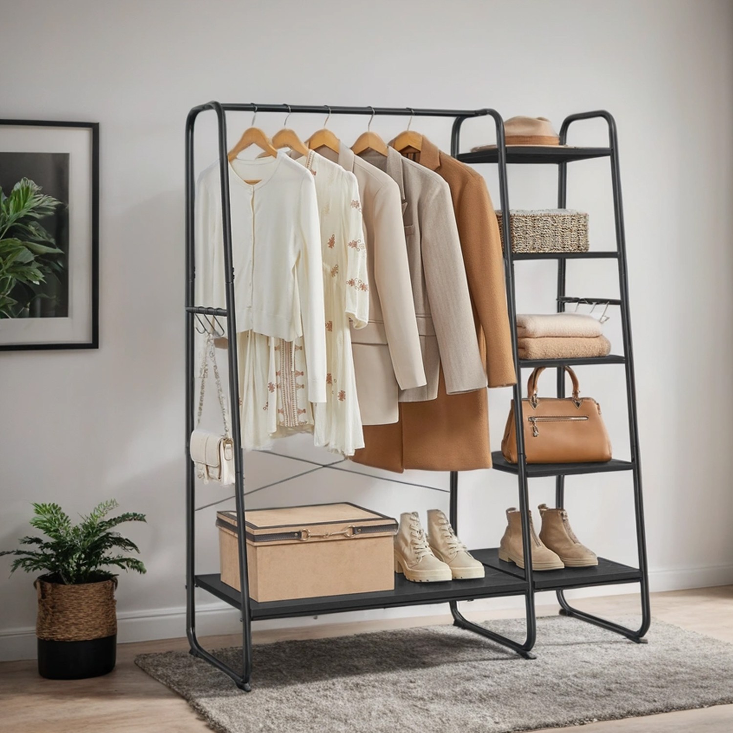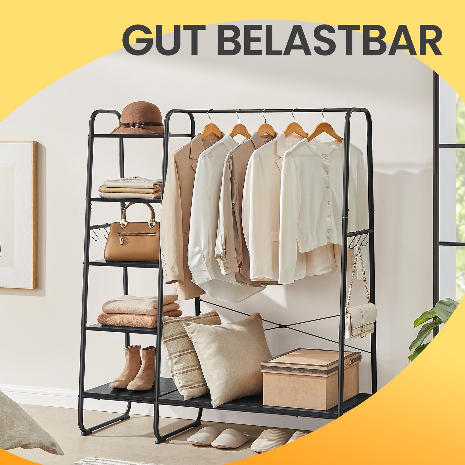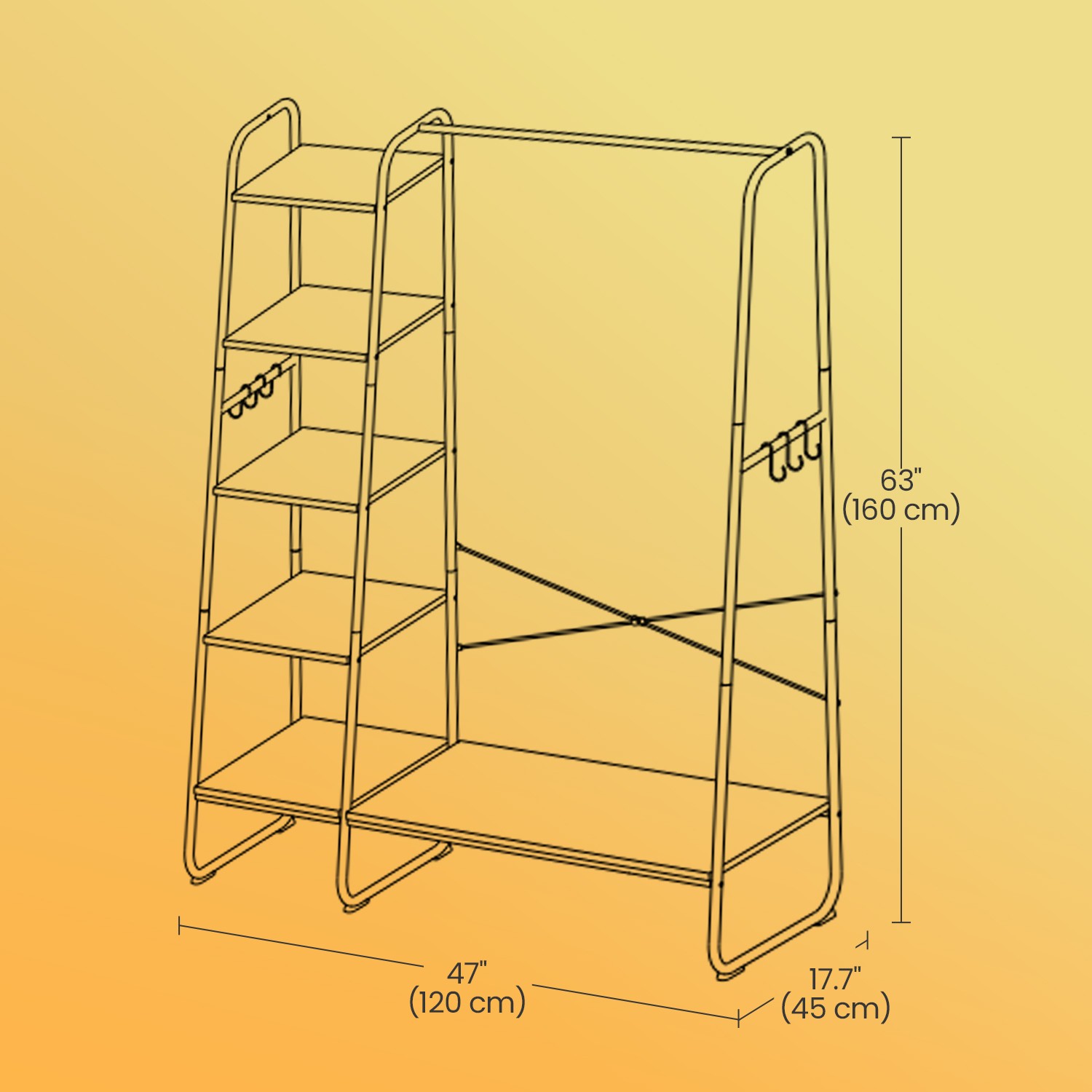 VASAGLE vaateteline, vaatekaappi, 5 tasoa, 45 x 120 x 160 cm, vaatekaappi kenkätelineellä, vaatetanko, avoin vaatekaappi, 6 koukkua, teollinen muotoilu, vintage-ruskea-musta RGR116B01