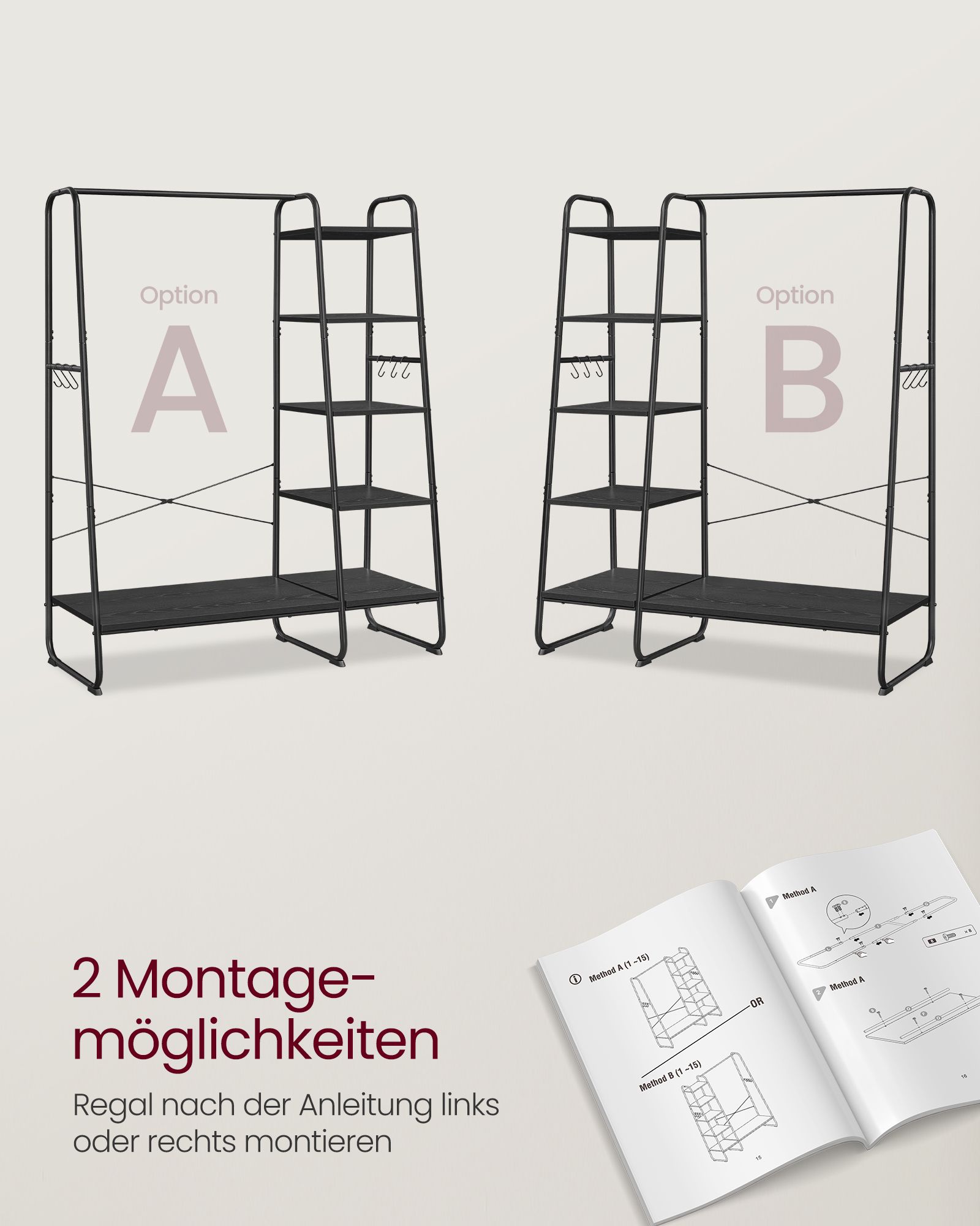 VASAGLE vaateteline, vaatekaappi, 5 tasoa, 45 x 120 x 160 cm, vaatekaappi kenkätelineellä, vaatetanko, avoin vaatekaappi, 6 koukkua, teollinen muotoilu, vintage-ruskea-musta RGR116B01