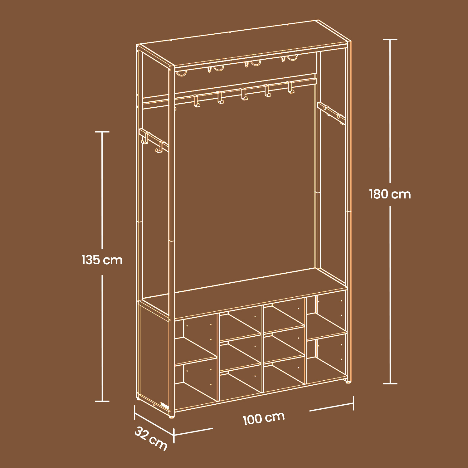 Koko: 32 x 100 x 180 cm (S x L x K)