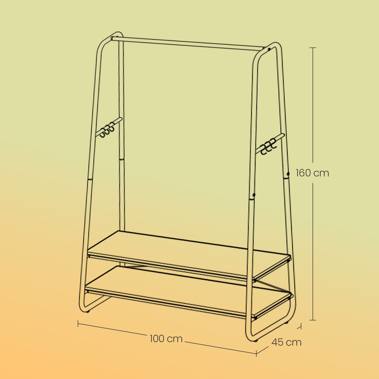 VASAGLE vaateteline, vaatekaappi, 2 hyllyä, 6 S-muotoista koukkua, teräsrunko, makuuhuoneeseen, eteiseen, sisäänkäyntiin, teollinen muotoilu, vintage-ruskea-musta RGR112B01