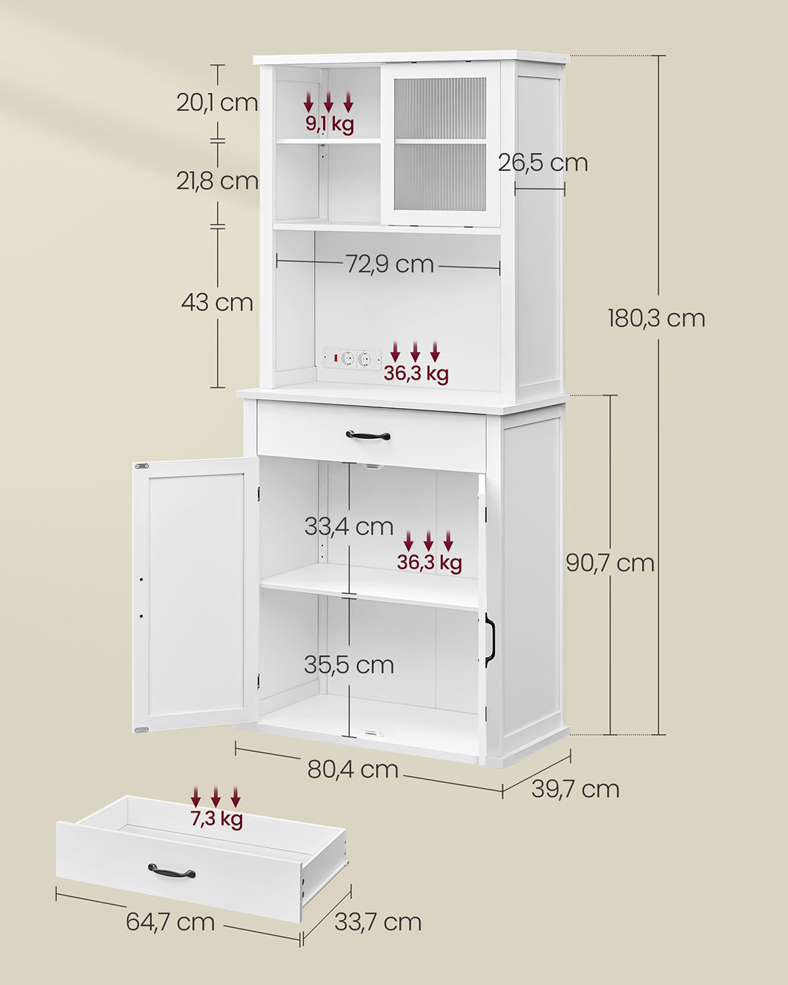 Koko: 39,7 x 80,4 x 180,3 cm (S x L x K)