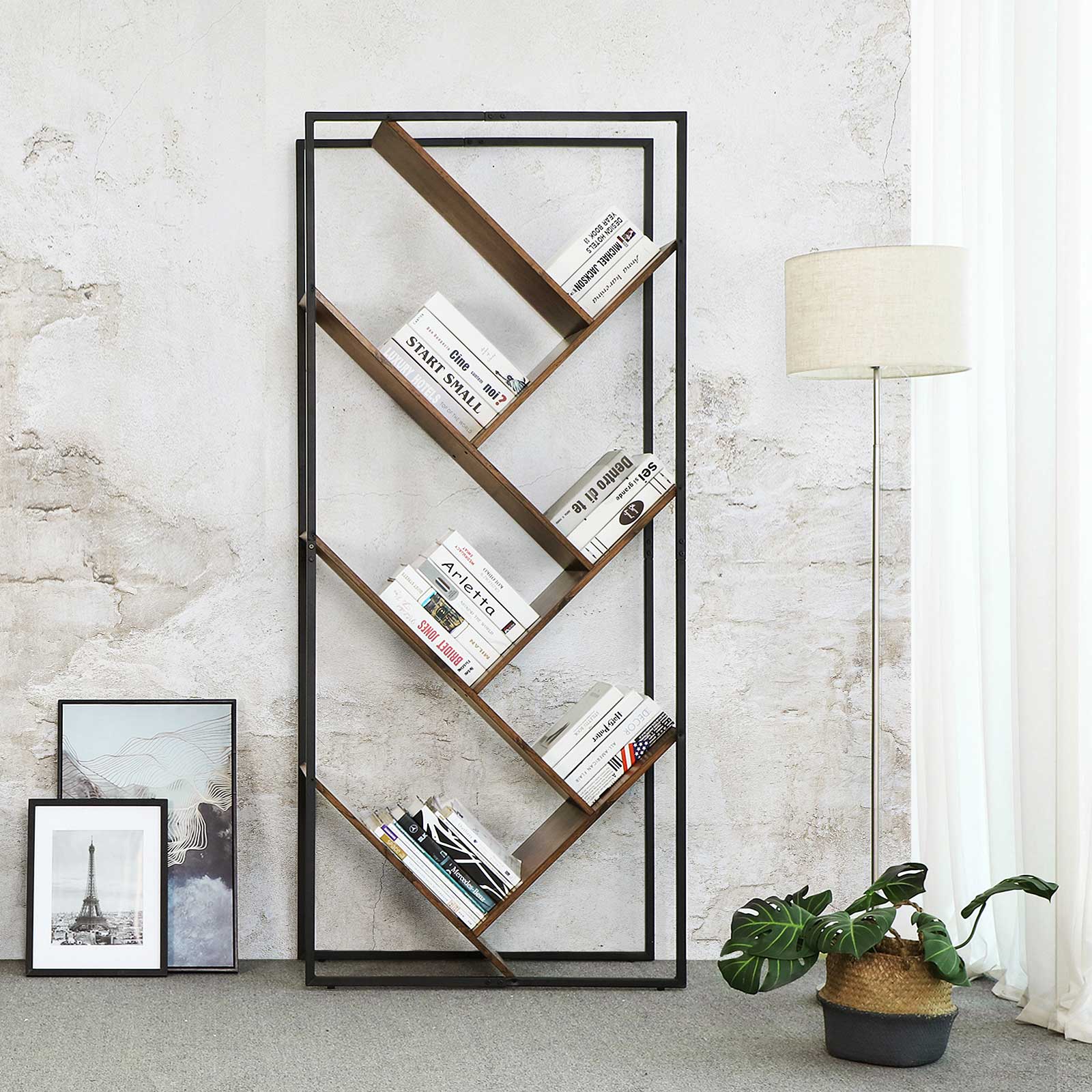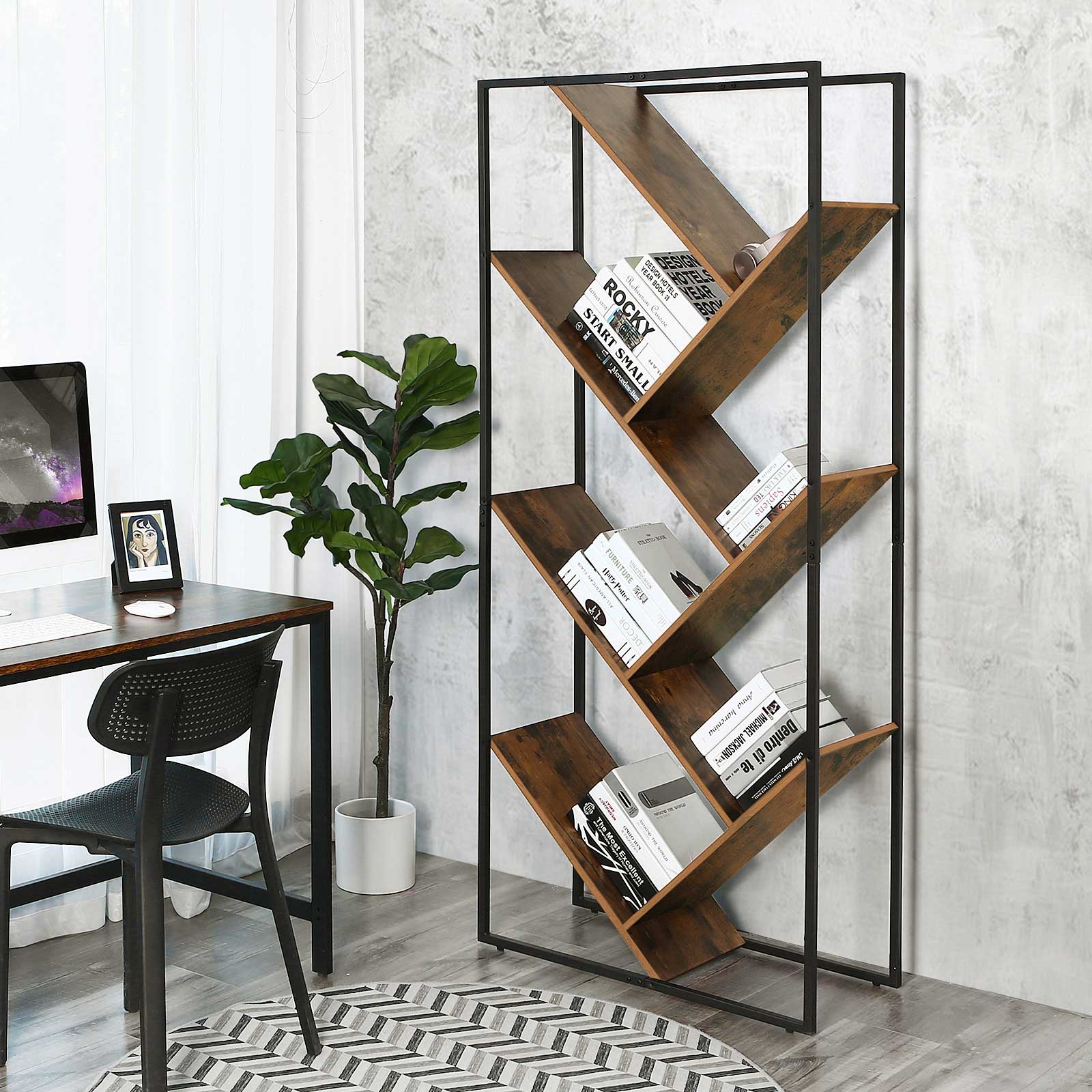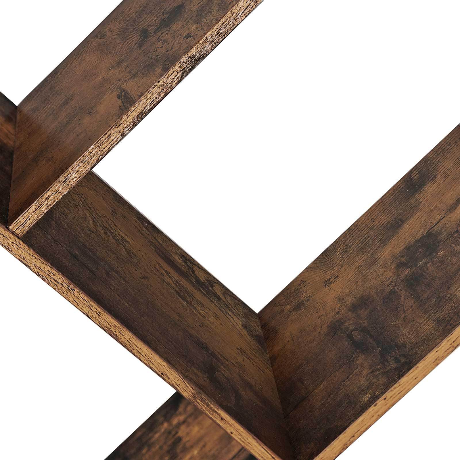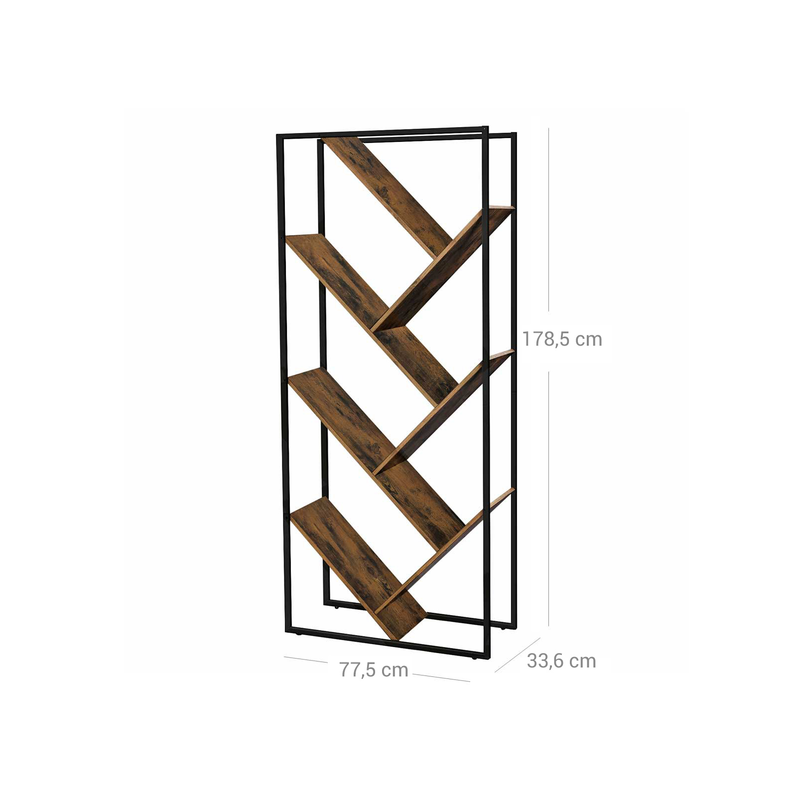 Hieman vintagea täällä, hieman teollista designia siellä Tämän olohuoneen hyllyn tyyliä voidaan kuvata yhdistelmänä rautakehyksestä, jossa on trendikäs teollinen ilme, ja tarkasti työstetyistä vintage-levyistä puumateriaalista. Erityisen vivahteen tuovat myös epätavallisesti järjestetyt hyllytasot. Tuloksena on jännittävä kokonaisuus ja huonekalu, joka on sekä kestävä, näyttävä että toimiva. Kirjakuusi kirjatouhailijoille Jos harmaana sadepäivänä haluat rentoutua sohvalla tai sängyssä hyvän kirjan parissa tai tarvitset toimistossasi aina käden ulottuvilla hyödyllistä ammattikirjallisuutta, tämä poikkeuksellinen kirjahylly on juuri oikea valinta. Lukuisilla vinoilla hyllytasoilla voi säilyttää siististi sekä paksuja teoksia että rakkausromaaneja ja tietosanakirjoja. Puumainen hylly sopii muuten erinomaisesti yhteen muiden VASAGLE-teollisen muotoilun sarjan huonekalujen kanssa! Tuotetiedot: – Väri: vintage – Materiaali: lastulevy, rautakehys – Koko: 76,3 x 33,6 x 178,5 cm (P x L x K) – Paino: 19,4 kg – Maks. kantavuus: Yhteensä 120 kg – Maks. kantavuus hyllytasoa kohti: 20 kg Toimitus sisältää: – 1 x kirjahylly – 1 x säilytyslaatikko tarvikkeilla (sisältää asennustyökalut) – 1 x ohjeet (DE, EN, FR, ES, IT) VASAGLE-ohjeet: – Älä altista tuotetta suoralle auringonvalolle.