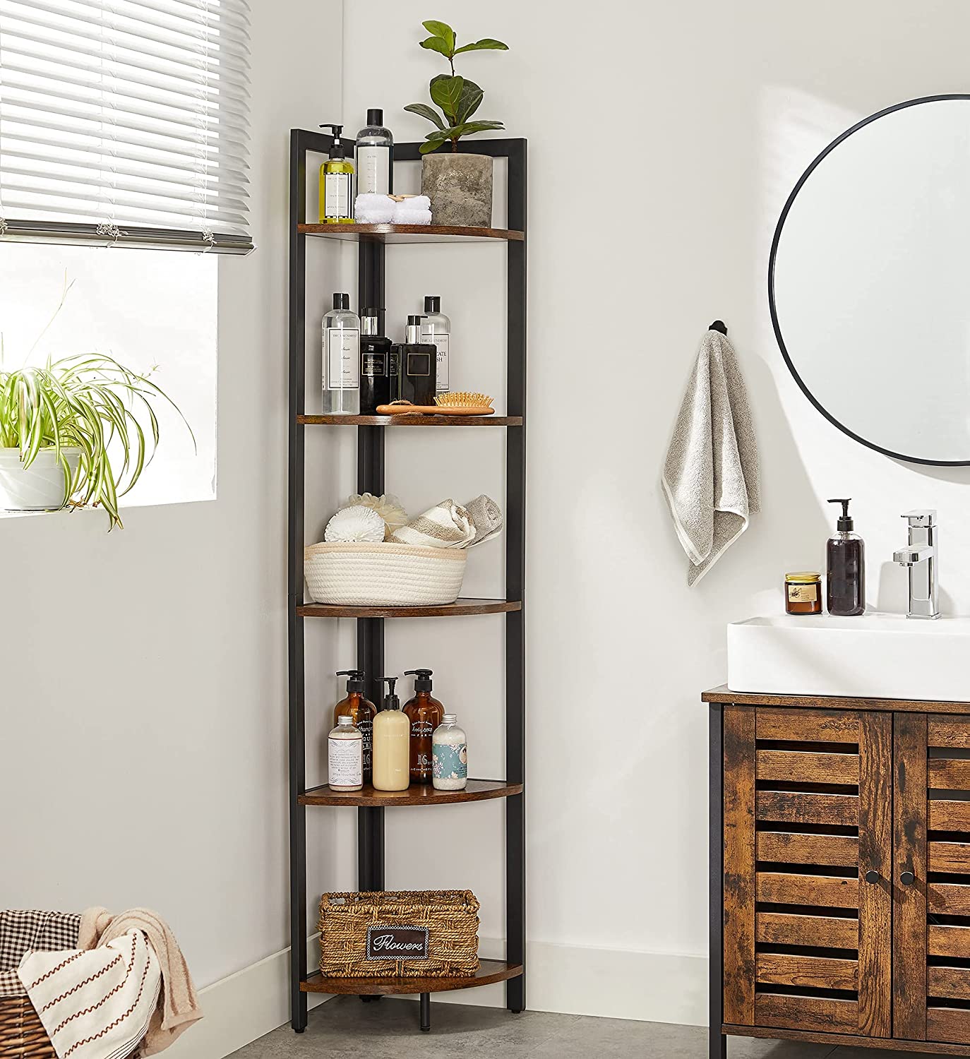 Tuotetiedot: – Väri: vintage-ruskea-musta – Materiaali: lastulevy, teräs – Koko: 30 x 30 x 150 cm (P x L x K) – Paino: 6,8 kg – Maks. staattinen kantavuus hyllytasoa kohti: 5 kg Toimitus sisältää:- 1 x kulmahylly – 1 x lisävarustepaketti – 2 x kaatumissuoja – 1 x ohjeet VASAGLE Huomautukset: – Kiinnitä tämä tuote seinään mukana toimitetulla kaatumissuojalla. – Turvallisuussyistä lapset eivät saa kiivetä tuotteelle tai leikkiä sillä.