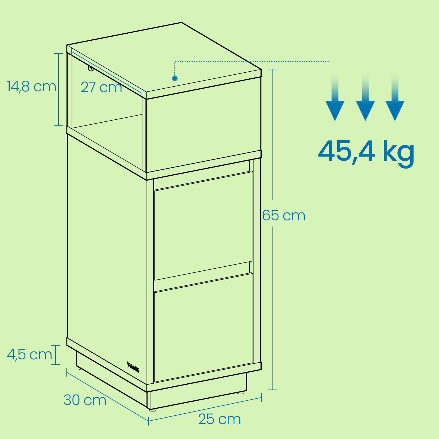 – Laatikosta maks. staattinen kantavuus: 4,5 kg