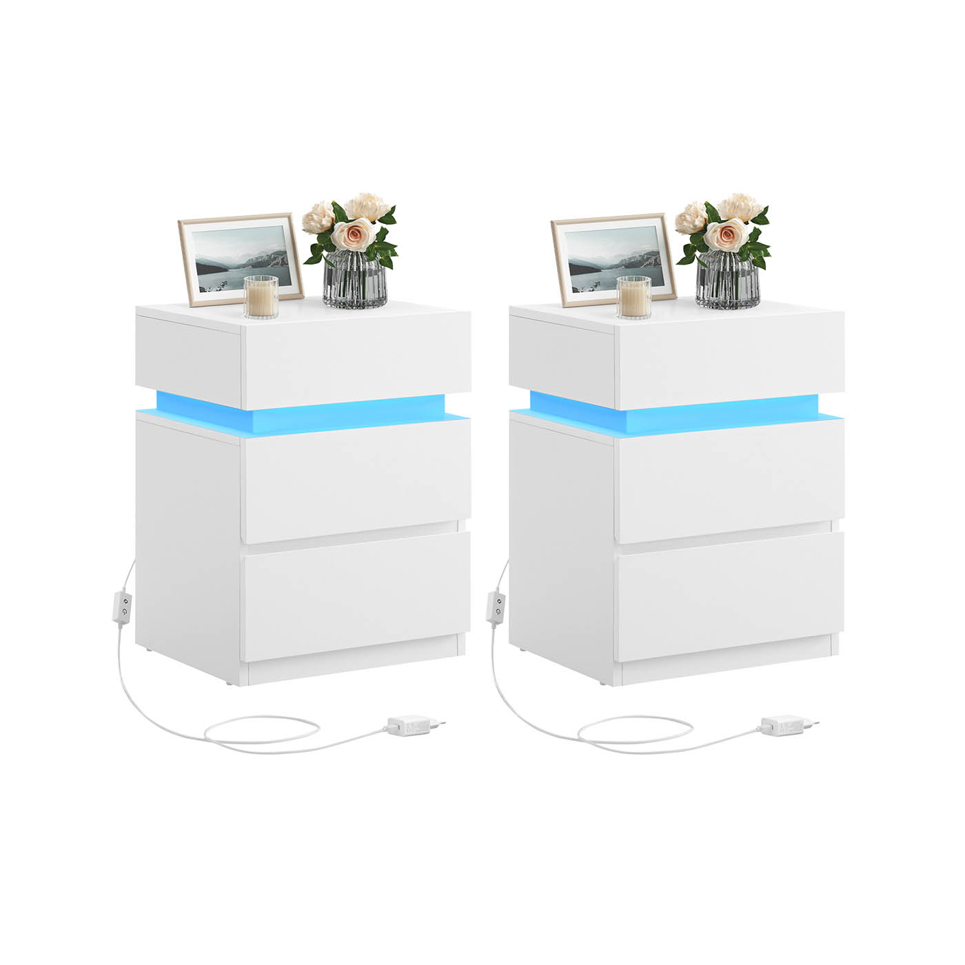 VASAGLE Yöpöytä LED-valaistuksella, 2 kpl, sivupöytä, säädettävät värit, sohvapöytä 3 laatikkoa, yöpöytä makuuhuoneeseen, moderni, 35 x 40 x 55 cm, musta puuviilulla LET0830B01