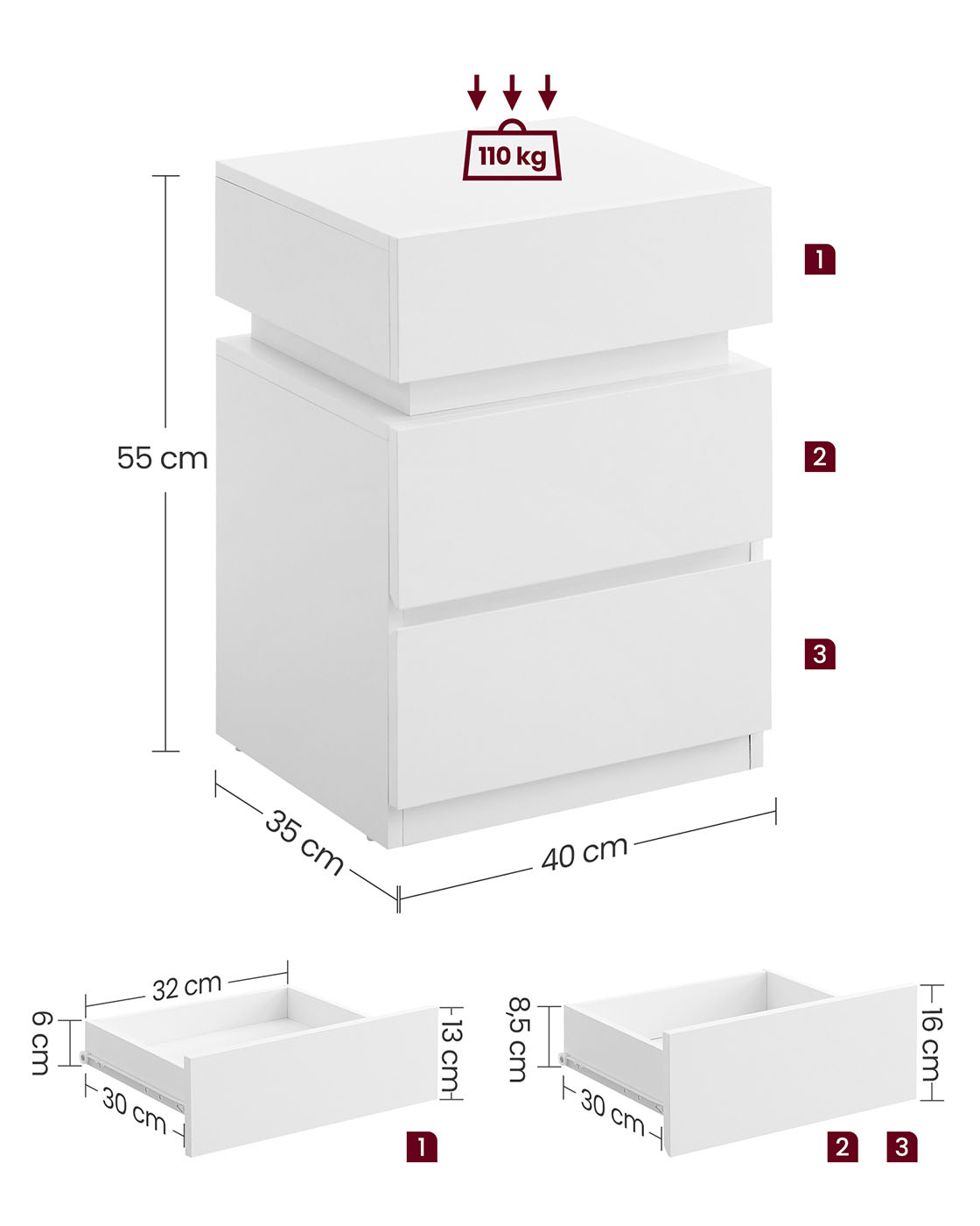 Yöpöydän koko: 35 x 40 x 55 cmLET799T10 (S x L x K)