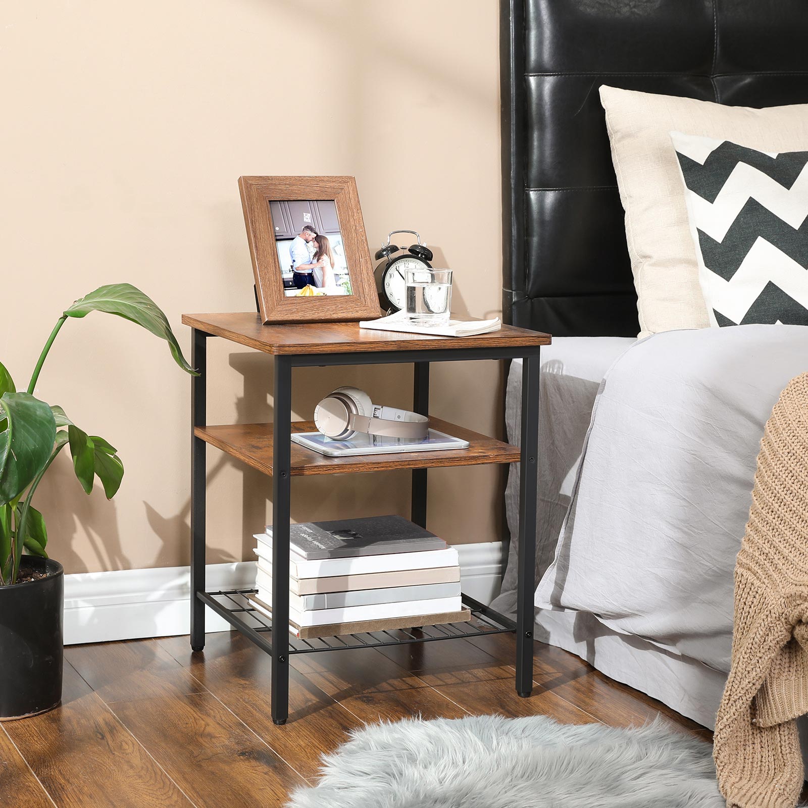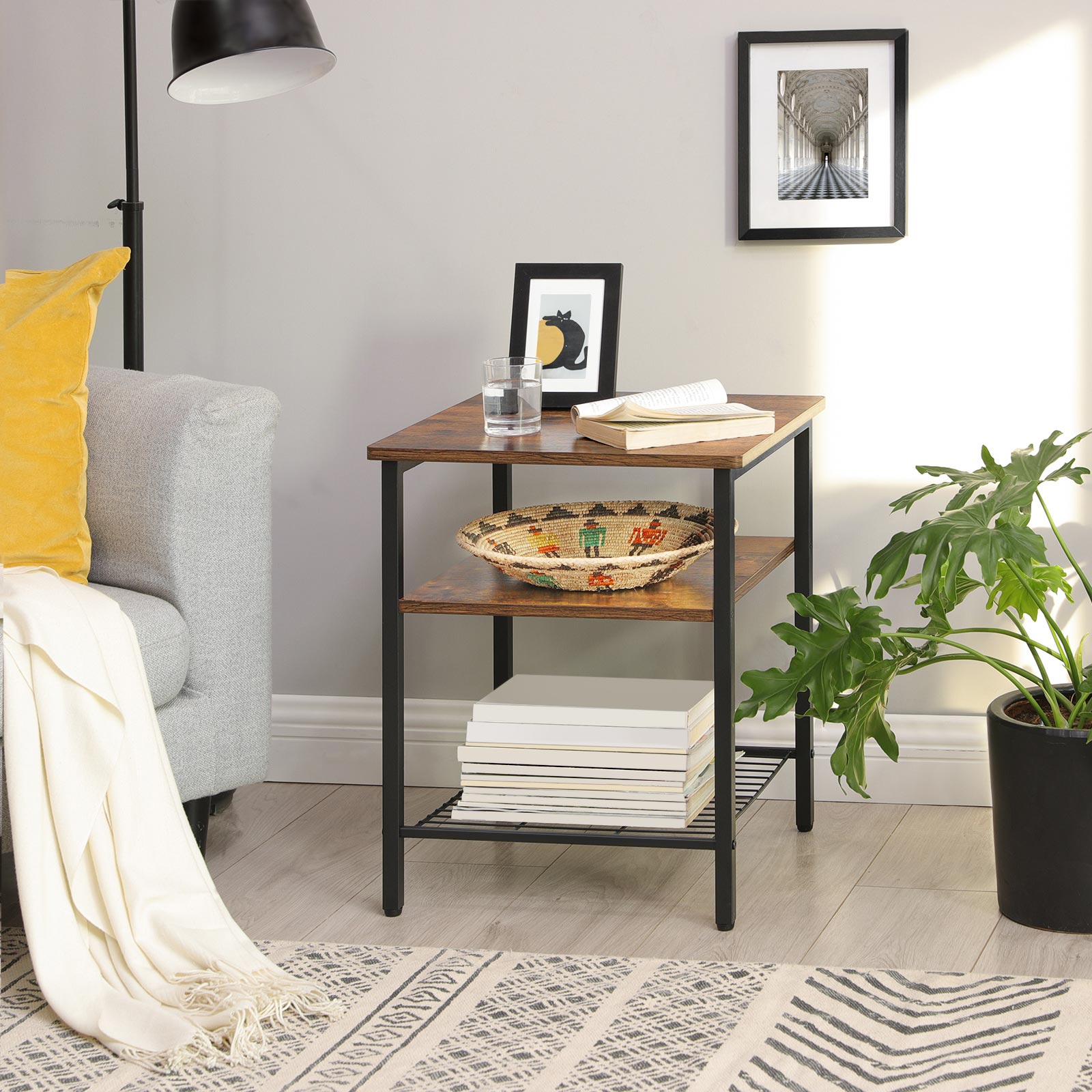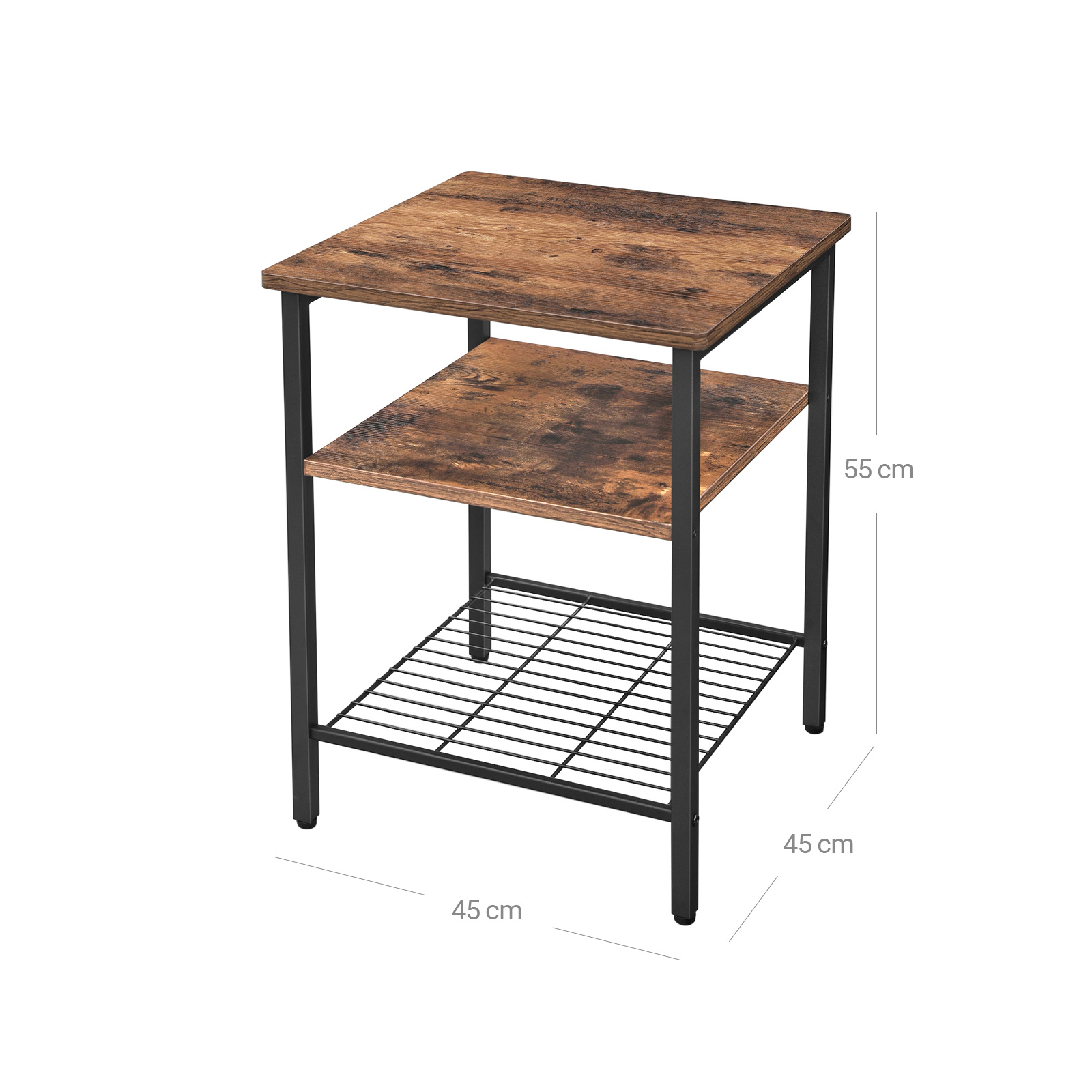 Tuotetiedot: – Väri: vintage/tummanruskea – Materiaali: lastulevy, rauta – Koko: 45 x 45 x 55 cm (P x L x K) – Paino: 6,4 kg – Pinnan maks. staattinen kantavuus: 20 kg – Keskimmäisen hyllyn maks. staattinen kantavuus: 10 kg – Maks. Hyllyn staattinen kantavuus: 10 kgToimitus sisältää:- 1 x yöpöytä- 1 x lisävarustepussi- 1 x ohjeet (DE, EN, ES, FR, IT)VASAGLE Huomautukset:- Sijoita tuote siten, että se ei ole alttiina lämmönlähteille, suoralle auringonvalolle tai kosteudelle. – Pidä tuote poissa terävien ja terävien esineiden sekä syövyttävien aineiden läheisyydestä. – Lapset eivät saa kiivetä tuotteen päälle.
