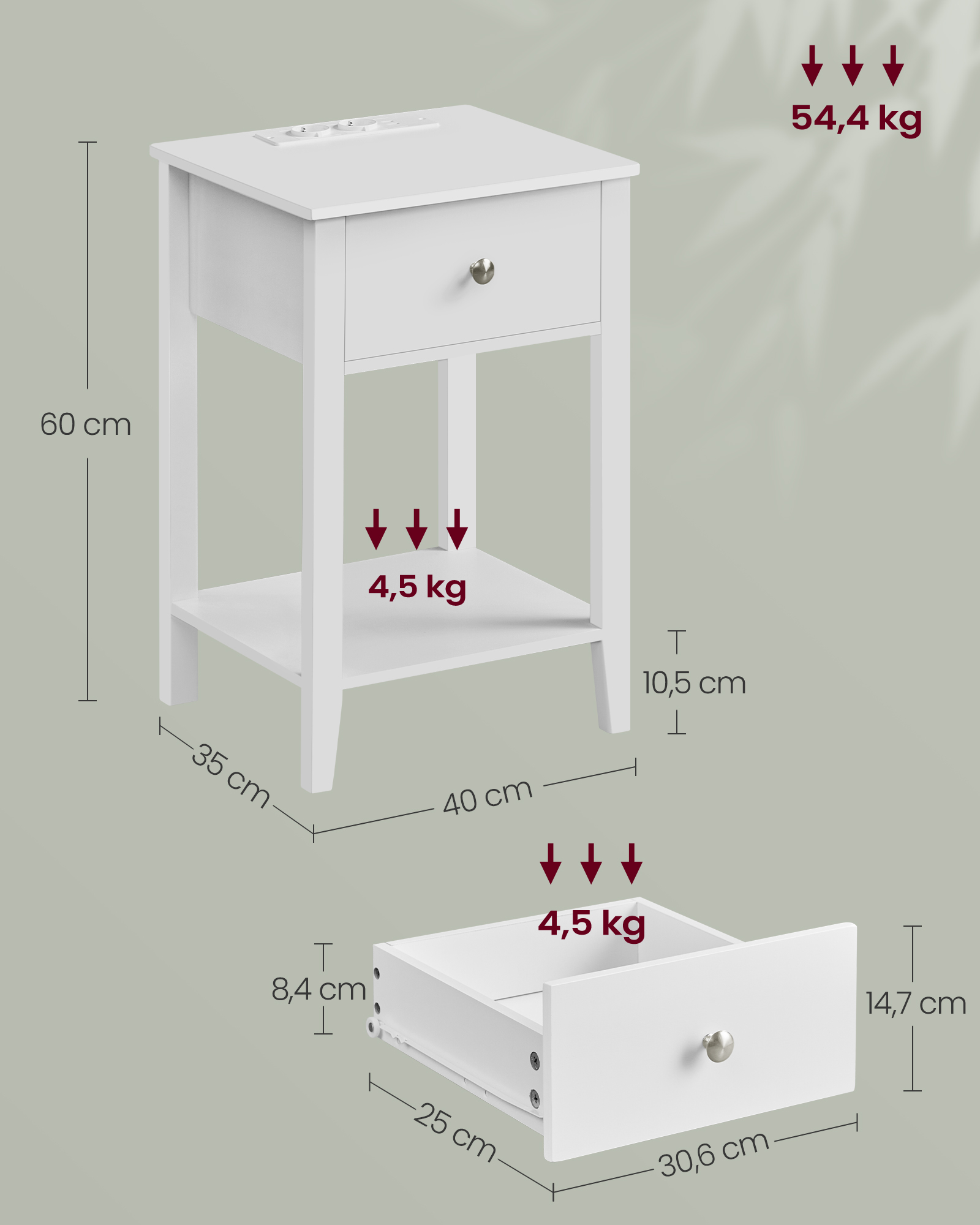 Laatikkon enimmäiskantavuus: 4,5 kg