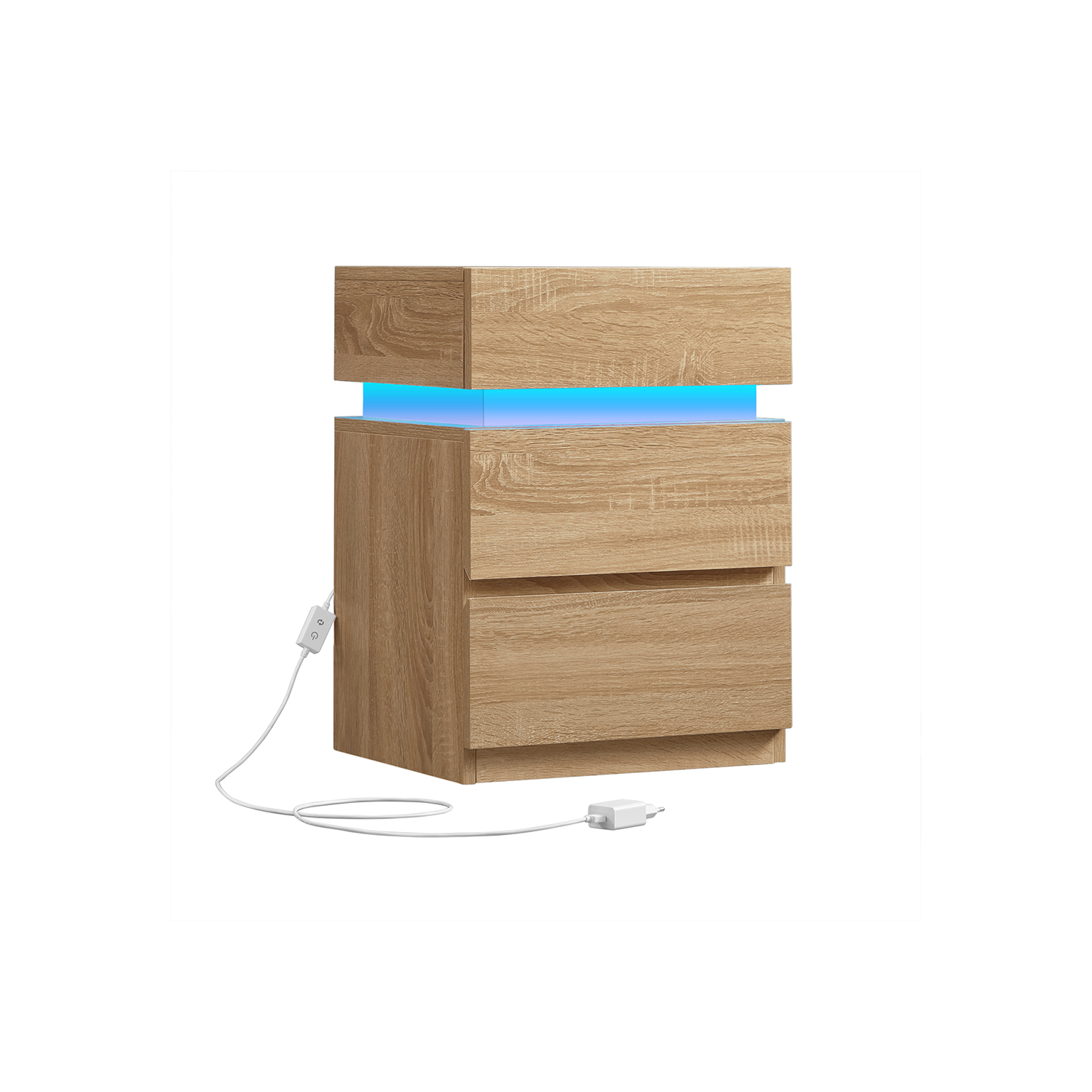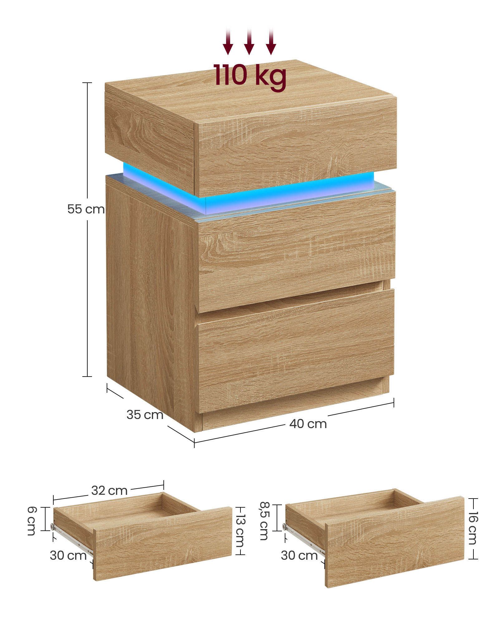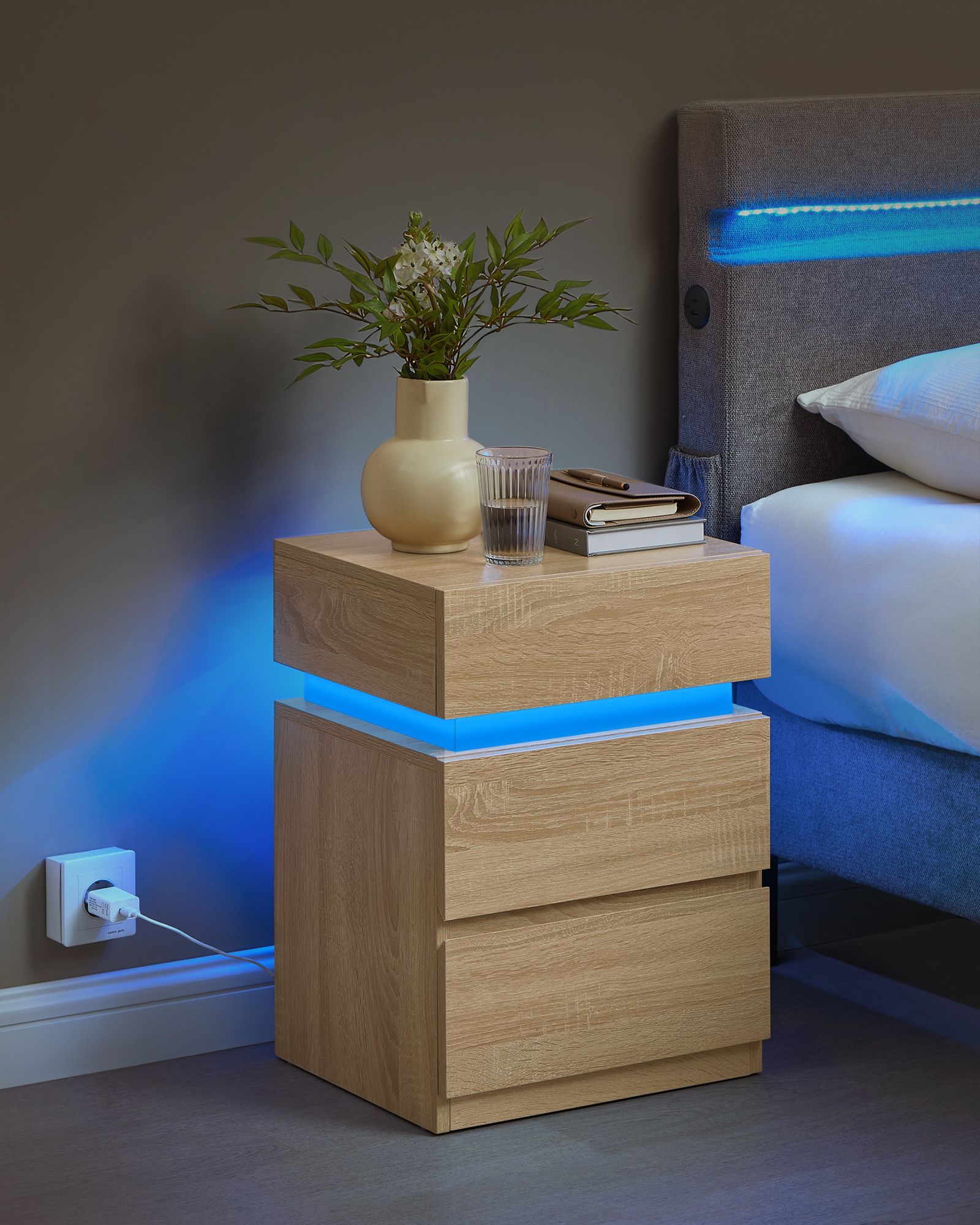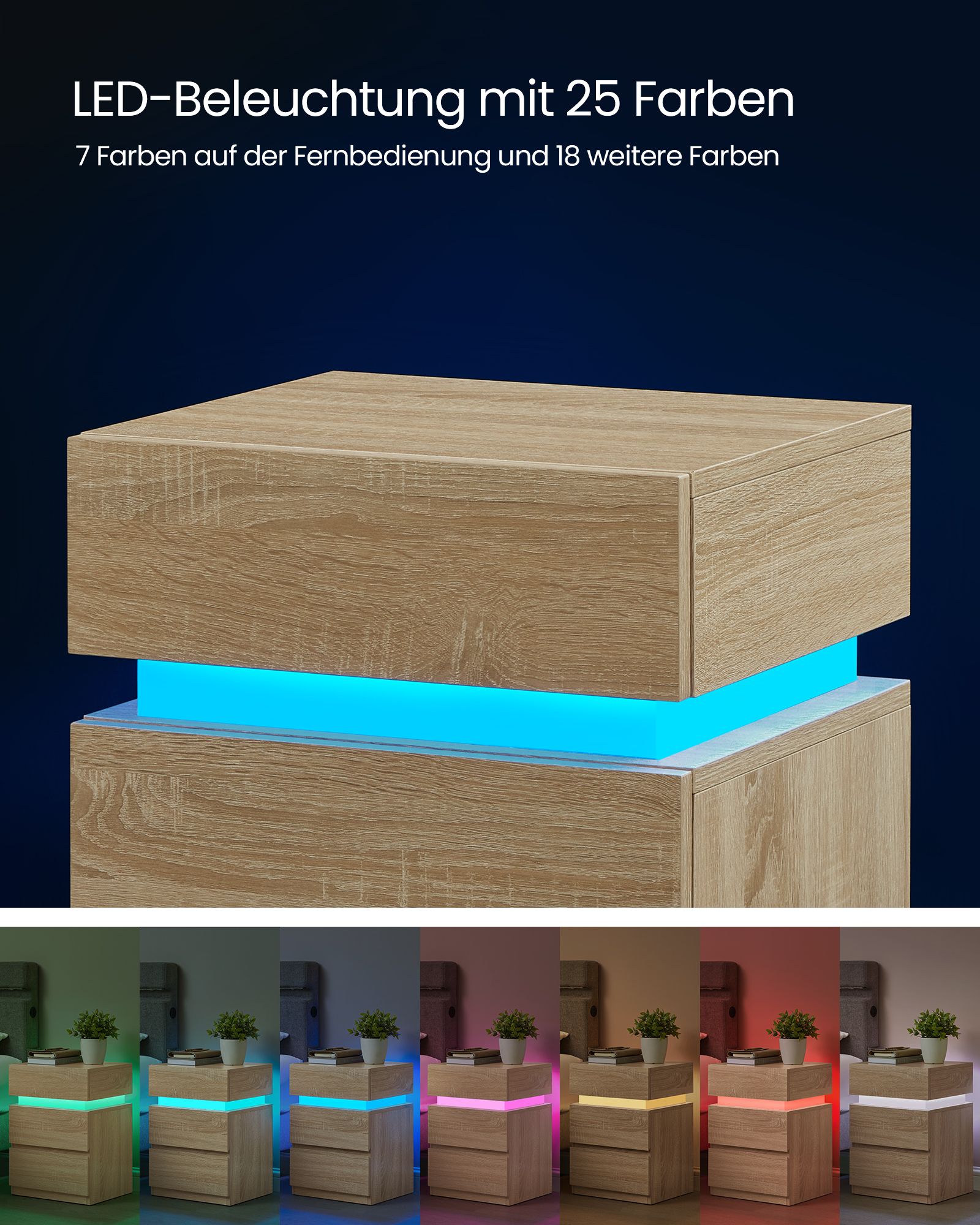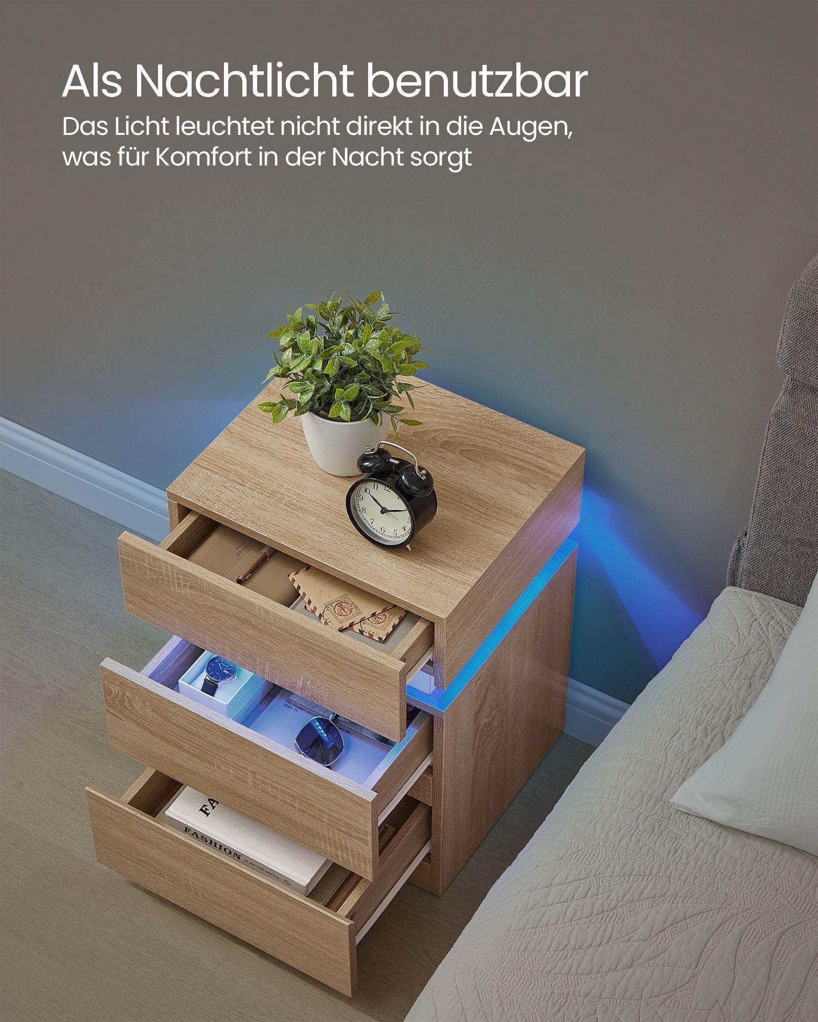 VASAGLE yöpöytä LED-valaistuksella, sivupöytä, säädettävät värit, sohvapöytä 3 laatikolla, yöpöytä makuuhuoneeseen, olohuoneeseen, moderni, valkoinen LET630T10