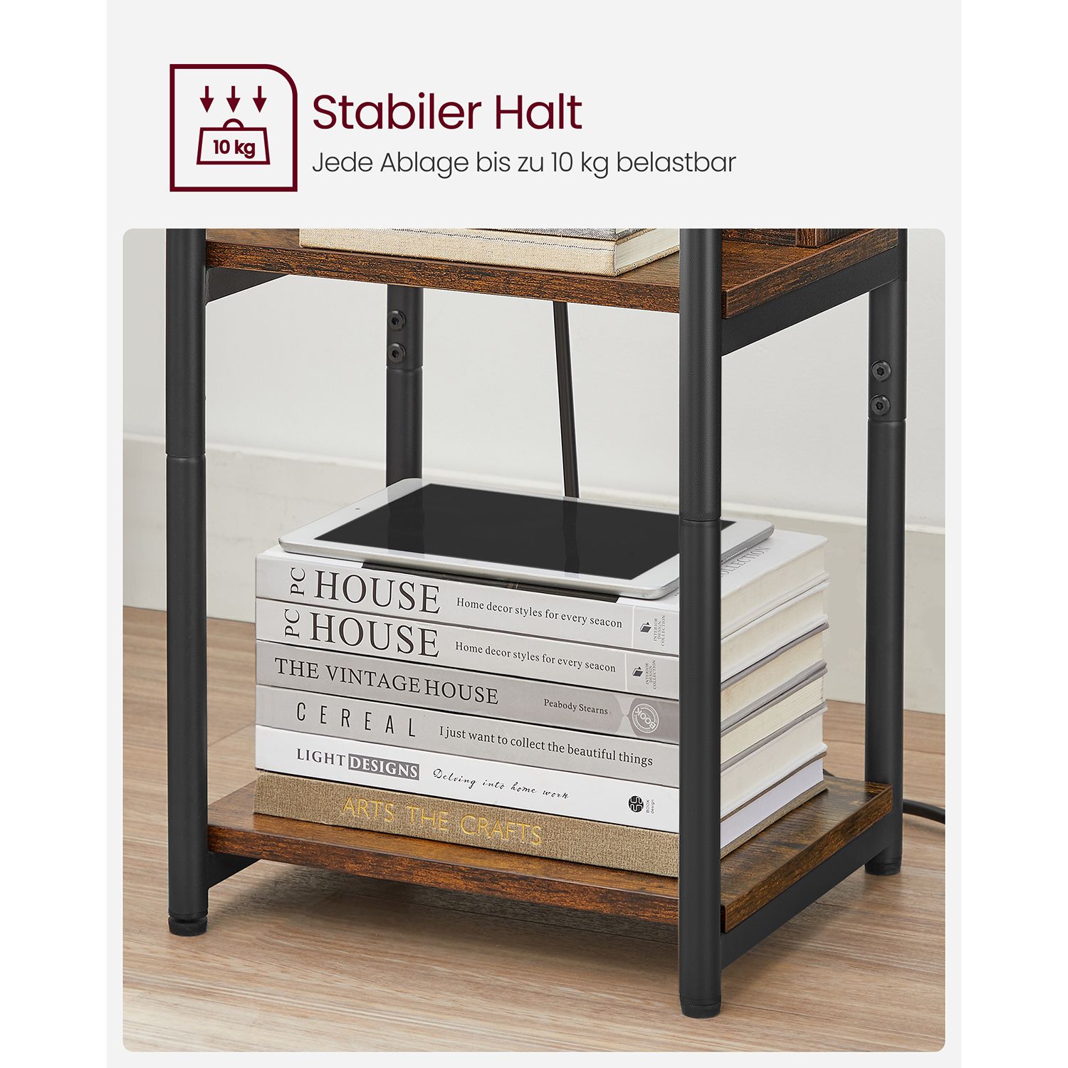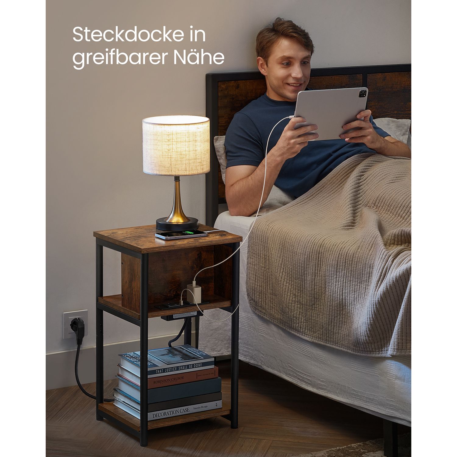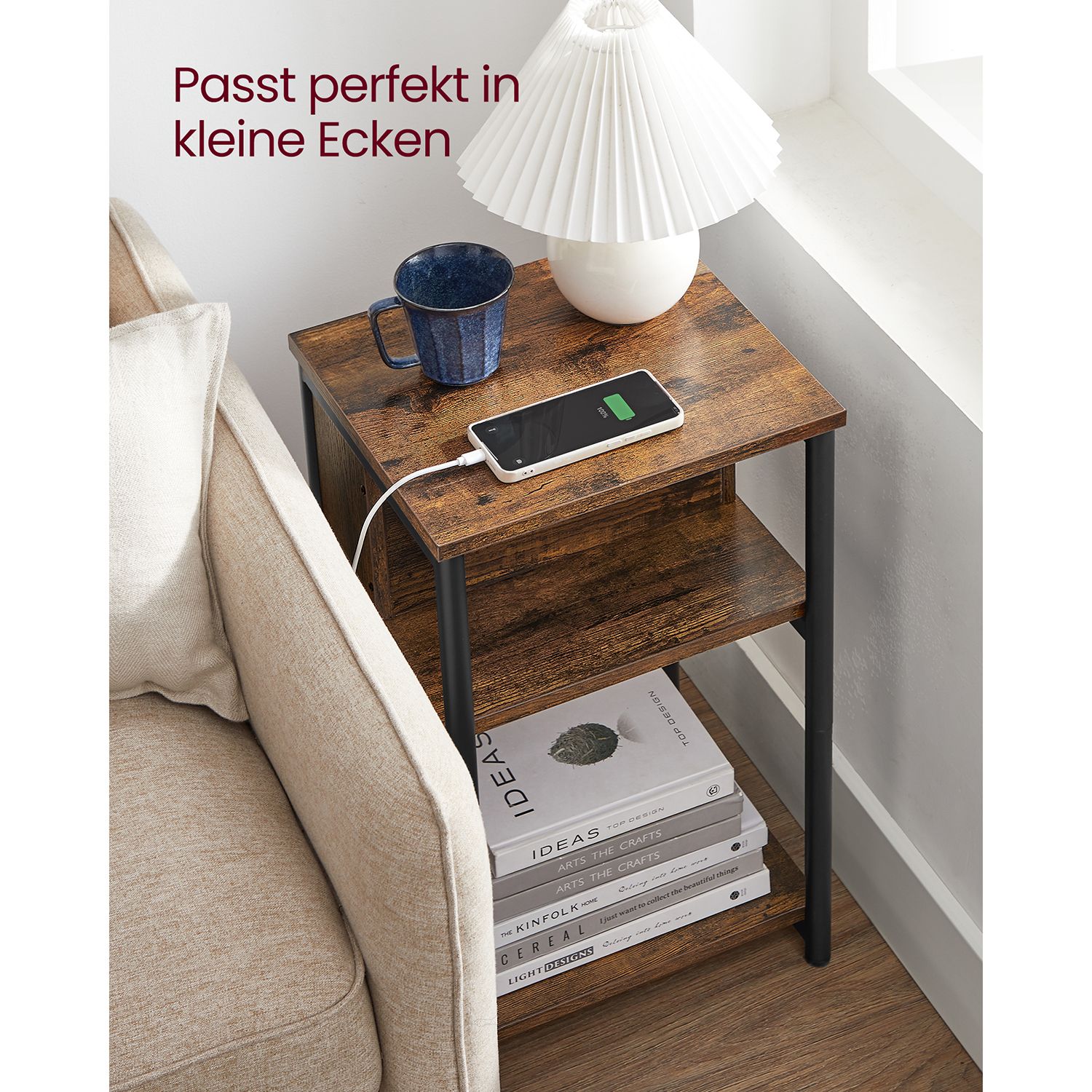 VASAGLE sivupöytä, yöpöytä pistorasialla, kapea, 2 AC-liitäntää, 2 USB-liitäntää, 30 x 34 x 58 cm, olohuoneeseen, makuuhuoneeseen, vintage-ruskea-musta LET375B01