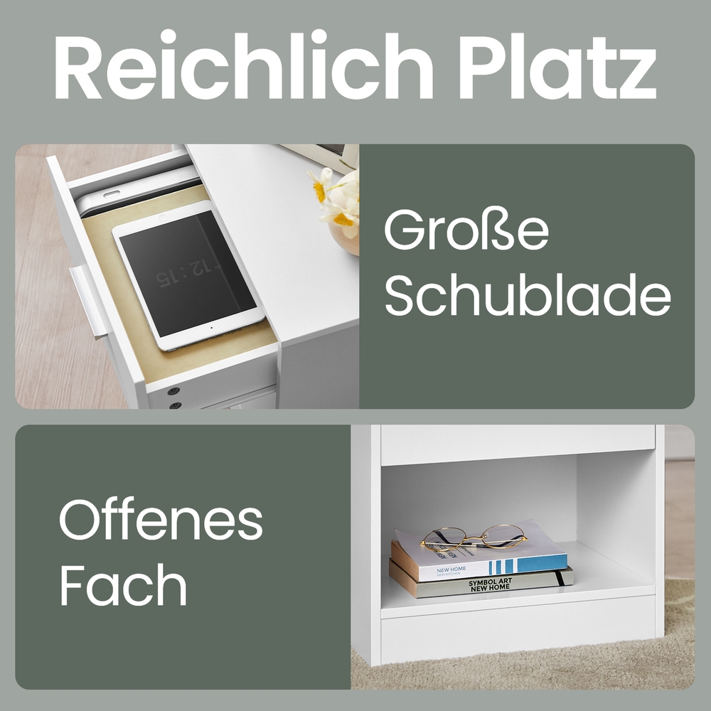 Yöpöytä, sivupöytä, laatikolla, kahvalla, avoimella lokerolla, sohvapöytä, makuuhuoneeseen, olohuoneeseen, klassinen valkoinen