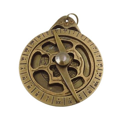 Astrolabe Key Ring – KR105 Brass Astrolabe Key Ring is a great gift idea for the astronomer, space lover and sailing fan. Astrolabes were used by sailors in astronavigation and by great scientists to determine ecliptic and equatorial coordinates. It was possible to make mathematical calculations on them, determine the time of sunrise and sunset, the length of the day, or determine the astronomical altitude of the sun and stars. Product information: Material: brass Color: brassDimensions: dia 5,5cm, total length 7,5cm Astrolabe keychain will work well as: Gift for astronomerGift for a space loverGadget for a sailing fan