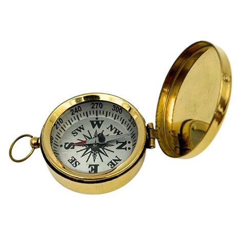 Brass Compas with Cover | NC1591A practical compass with a lockable cover to protect the dial. The elegant golden colors together with the white dial make it perfect as a decorative element for the office or living room. Material: BrassColor: Gold cover, White dial Dimensions:5 x 4.5 x 1.25 cm