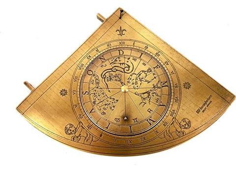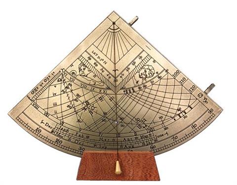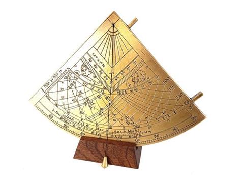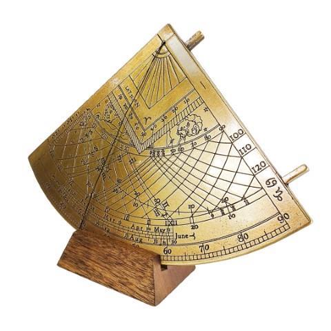 Gunter brass solar quadrant – H39 Quadrant is a historical instrument for determining the position of stars. It had the shape of a quarter of a circle with an angular scale applied. Known as early as ancient Greece, it was still in use in the 17th century. It is a perfect gift for a sailor or astronomy enthusiast. Reproduction made on the basis of the Gunter quadrant of the 18th century, which is displayed in the Greenwich Maritime Museum. Product information: Dimensions: height 17cm x width 15cm x depth 0.7cm.Weight: 0.85kg. Back of the nocturnal clock.Gift packaging: beautiful gift box with molding.Great gift for astronomer, gift for astronomy lover.