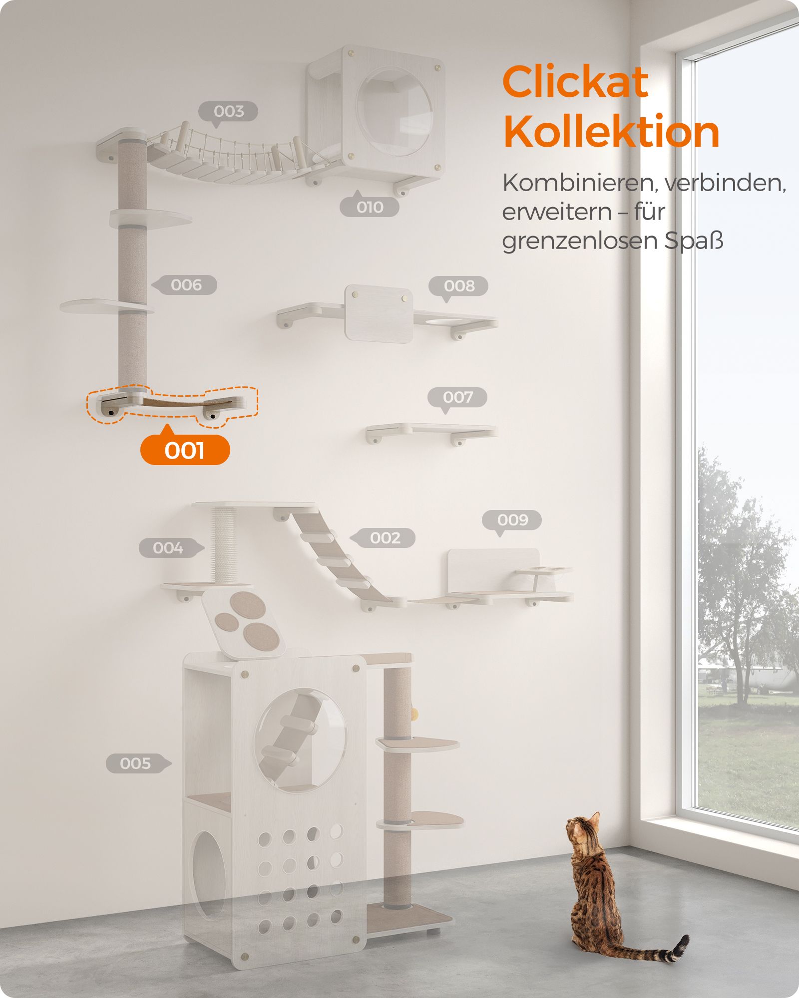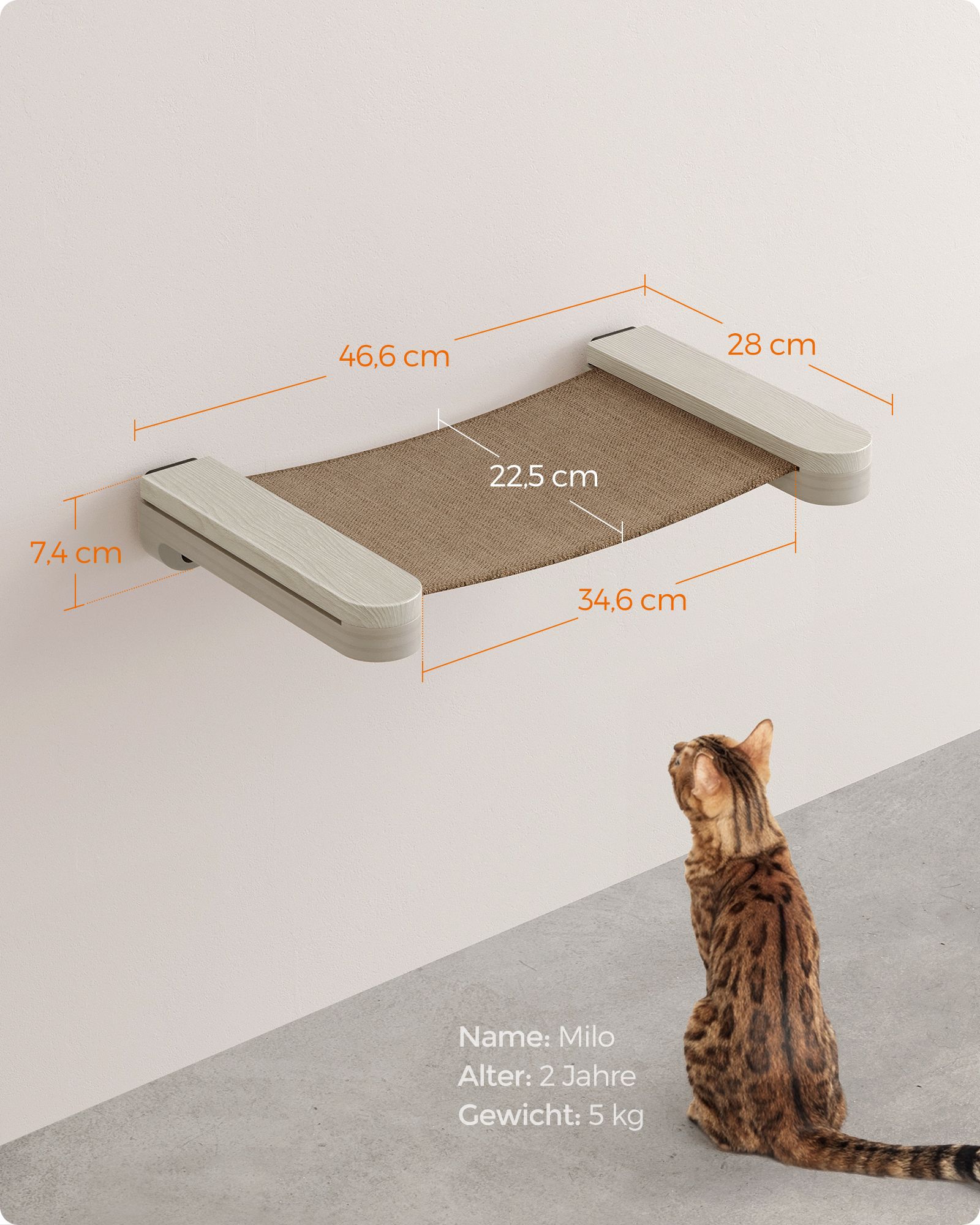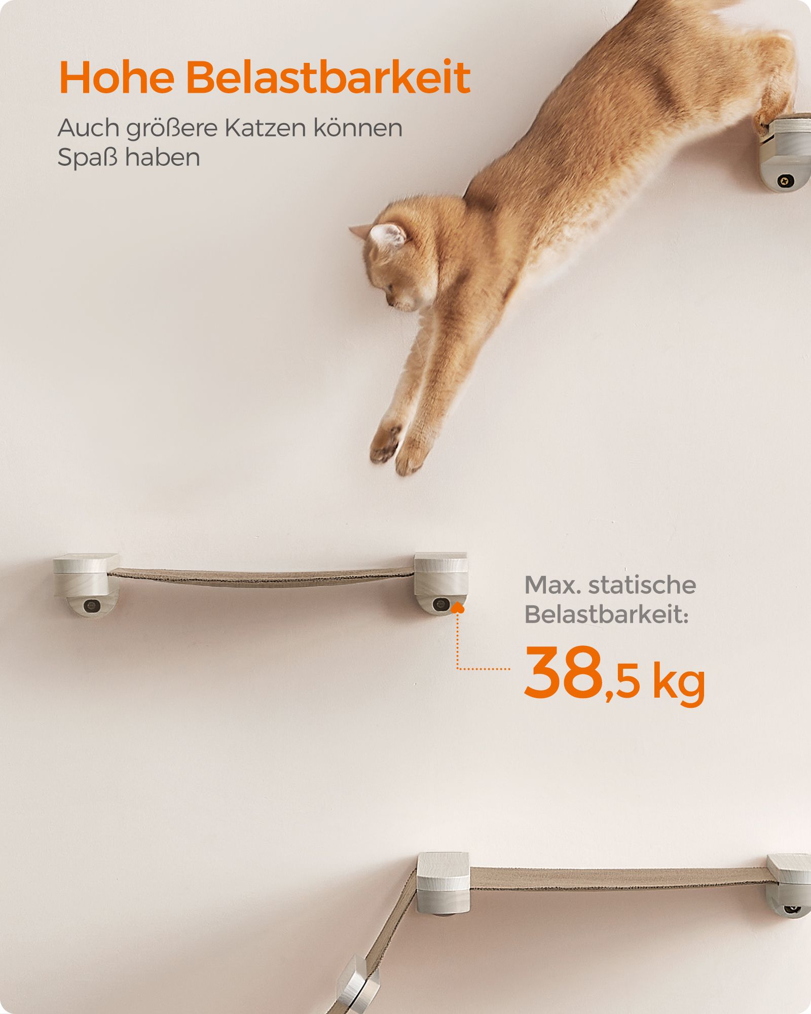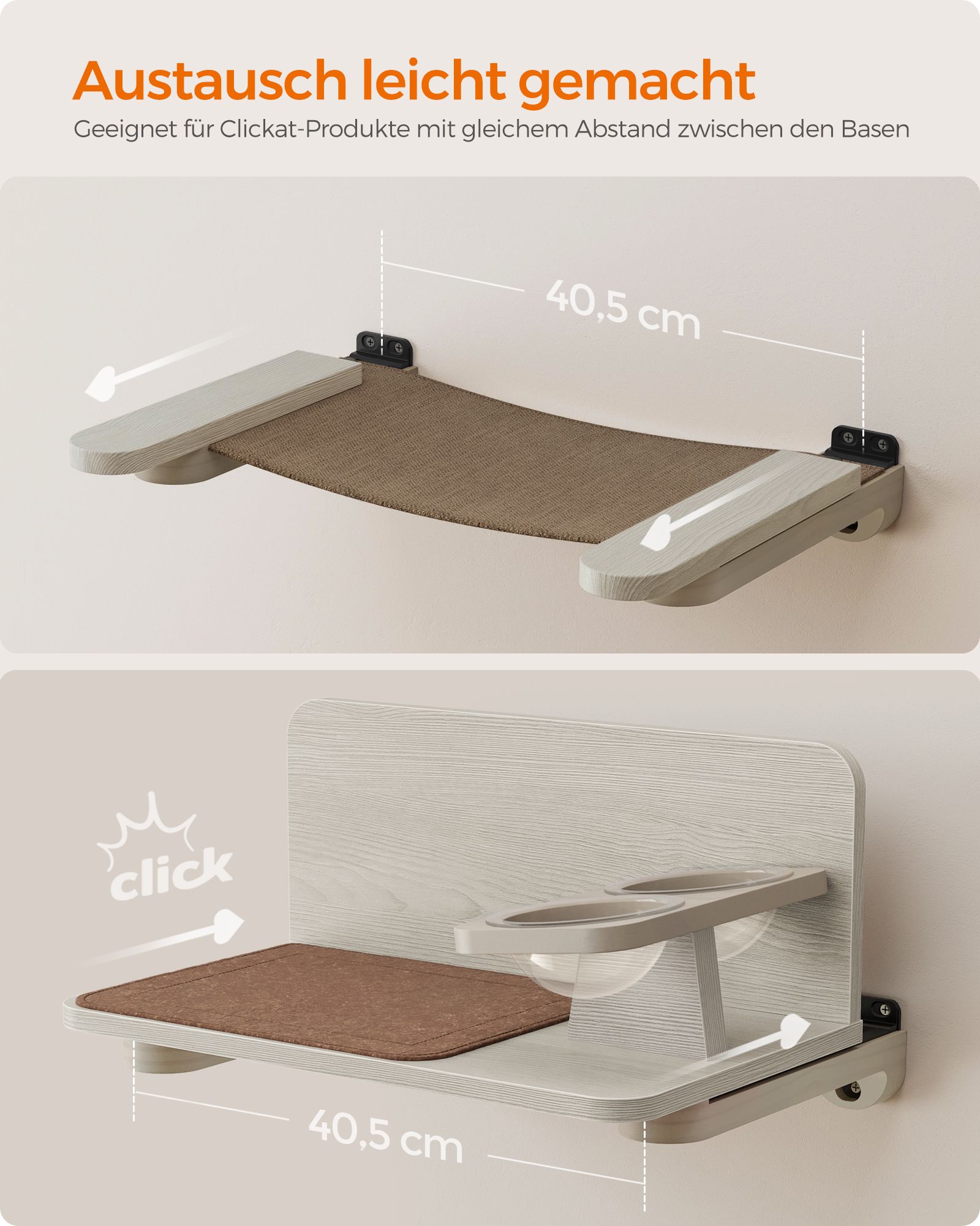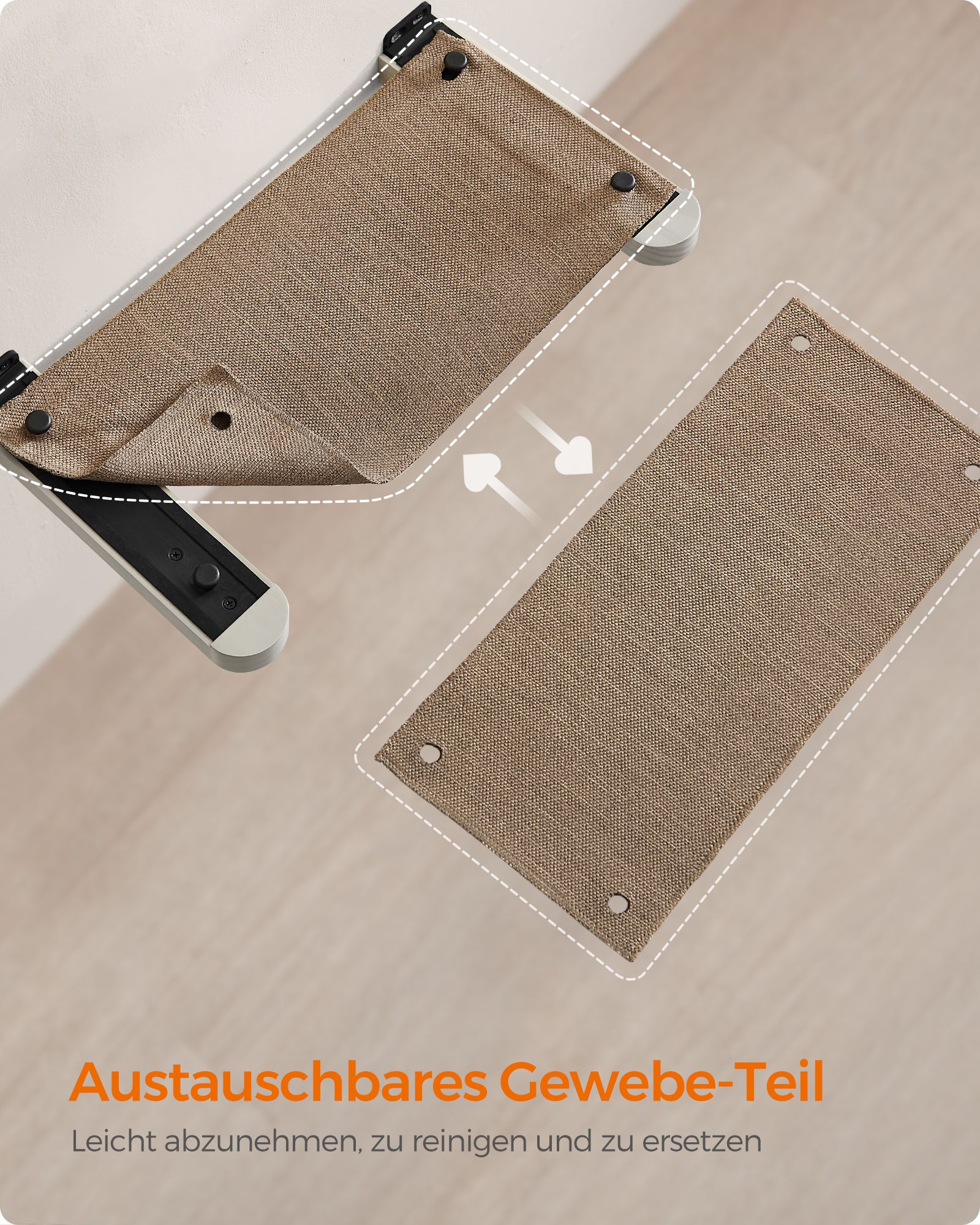 Feandrea Clickat Cat Hammock, Wall-Mounted Cat Bed, Cat Climbing Wall, Washable Fabric Cover, Space-Saving, Easy to Assemble and Disassemble, Oatmeal Brown-Coffee Brown PCK001T66