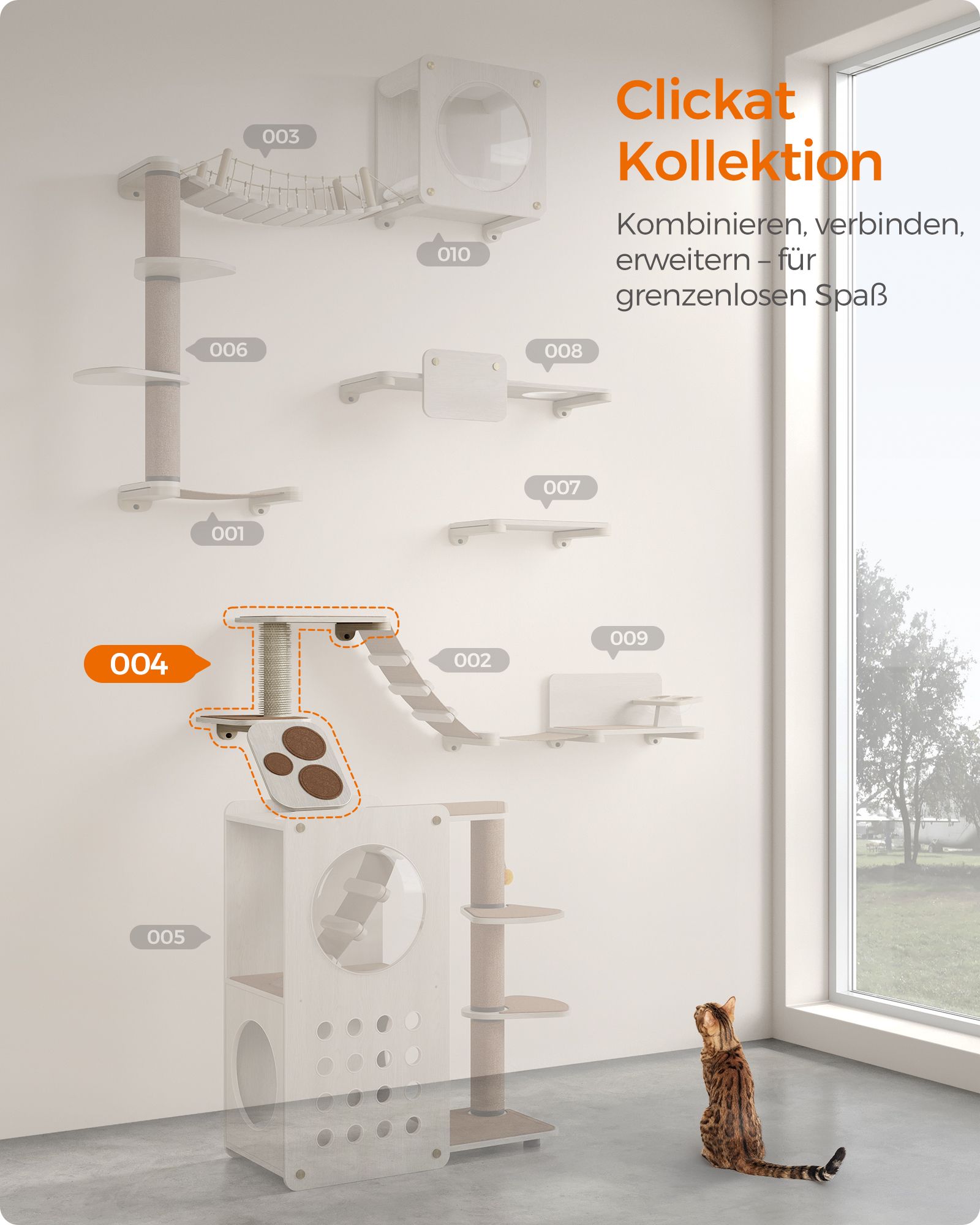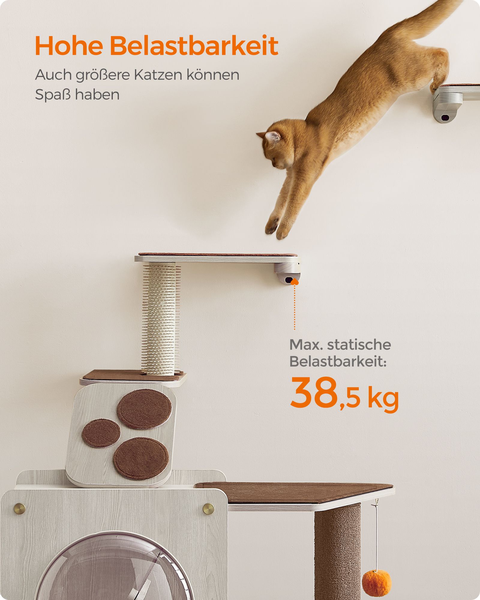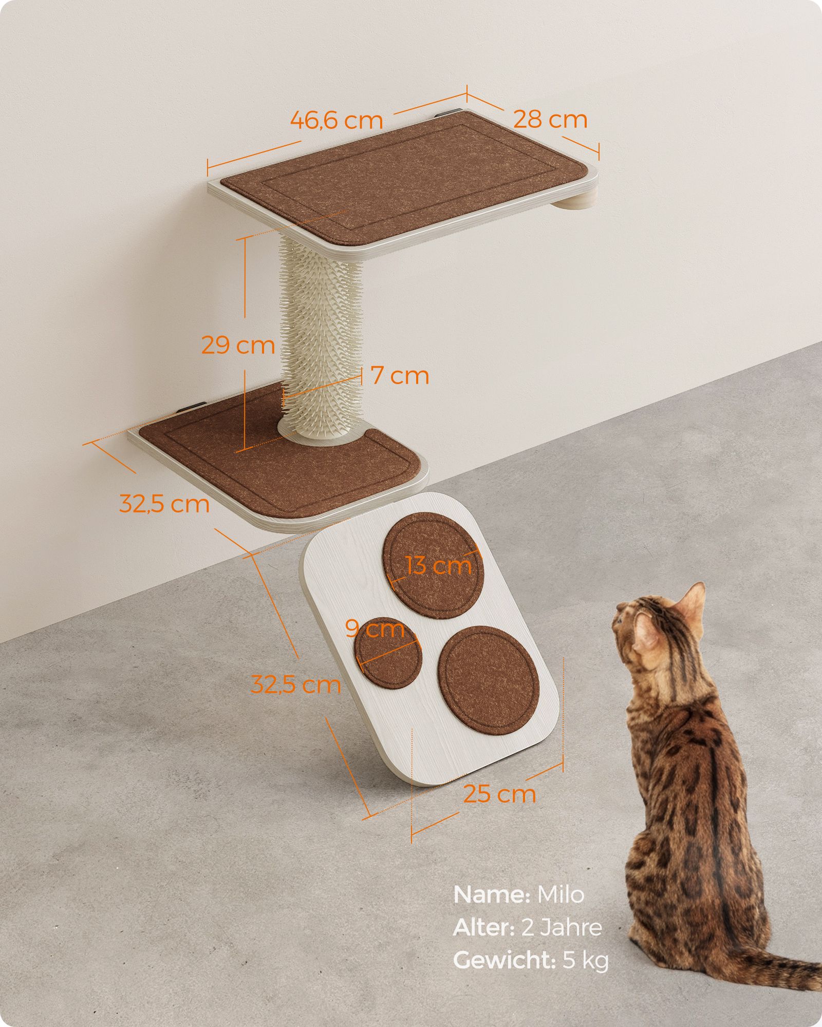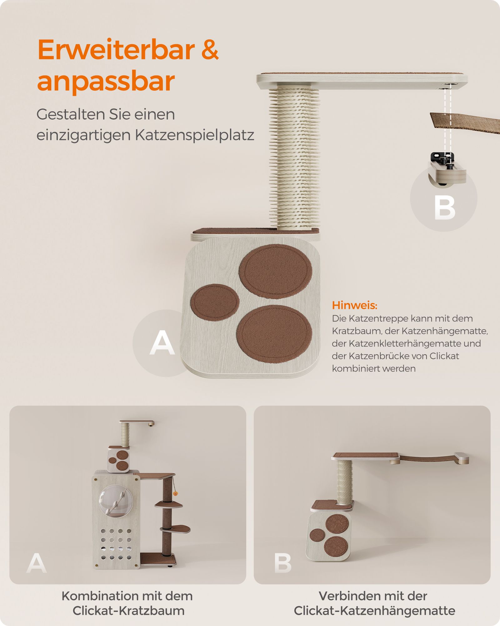 Feandrea Clickat cat stairs, cat wall board, cat climbing wall, cat ladder, cat brush, replaceable washable felt pads, easy to assemble and disassemble, oatmeal brown-coffee brown PCK004T66
