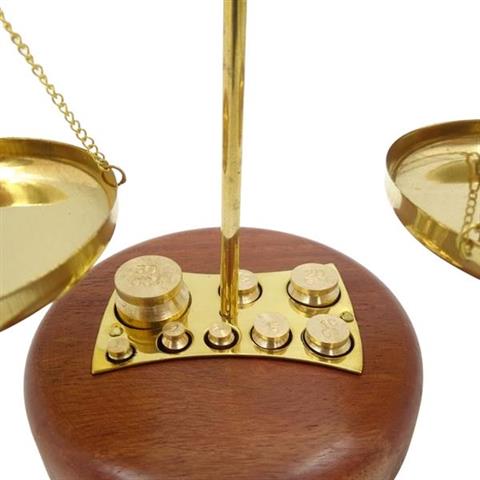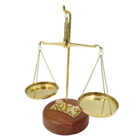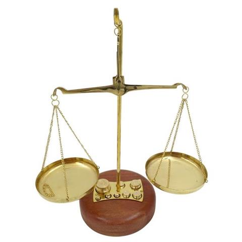 Decorative Bar Scale – WSB8 Decorative Bar Scale will make a charming addition to a vintage style room. It will suit a pharmacy or a stylish, intimate store. It will be a nice gift for a pharmacist and a symbolic gift for a lawyer. Scales are one of the attributes of Themis, the Greek goddess of law and legality. It symbolizes justice, prudence and balance. The scale is made of brass an sits on a wooden base. The set also includes 8 weights. Bar scale specifications: Material: brassStand: wooden Includes 8 weights: 1 g2 g x 25 g10 g x 220 g50 g Decorative Bar Scales works well as: Pharmacy decorationLawyer's office decorationRustic kitchen decorationGift for a pharmacistGift for a lawyerGift for a judge The scale is not certified for professional use. It is a decorative item.