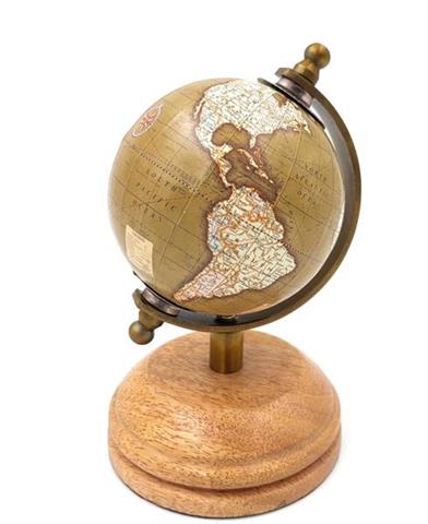 Decorative globe GLB-2098 Decorative globe in a retro-vintage style will enrich a room with an atmosphere of travel and great discoveries. Globe can help with planning the next escapades. It is great as a gift for a travel fan, history enthusiast, and geographer. Globe in shades of brown and beige, placed on a wooden base, will look good on a desk in a colonial, English, or retro-style office. Product Information: Dimensions: Height 15cm, base diameter 9cm, globe diameter 7,5cmMaterial: plastic, wood, metalColour: shades of brown and beigeBase: wooden