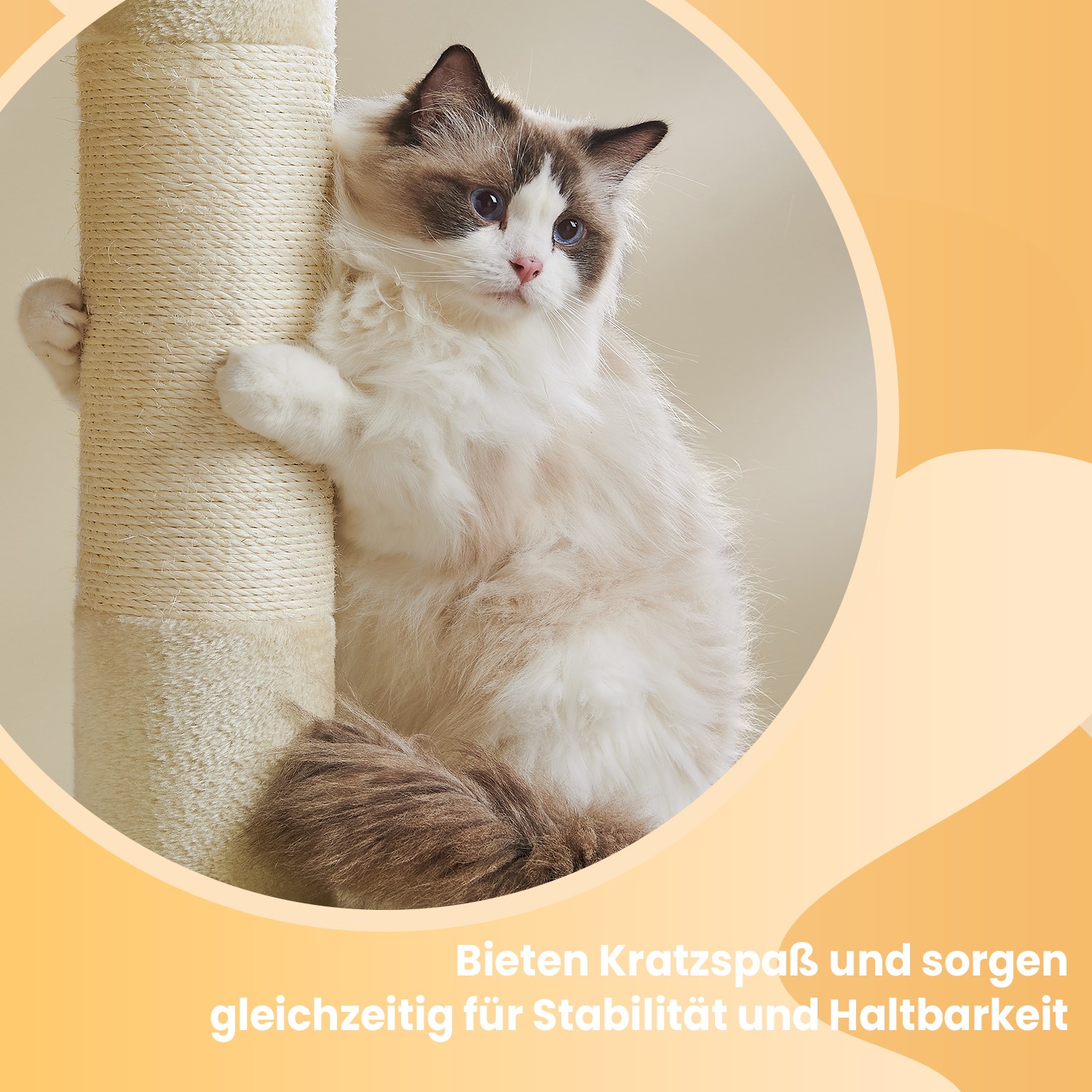 Feandrea scratching post, cat tree with large platform and 2 plush caves, playhouse, climbing tree for cats, light gray PCT61W
