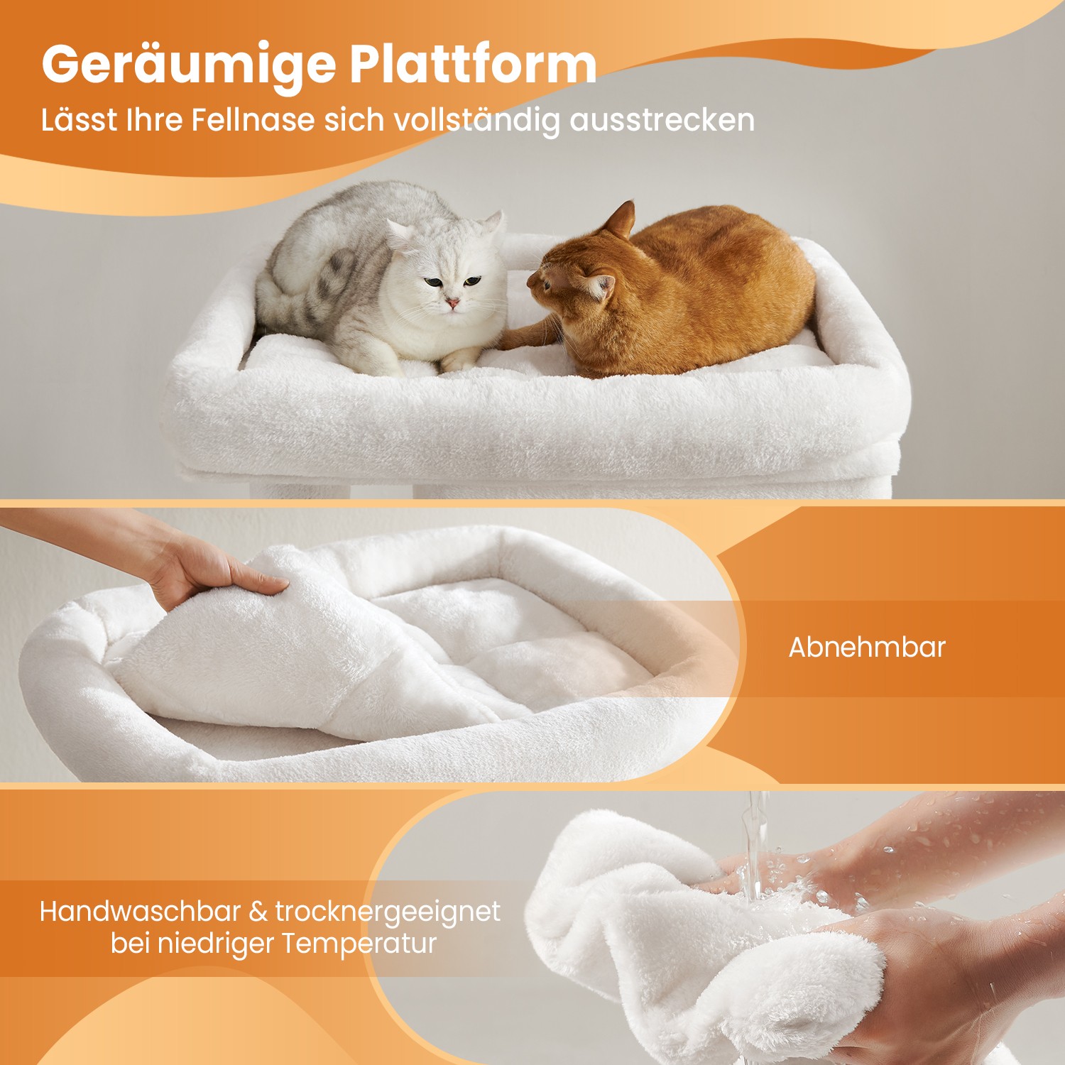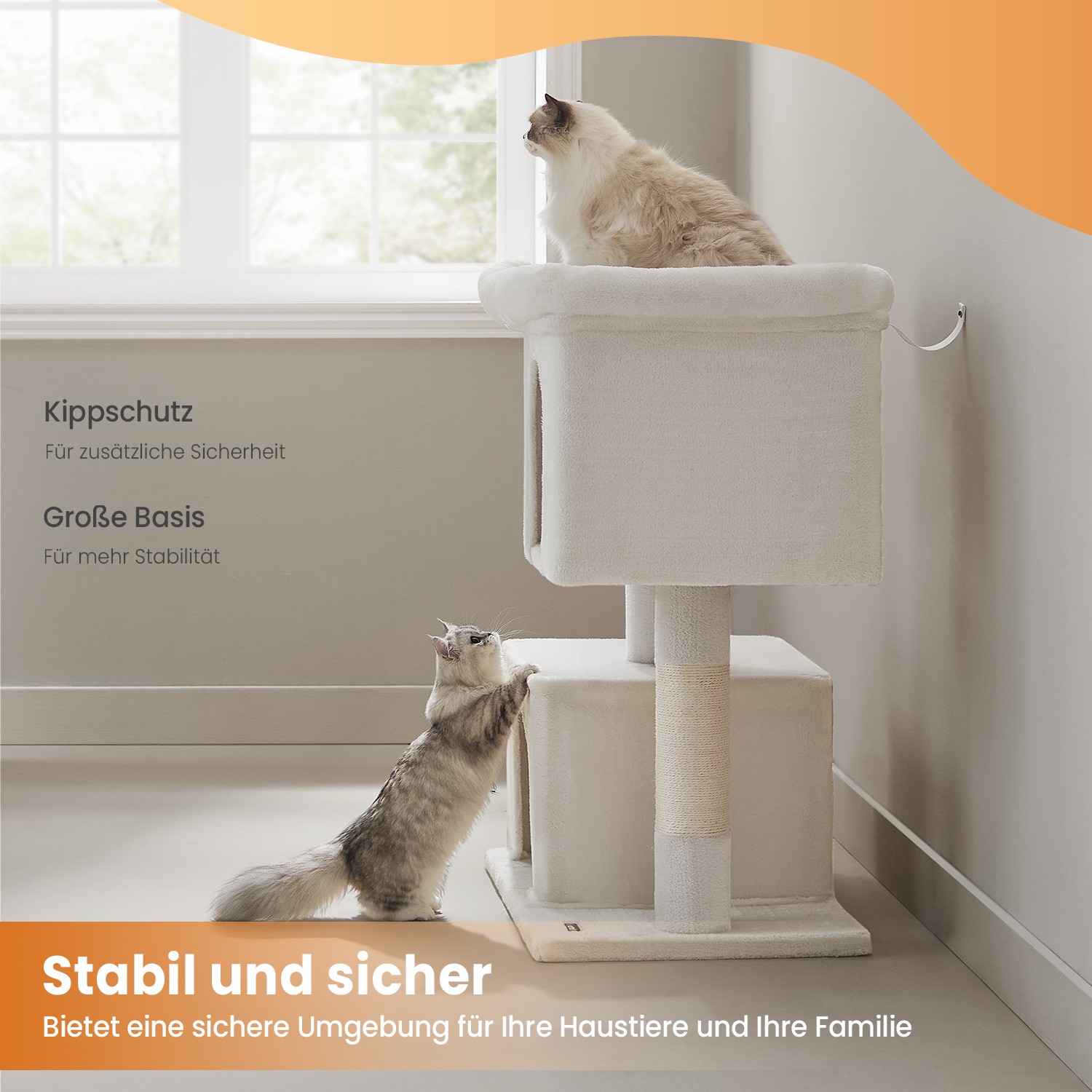 Feandrea scratching post, cat tree with large platform and 2 plush caves, playhouse, climbing tree for cats, light gray PCT61W