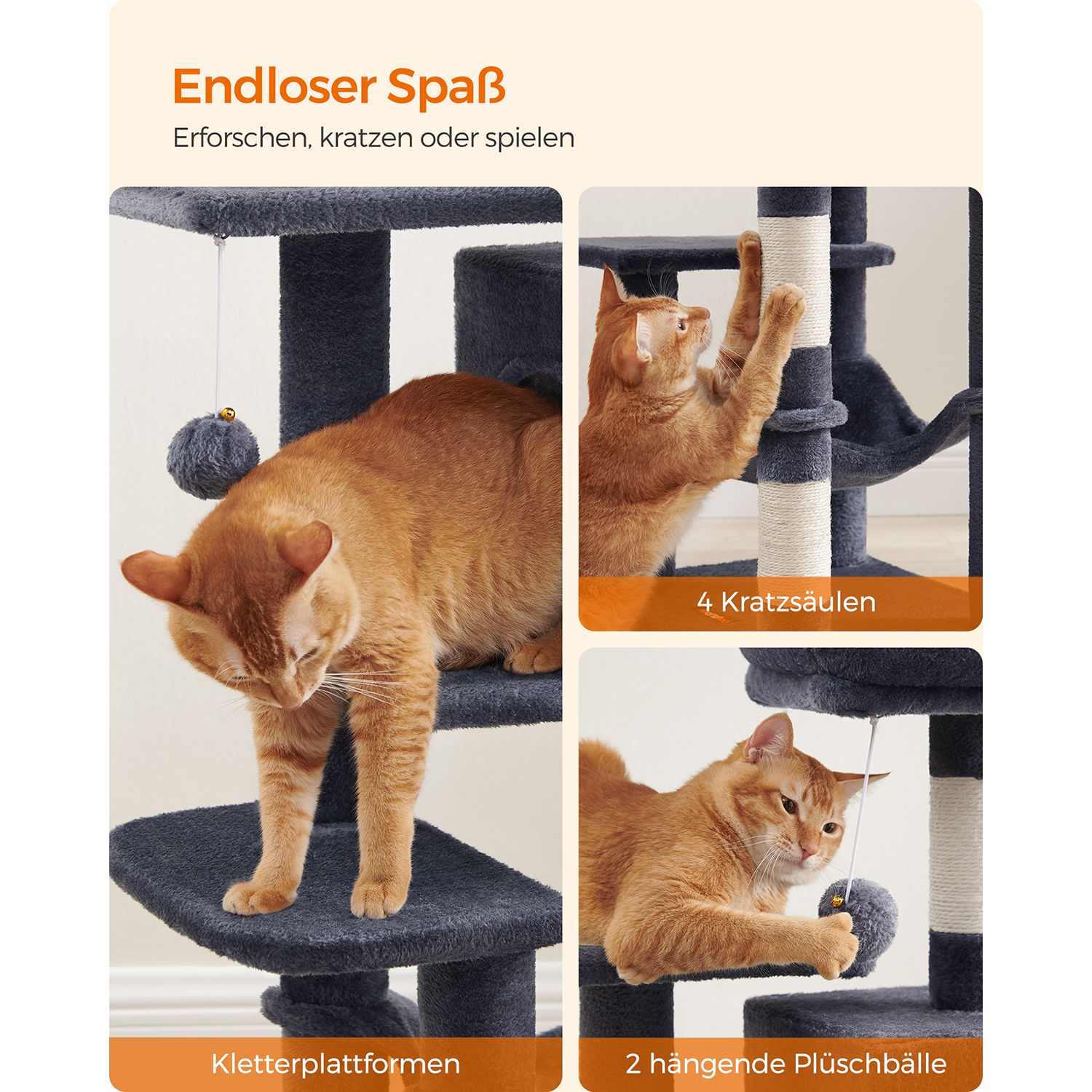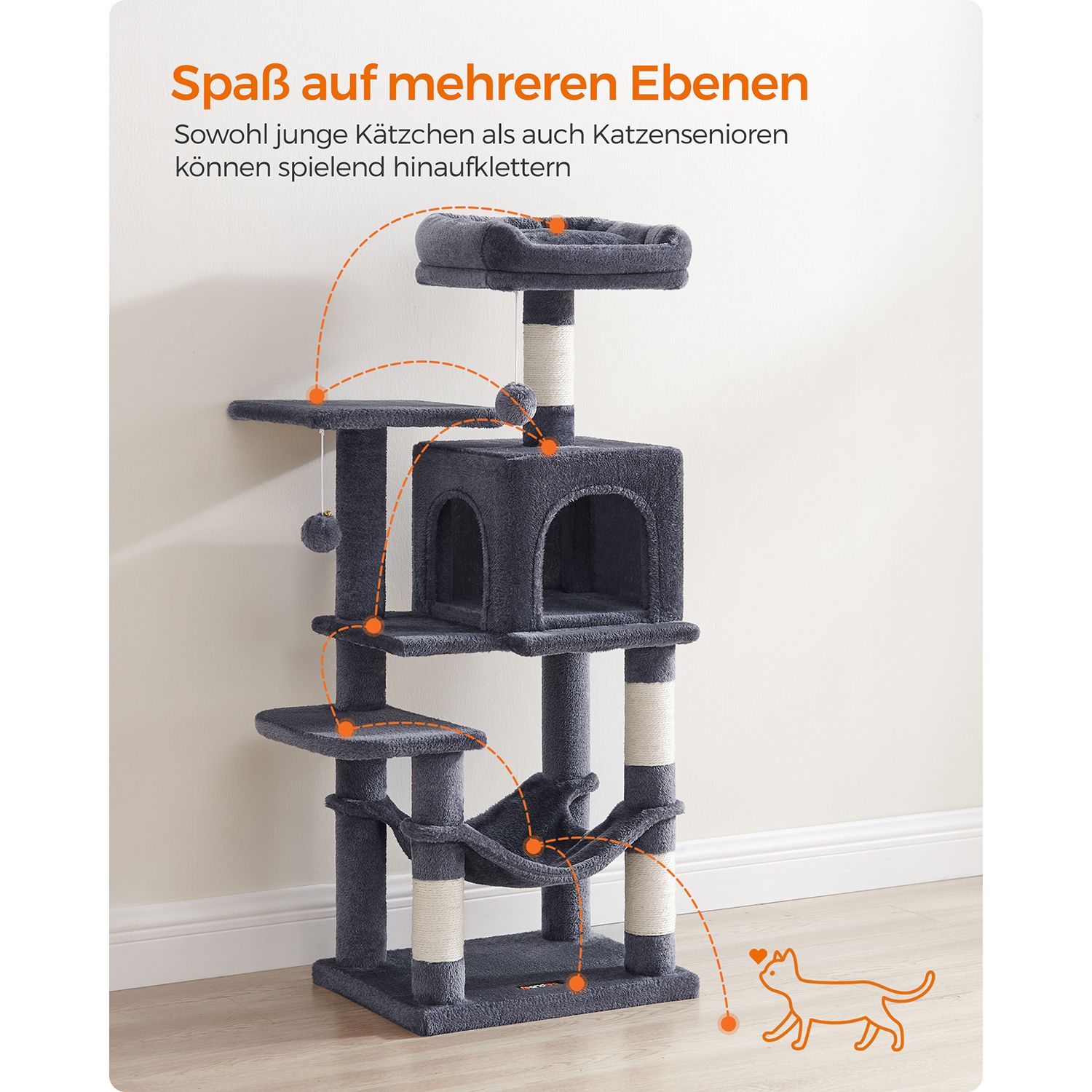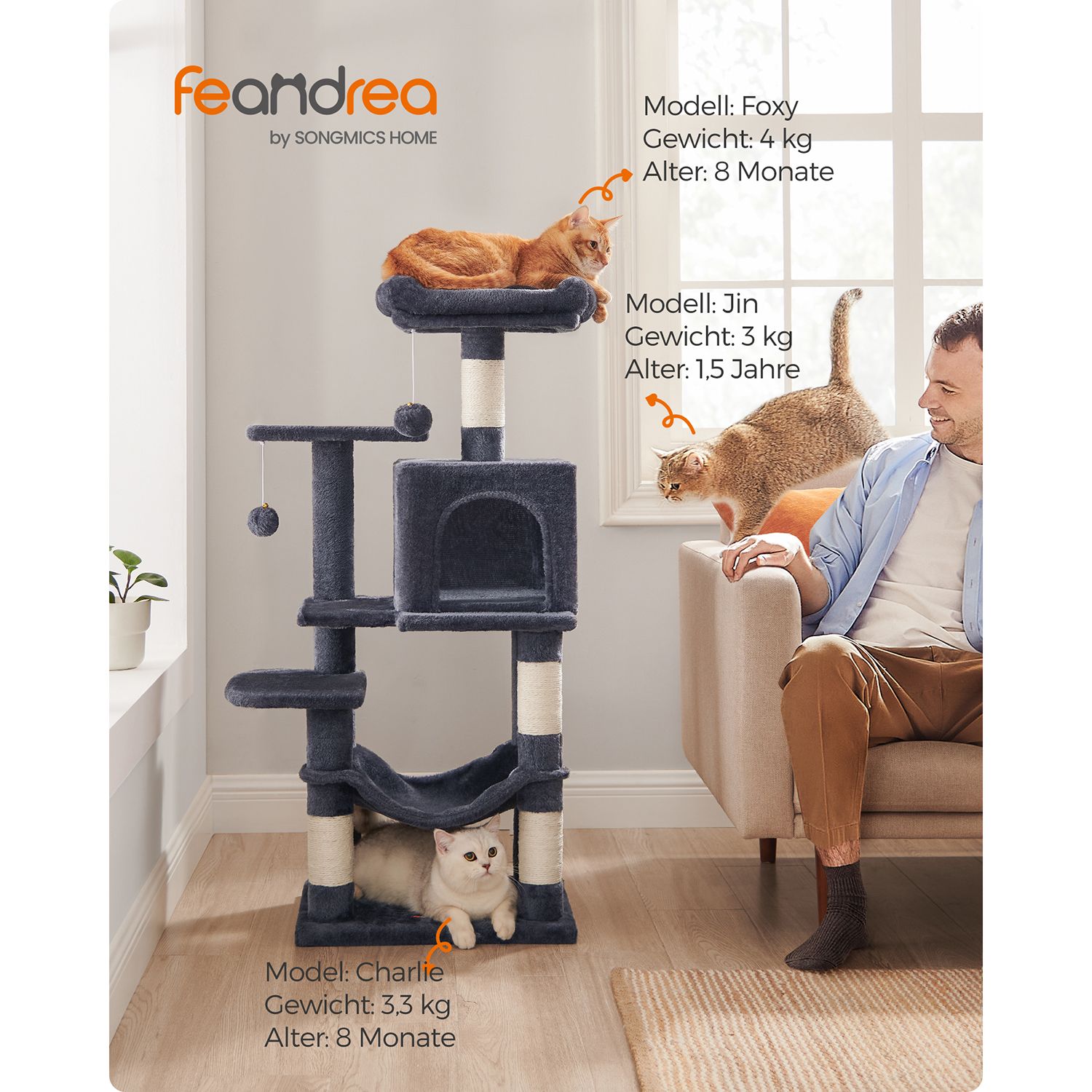 Feandrea cat tree with scratching post, climbing tree for cats, 138 cm high, with cave and lying areas, in light gray PCT60W