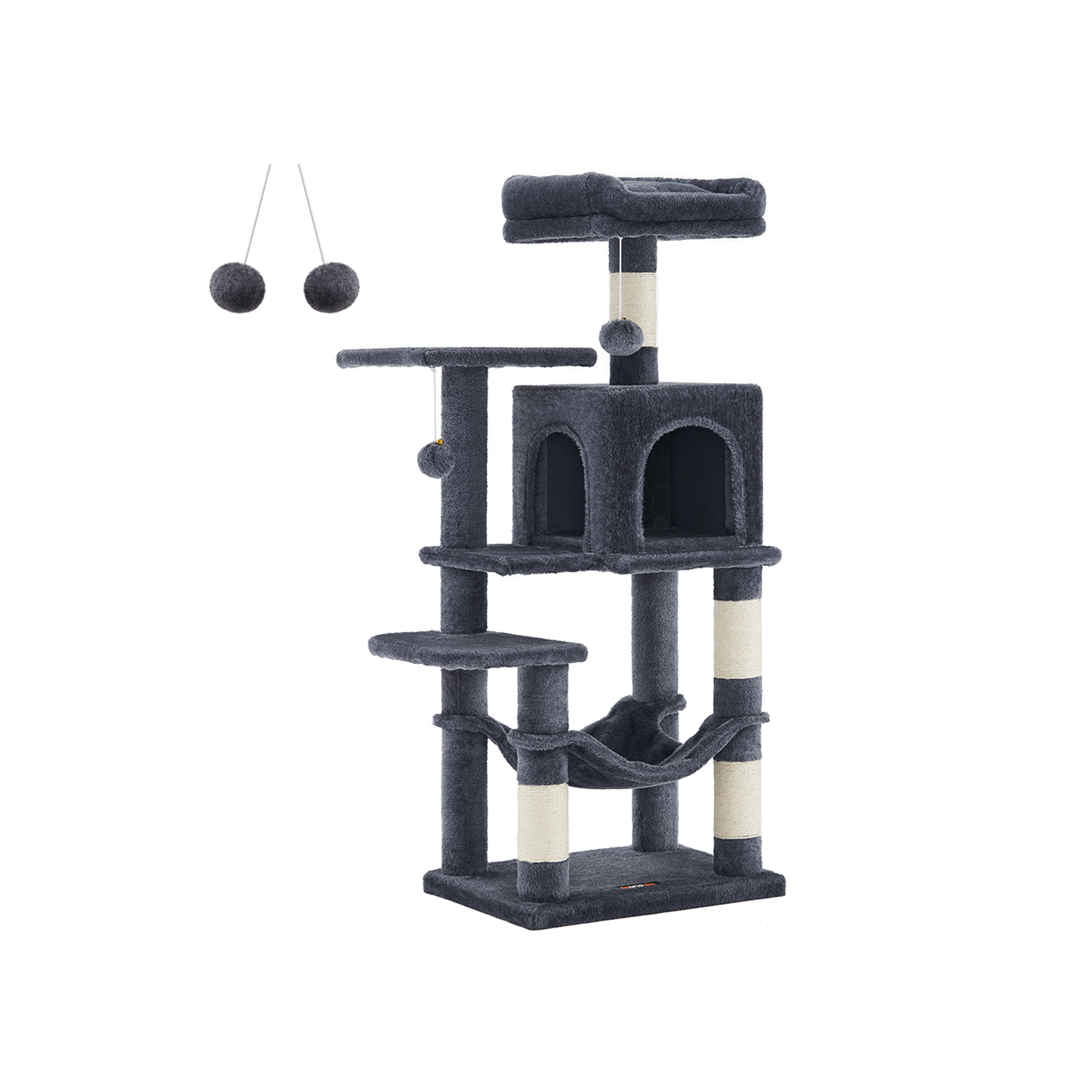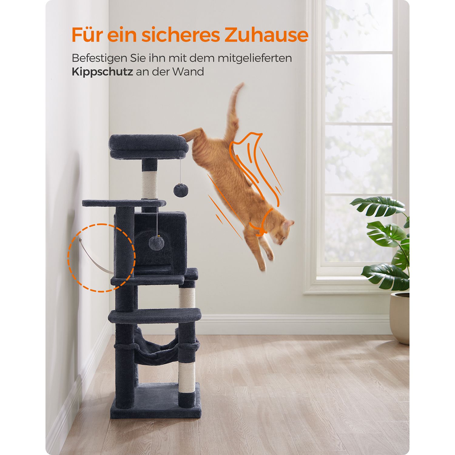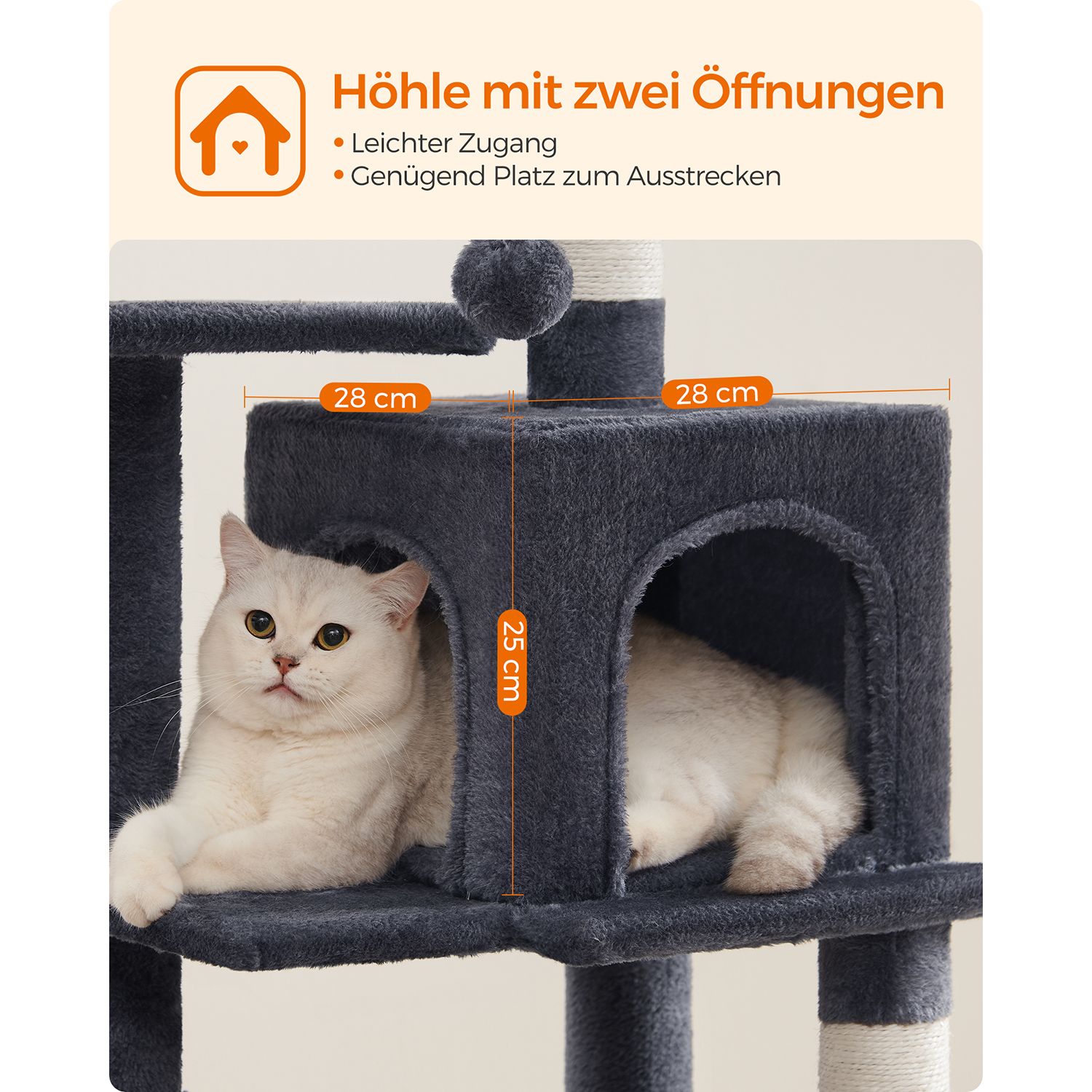 Feandrea cat tree with scratching post, climbing tree for cats, 138 cm high, with cave and lying areas, in light gray PCT60W