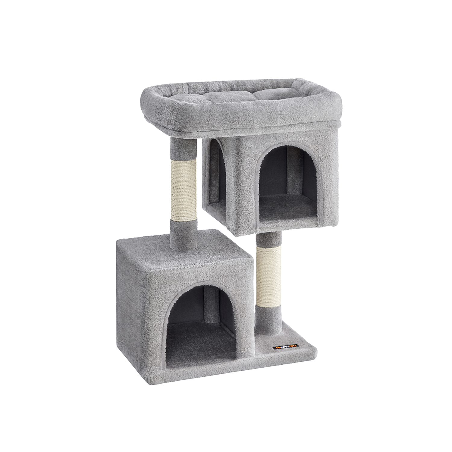 Feandrea Scratching Post, Cat Tree with Large Platform and 2 Plush Caves, Playhouse, Climbing Tree for Cats, Light Gray PCT61W