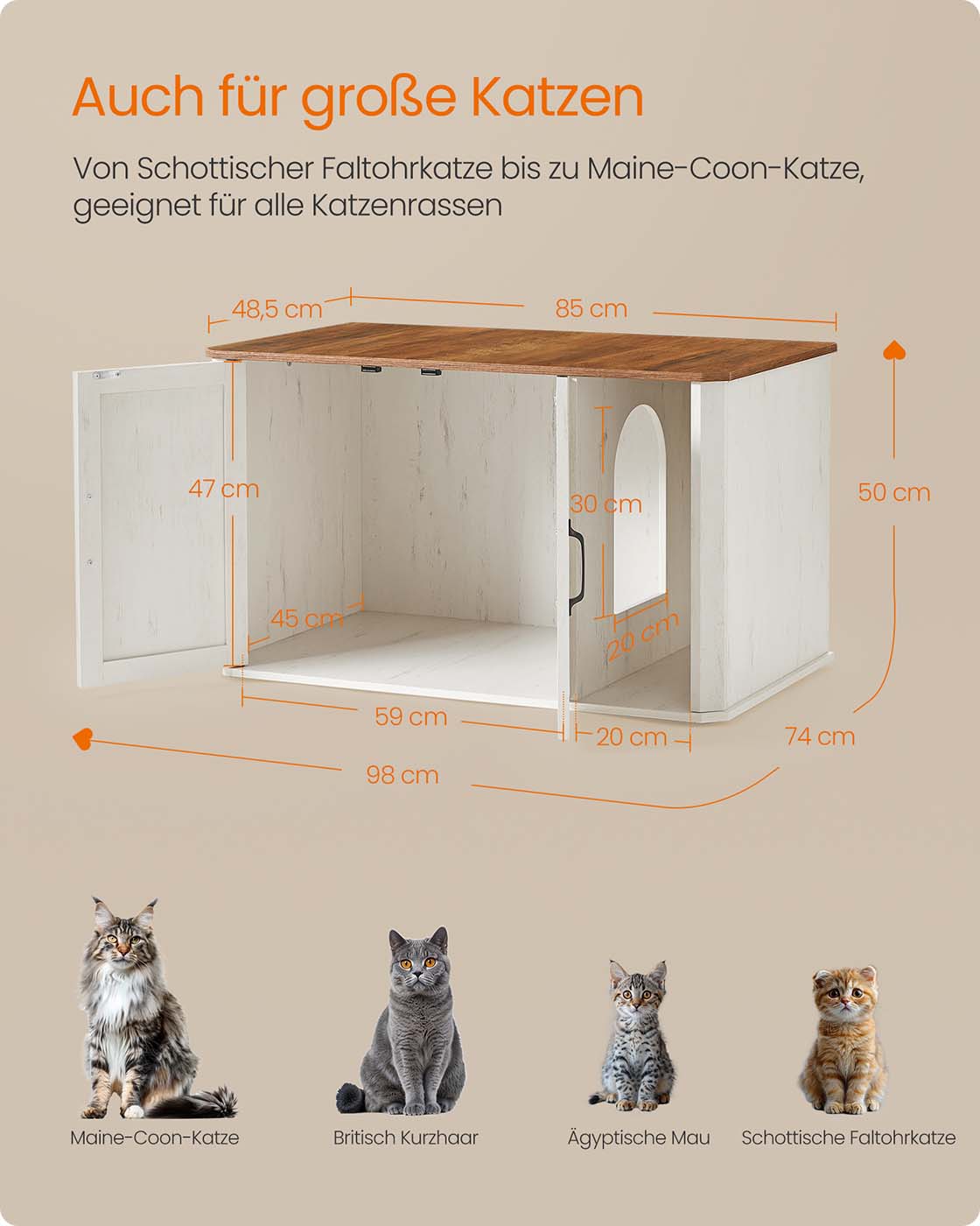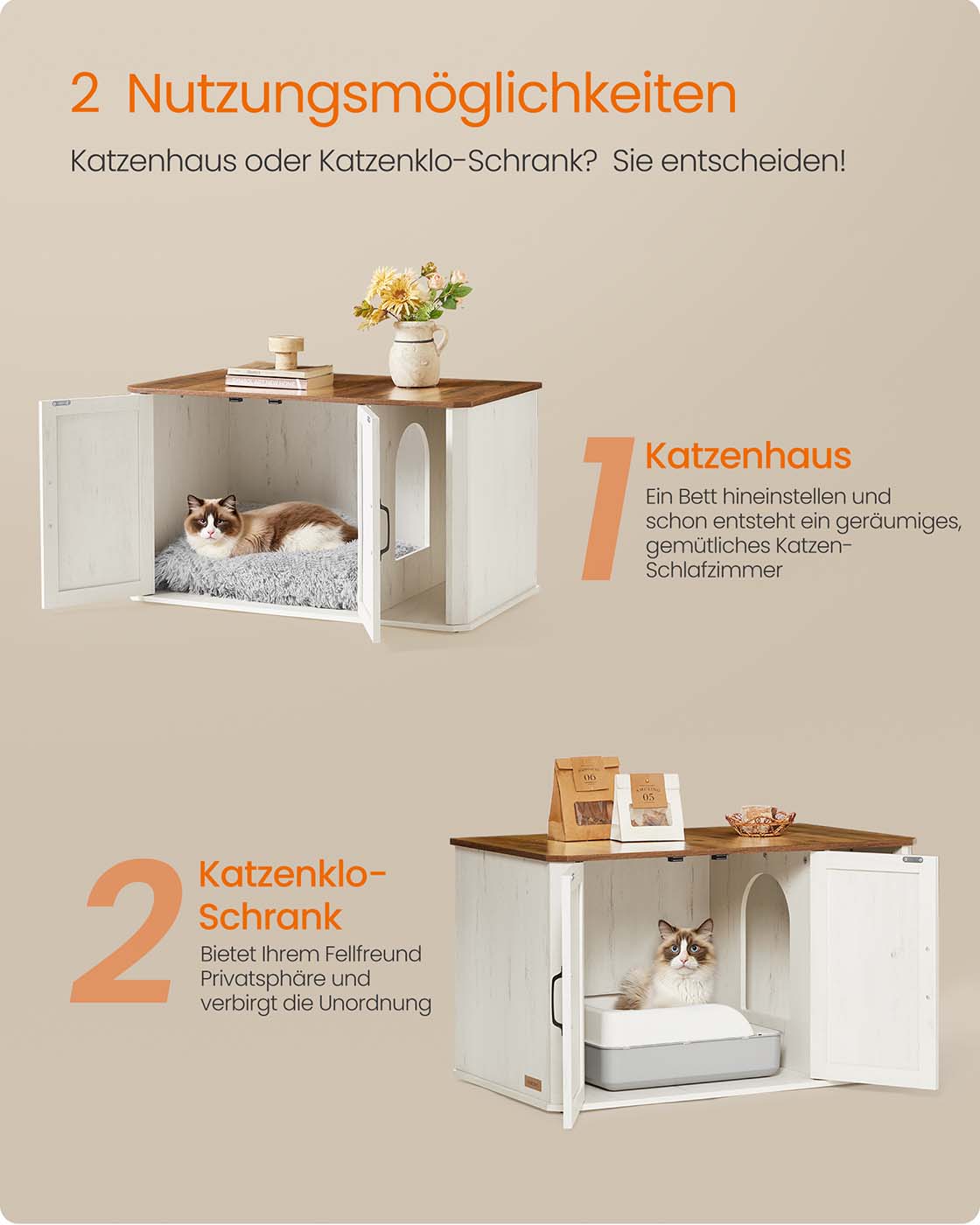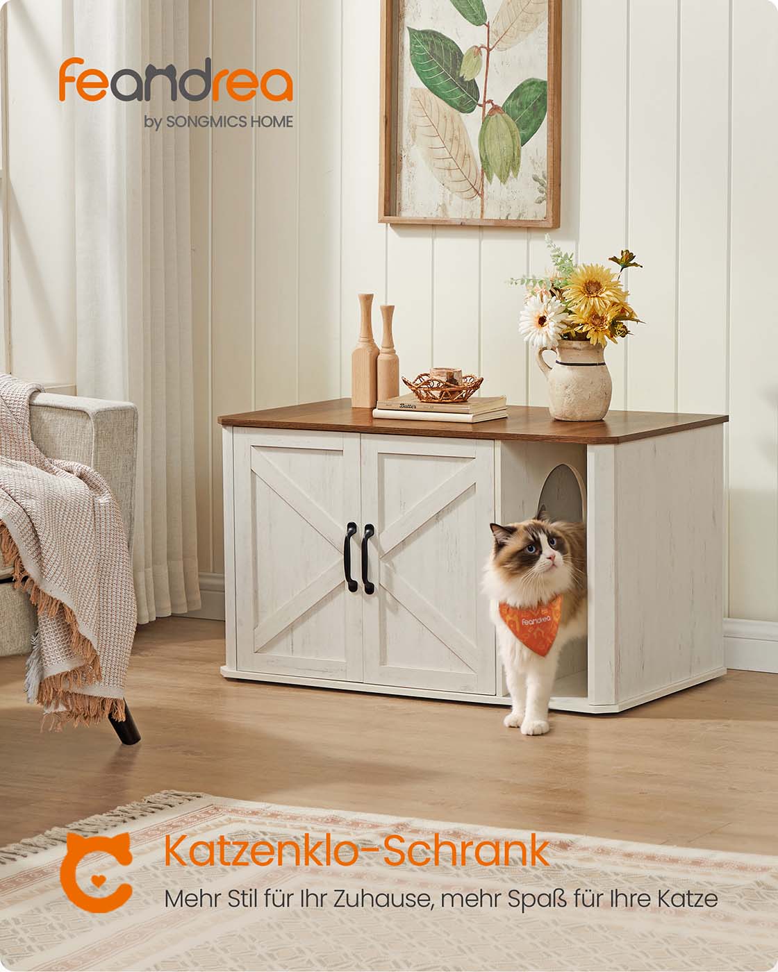 Feandrea cat house, modern litter box cabinet, front entrance, with double door and handles, as a sideboard, 85 x 48.5 x 50 cm, cloud white PCL012W01