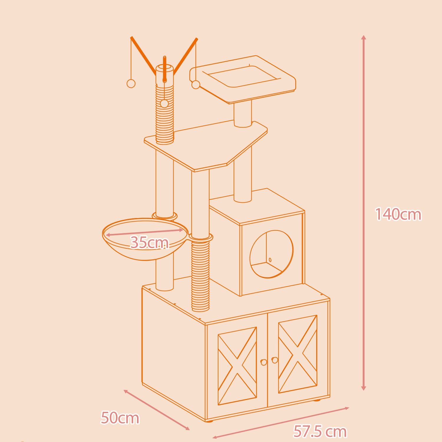 Feandrea Cat Tree with Litter Box Cabinet, 151 cm high, 2-in-1 Cat Tree