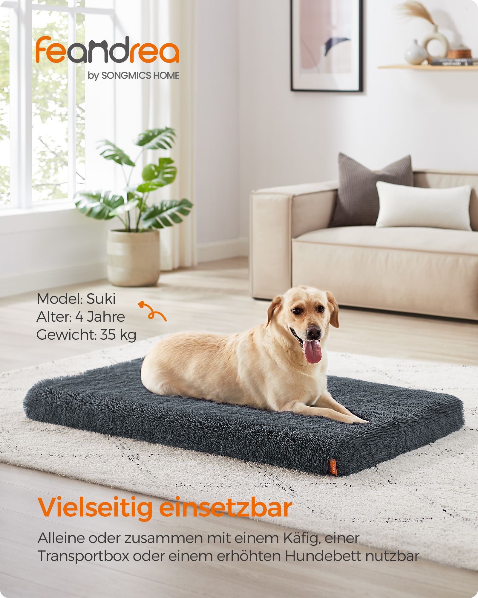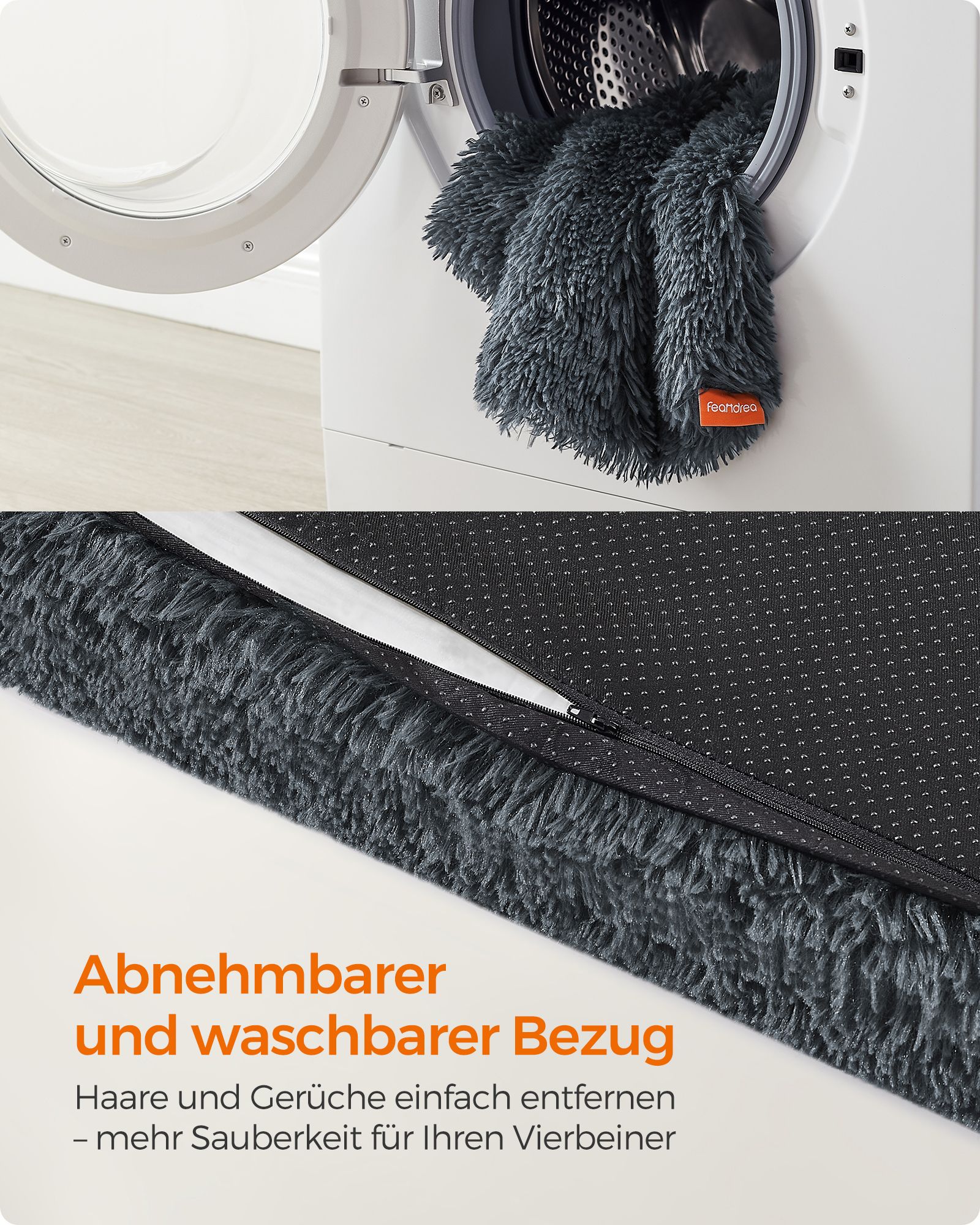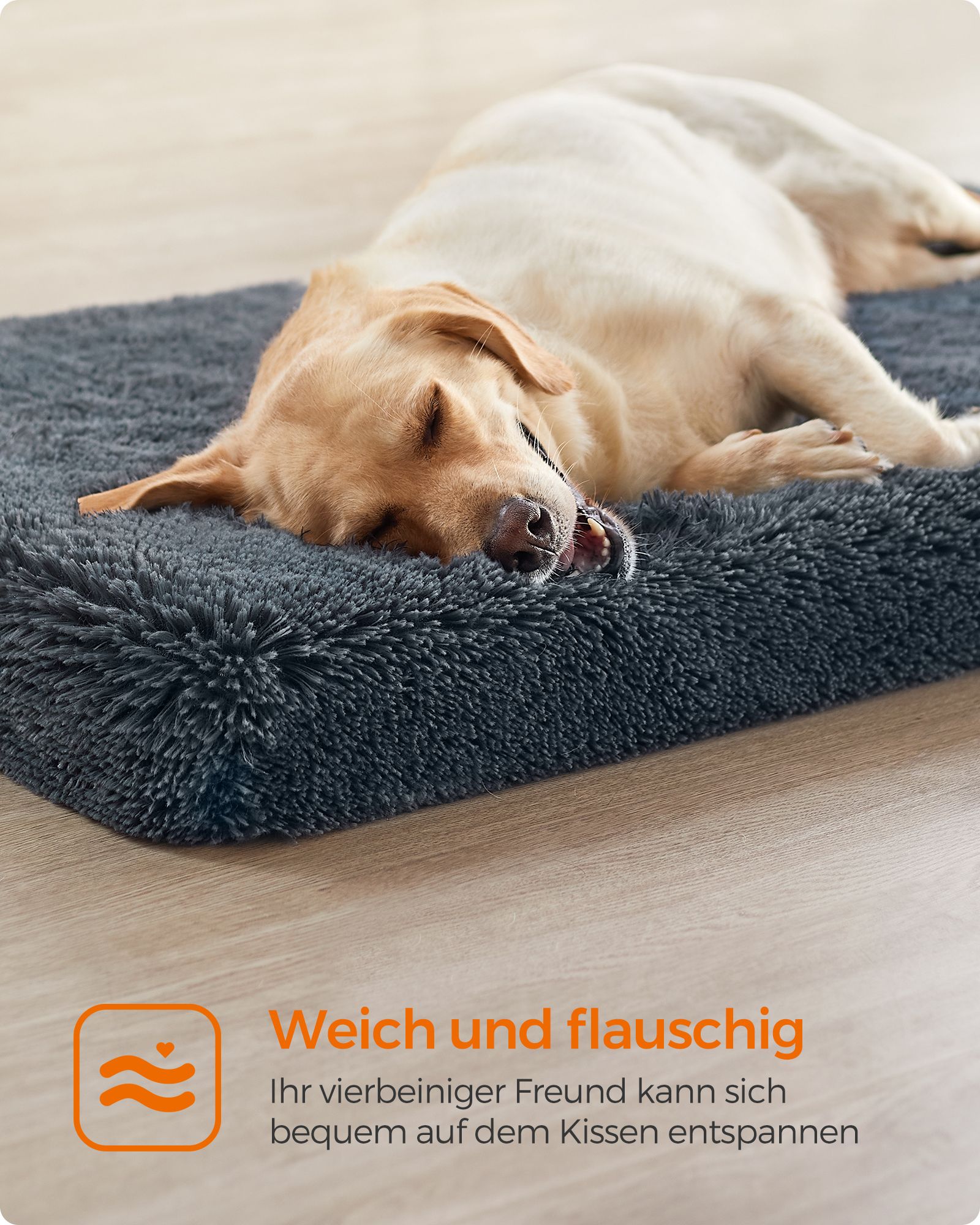 Feandrea dog bed, plush dog cushion, dog mat, dog sofa, for pets, removable and washable cover, size XL, for medium and large dogs, 110 x 73 x 10 cm, ombré gray PGW213G01