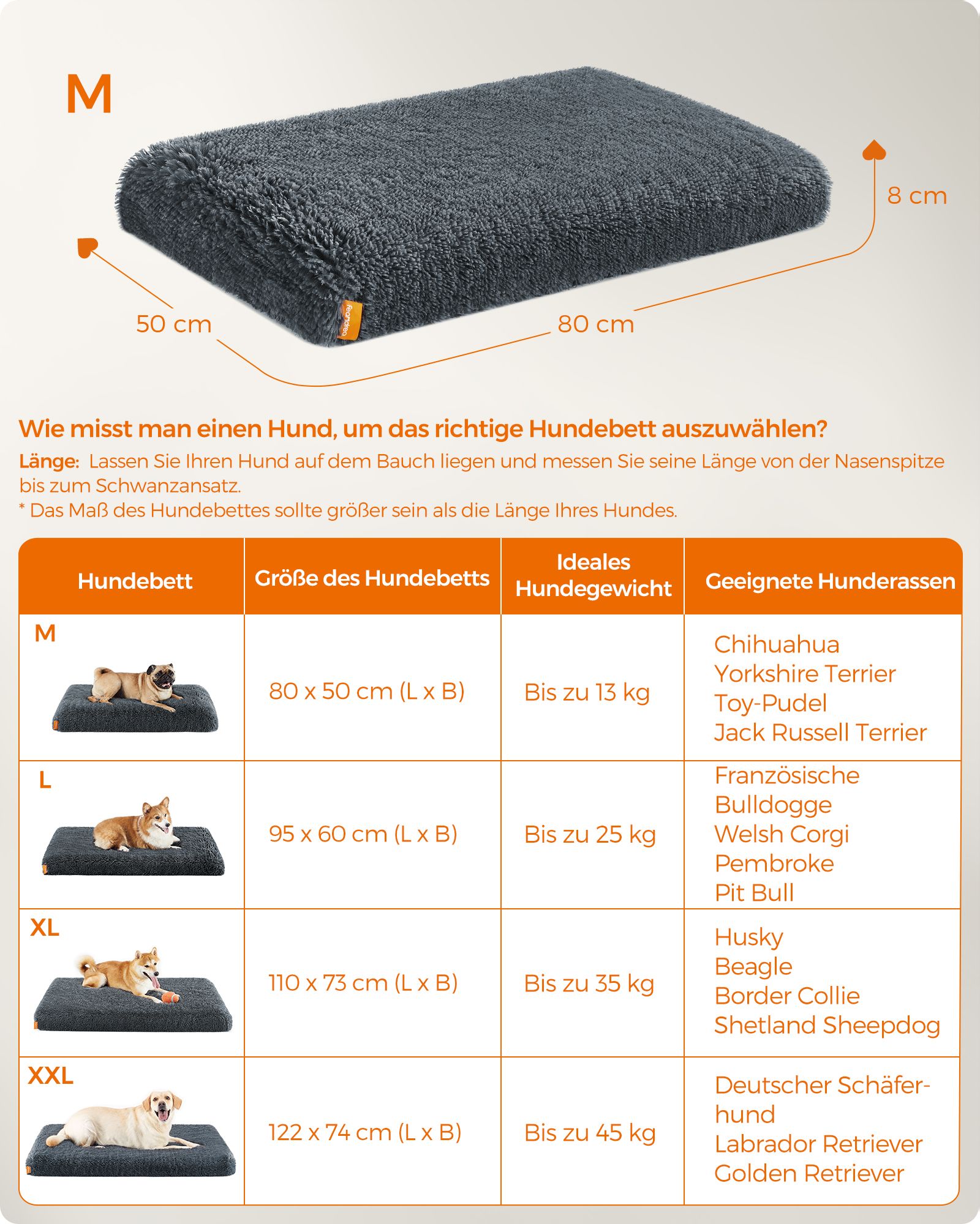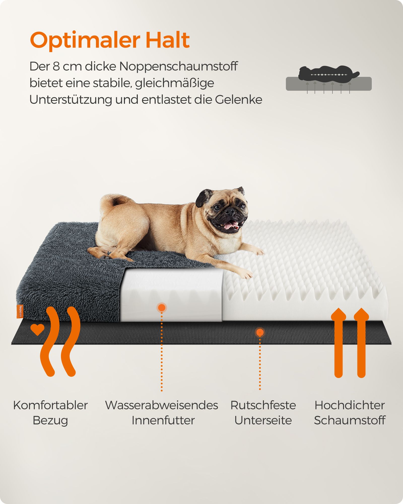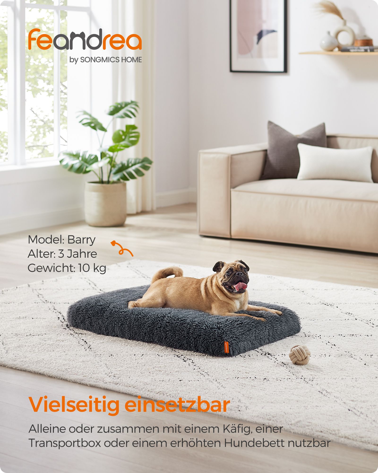 Feandrea dog bed, plush dog cushion, dog mat, dog sofa, for pets, removable and washable cover, size XL, for medium and large dogs, 110 x 73 x 10 cm, ombré gray PGW213G01