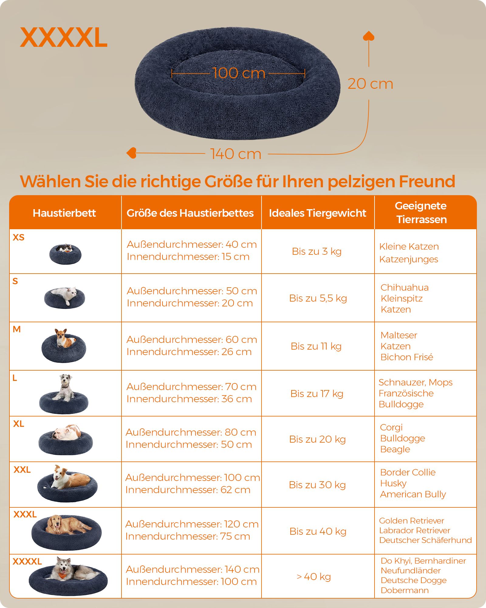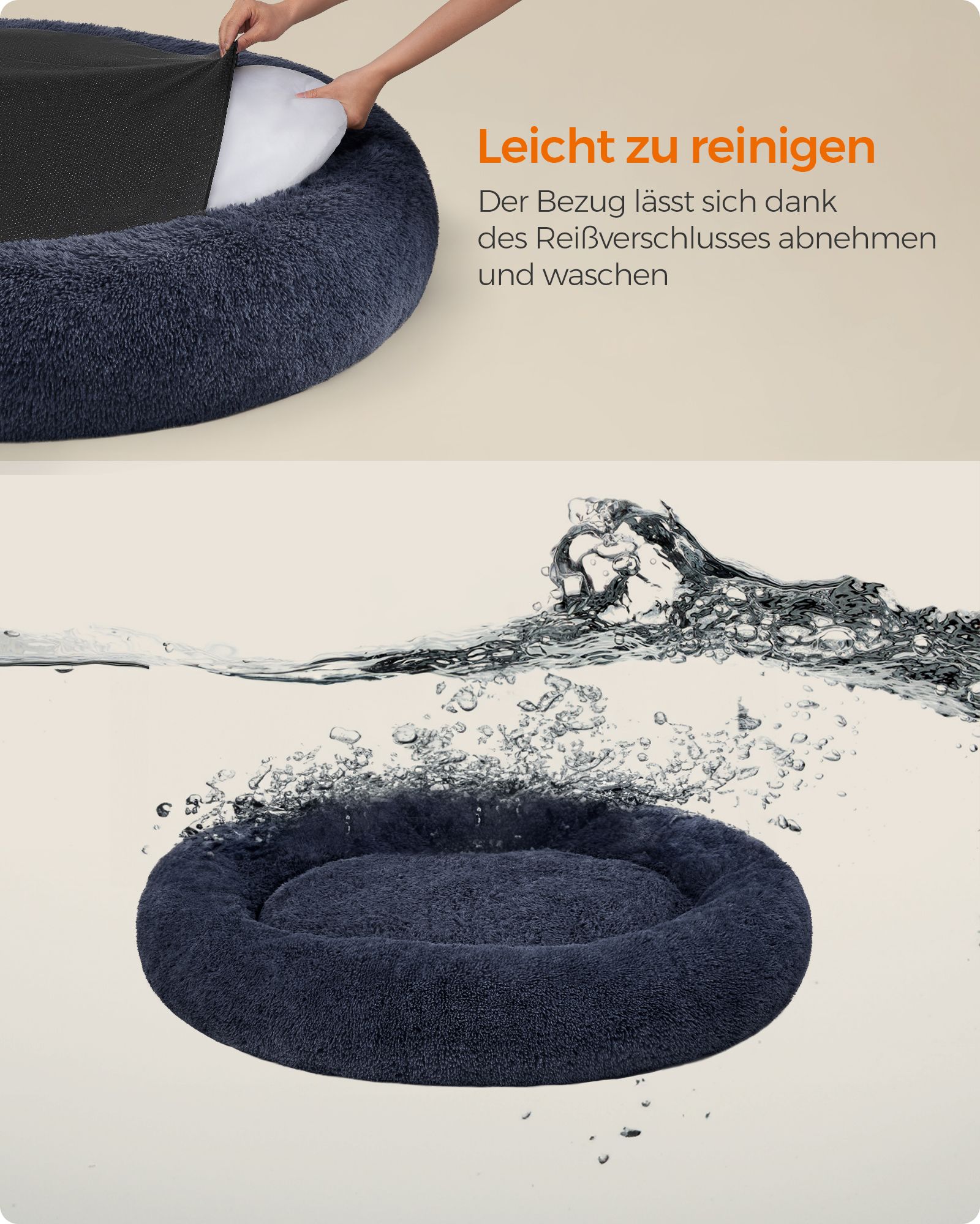 Feandrea dog bed, cat bed, soft PV velvet surface, 50 cm, gray PGW037G01