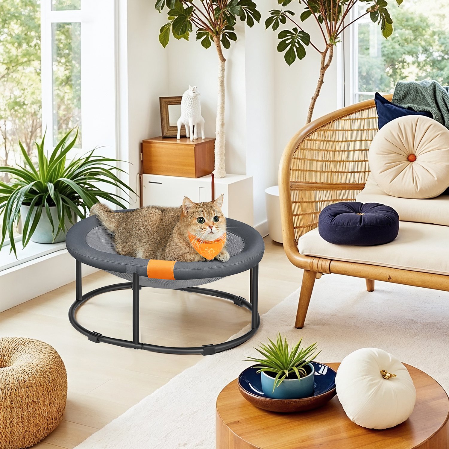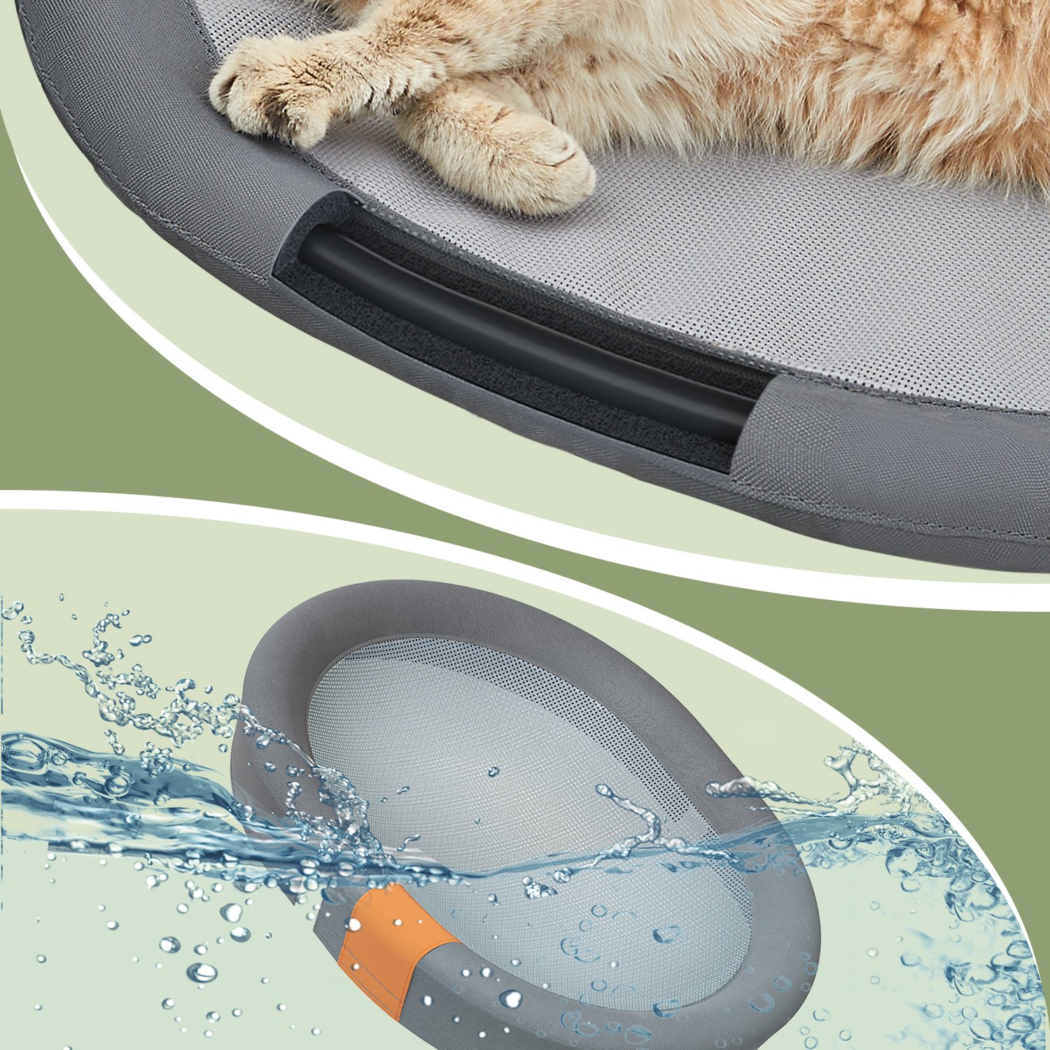 FEANDREA Cat Hammock, Elevated Cat Bed, Small Dog Bed, for Pets up to 8 kg, Freestanding Pet Bed for Summer, Removable Net, Machine Washable, Oval, Gray PCB001G01