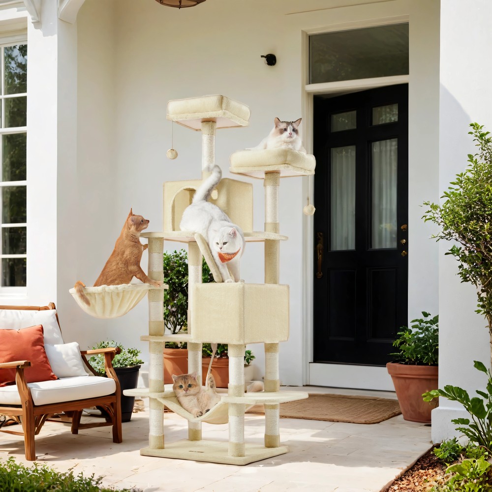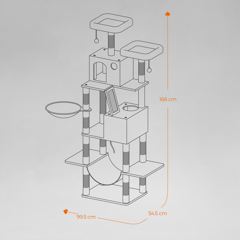 Feandrea large scratching post, 168 cm high, M cat tree, with 13 scratching posts, 2 platforms, 2 caves, basket, hammock, plush balls, multi-level cat scratching post, smoke gray PCT165G01